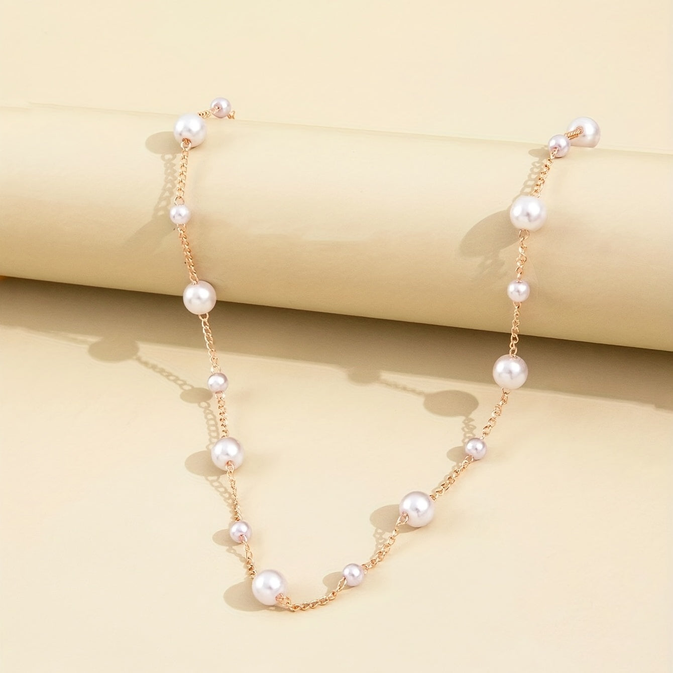 Elegant pearl necklace featuring a gradient size design. Perfect gift for mothers and loved ones.