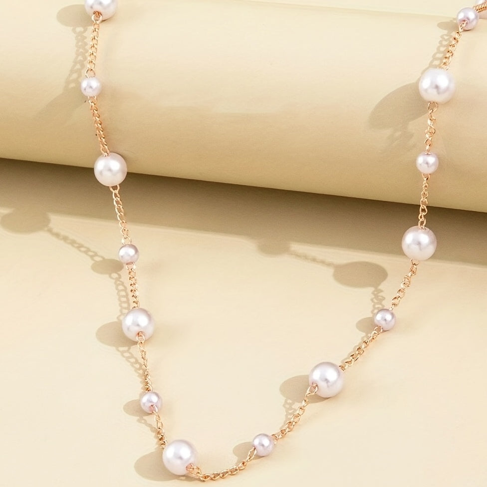 Freshwater Pearl Gradient Size Neck Chain Necklace Mother's Gift