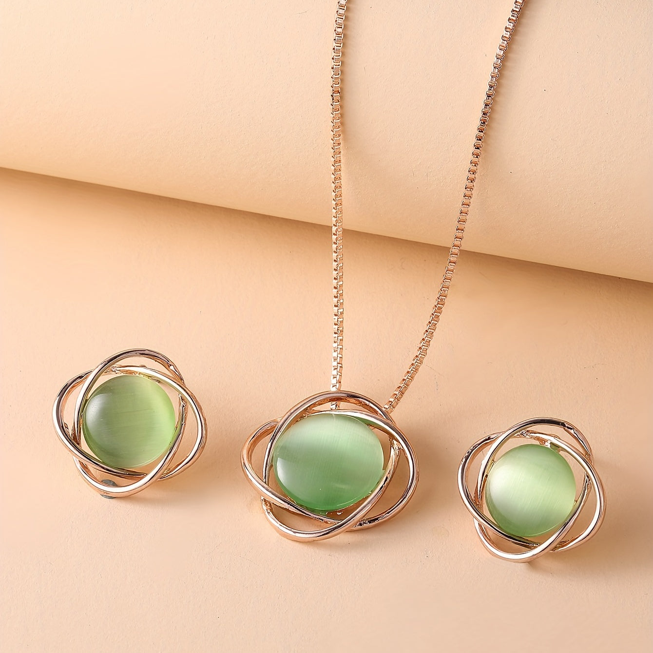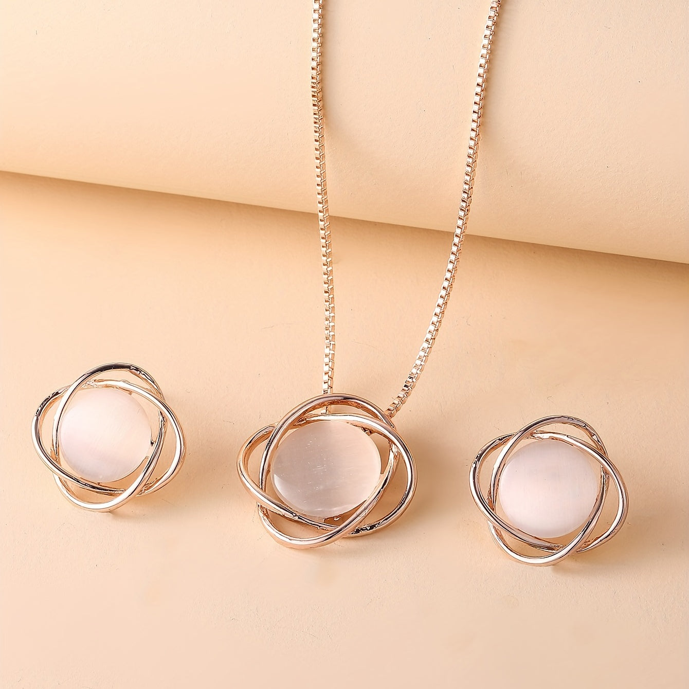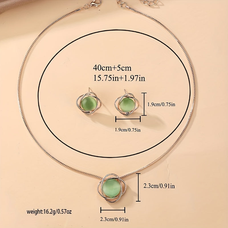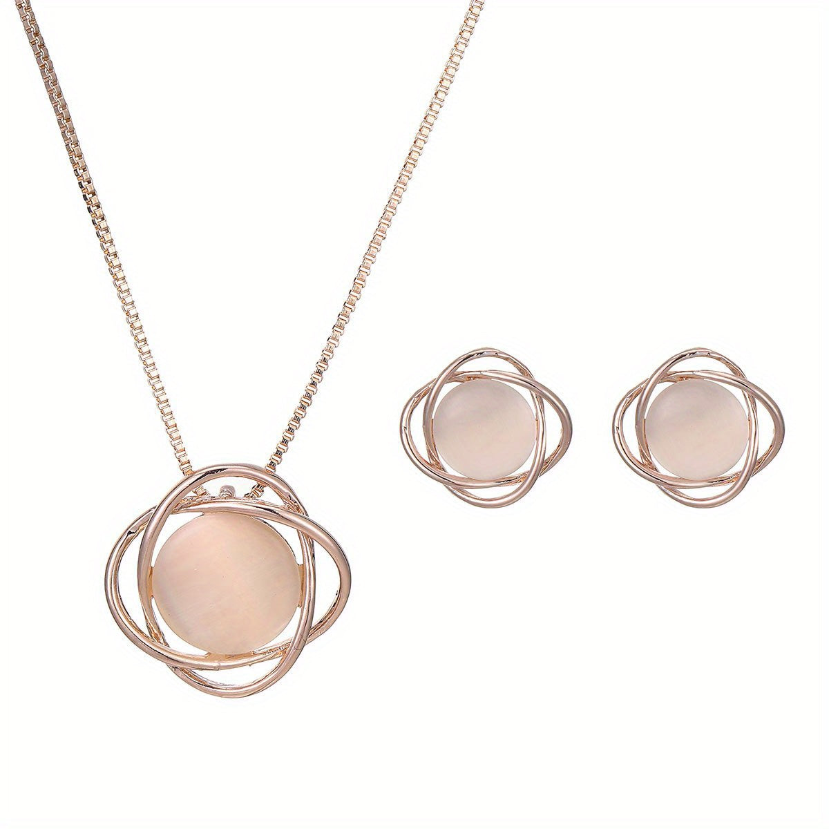 Elevate your style with this stunning geometric double oval 3D rotating necklace and earrings set. Crafted with opal and round shape, this fine jewelry is perfect for parties, birthdays, and celebrations.