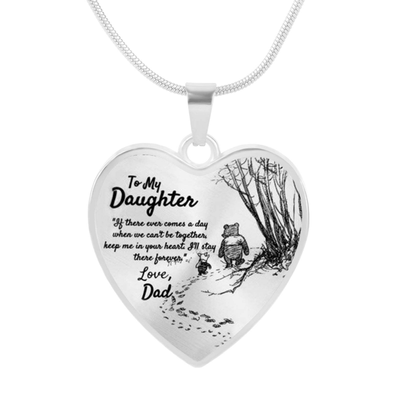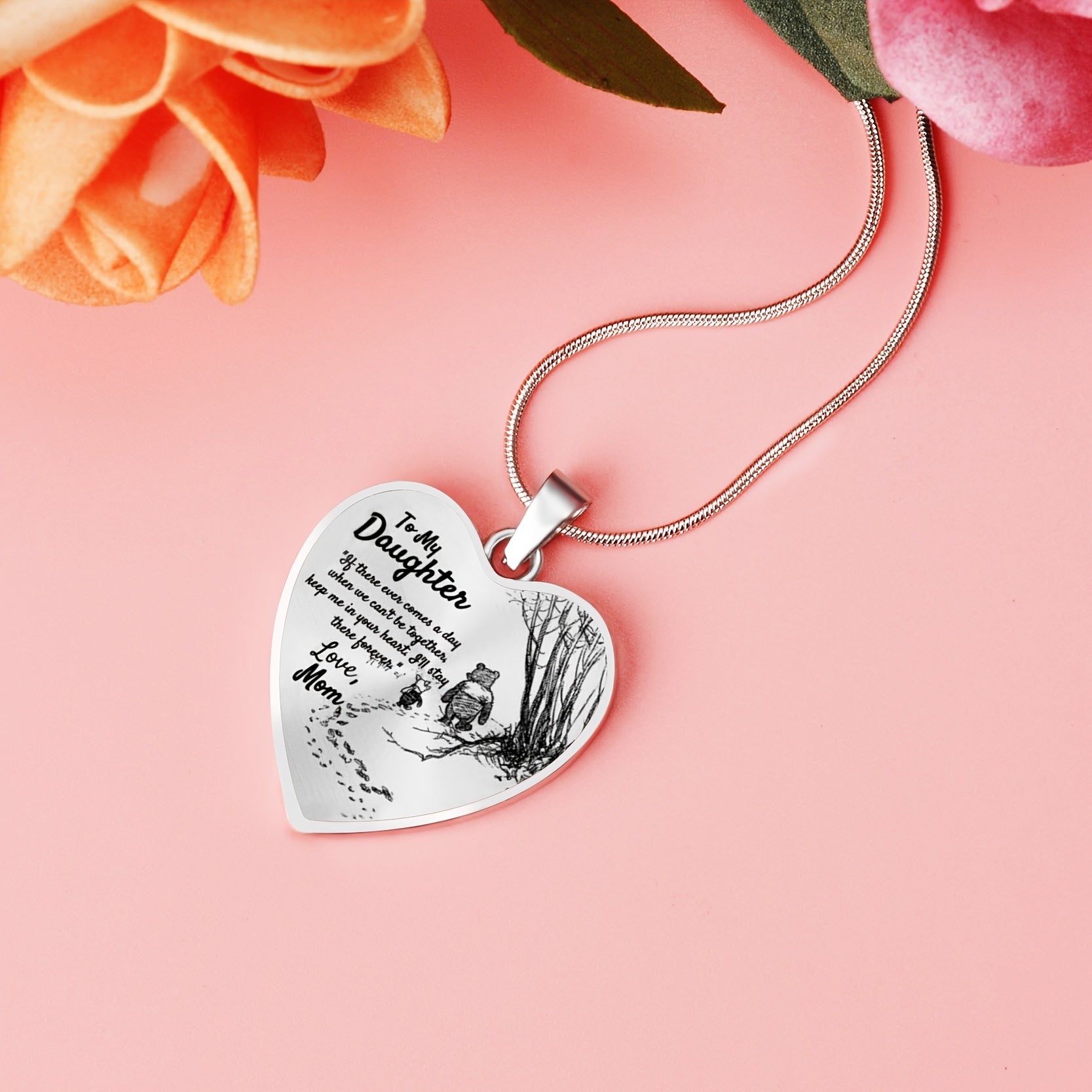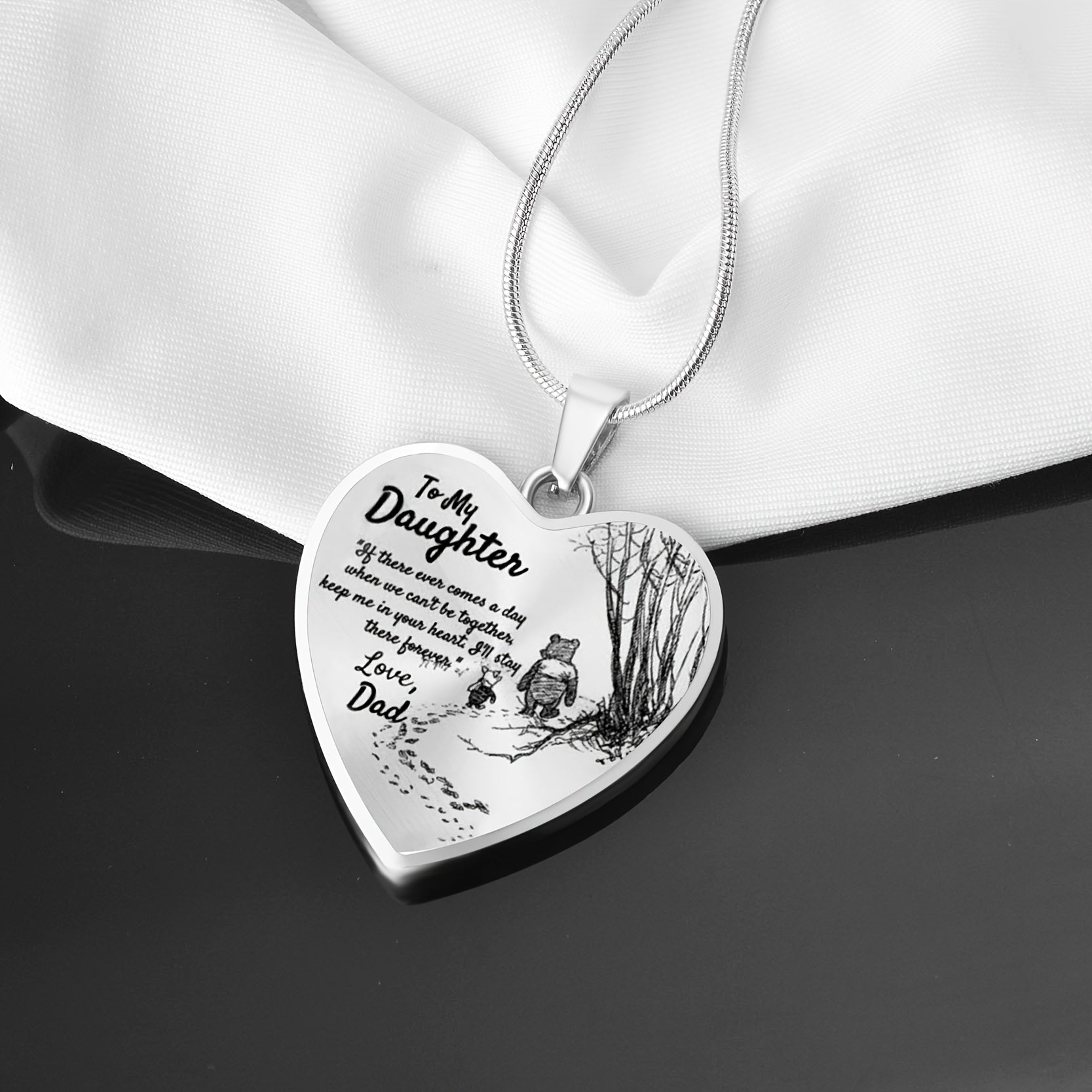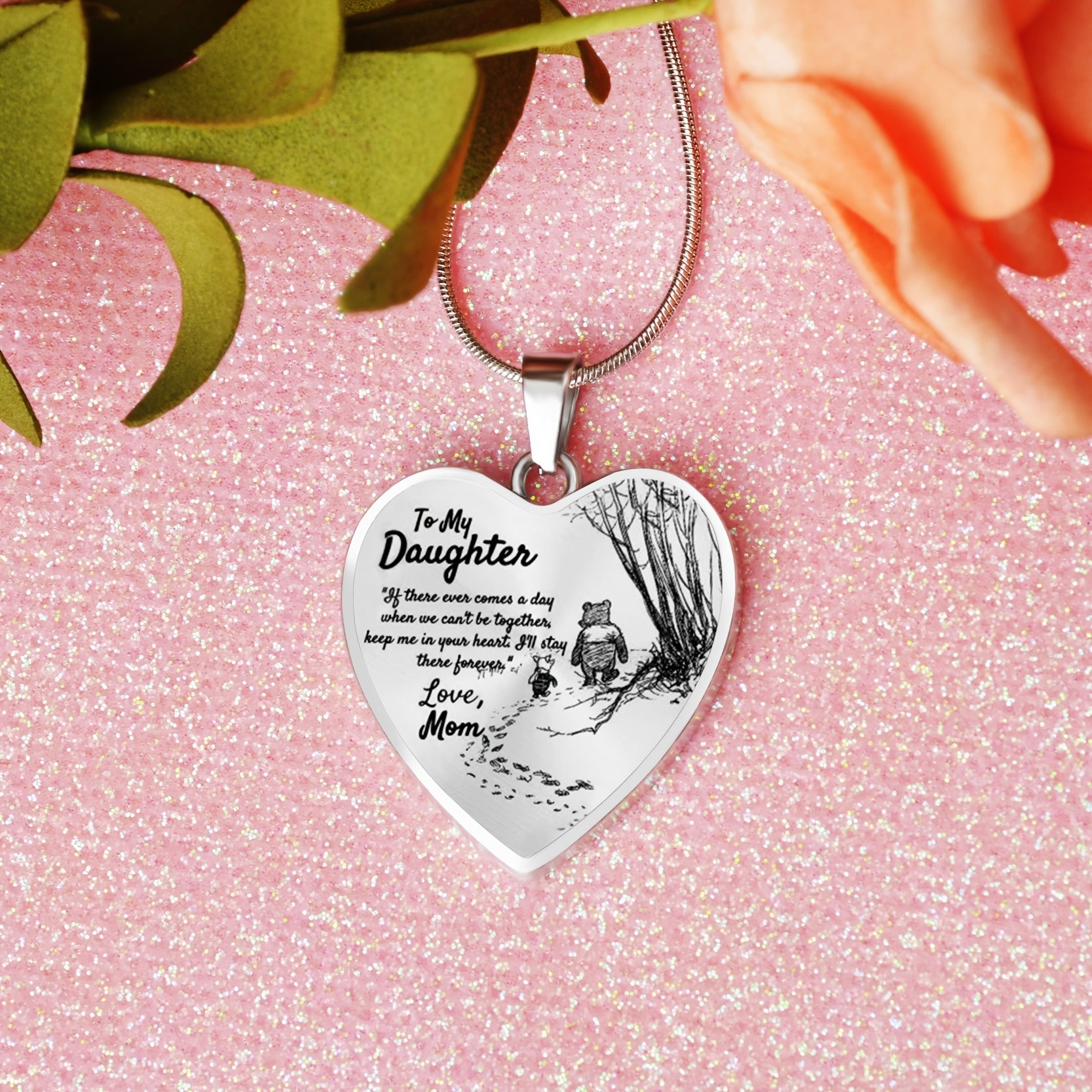 Beautiful heart charm necklace featuring a cute bear design, perfect gift for your daughter from mom and dad on her birthday. Express your love with this special jewelry piece.