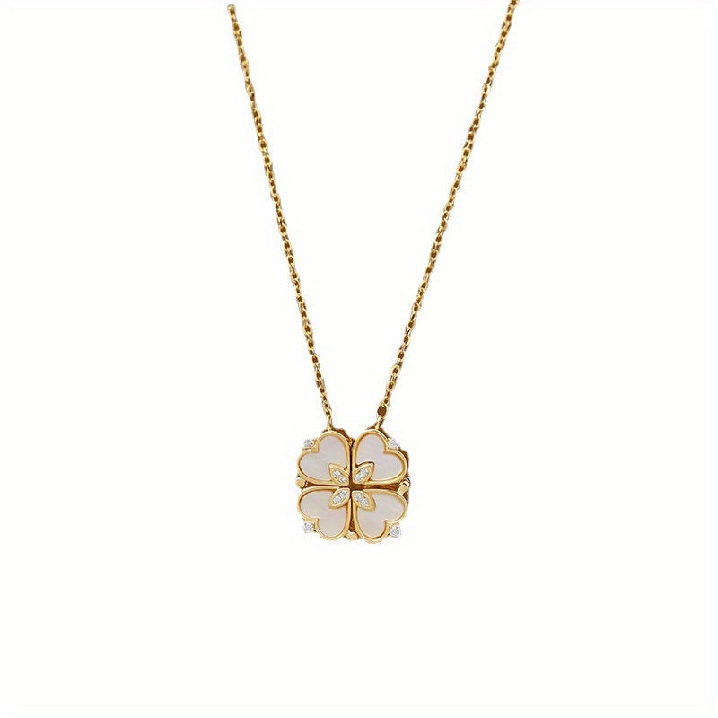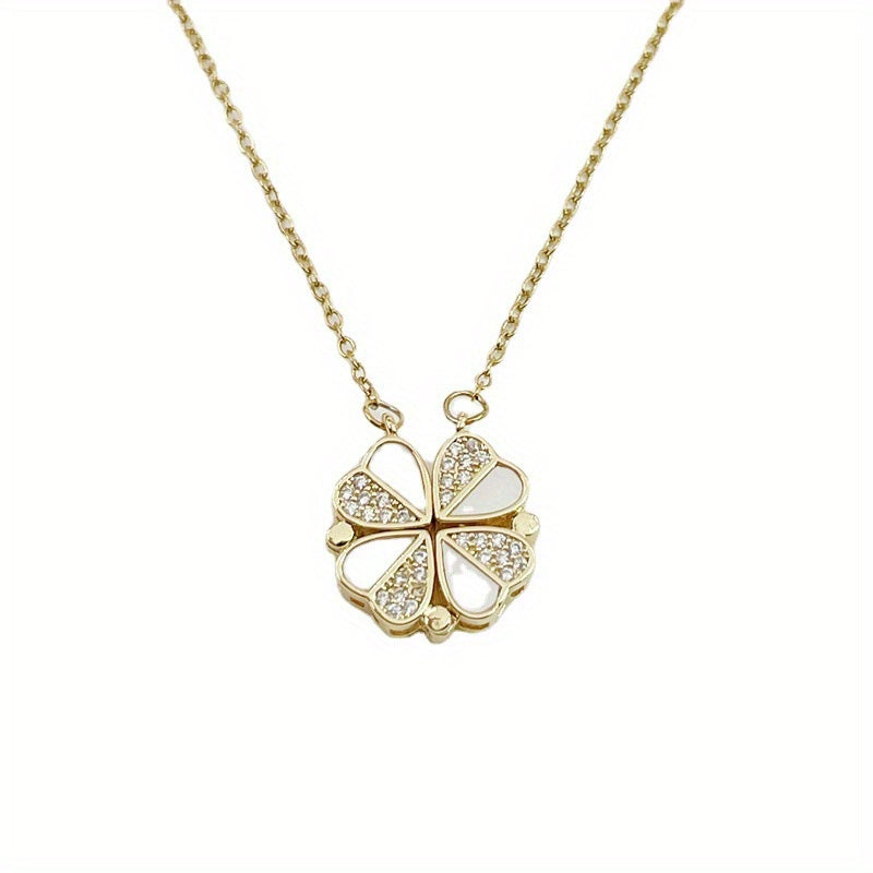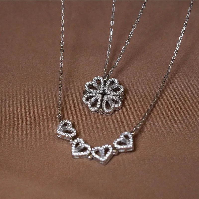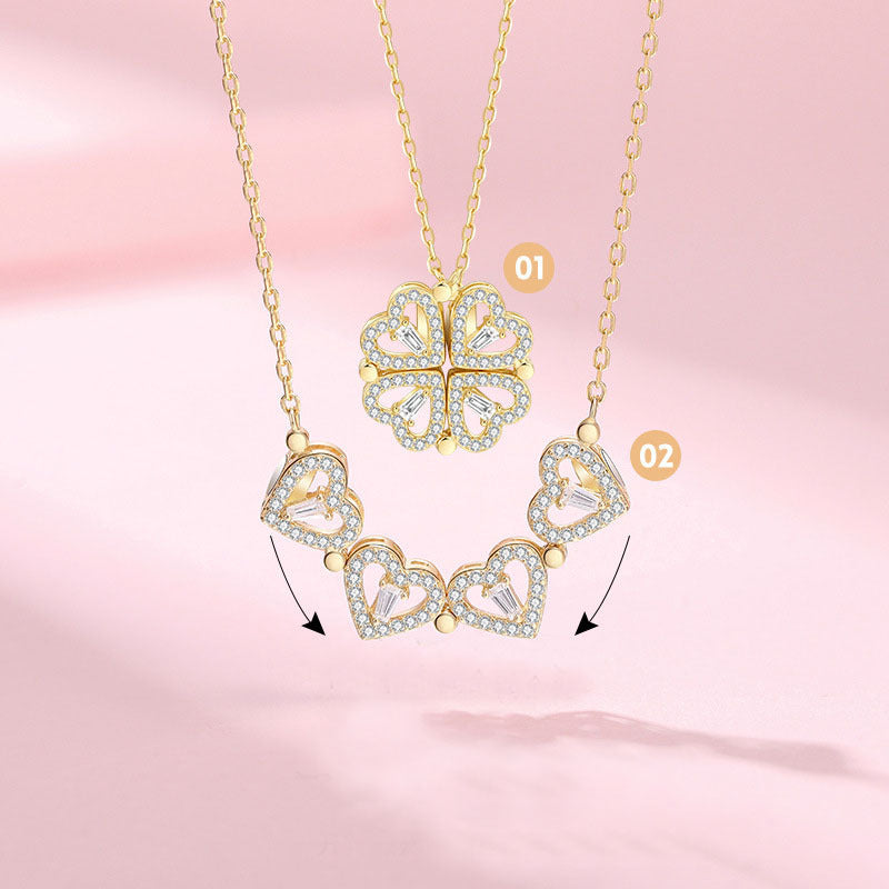 Adorn your neck with this exquisite heart-shaped four leaf clover pendant necklace. The perfect accessory for any occasion.