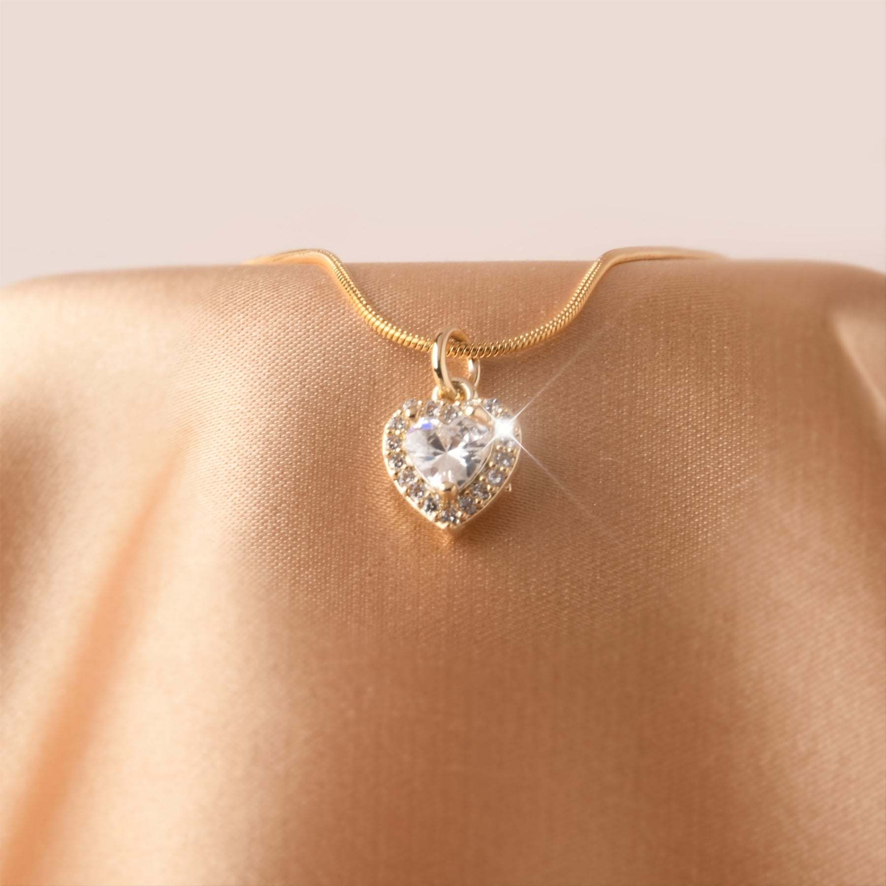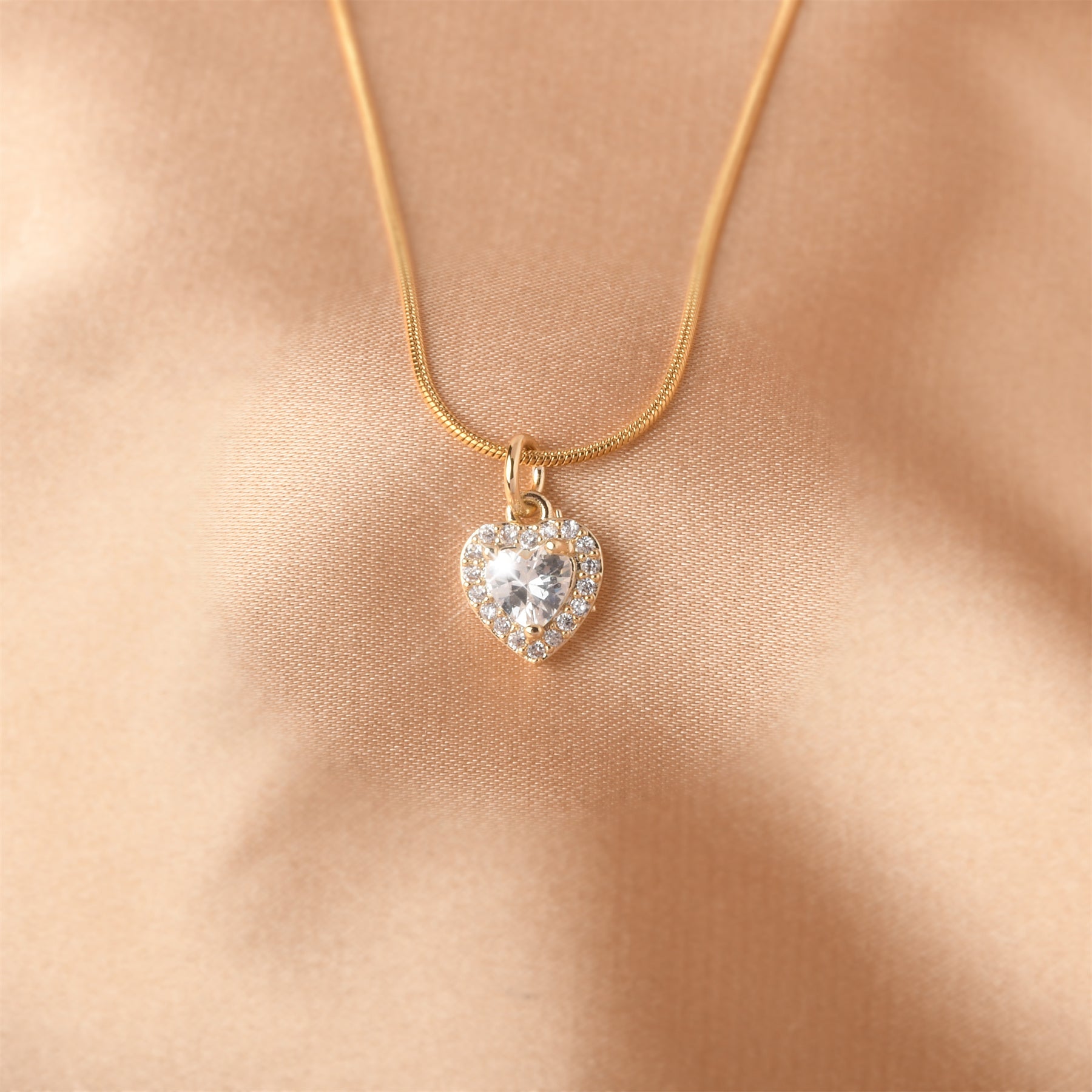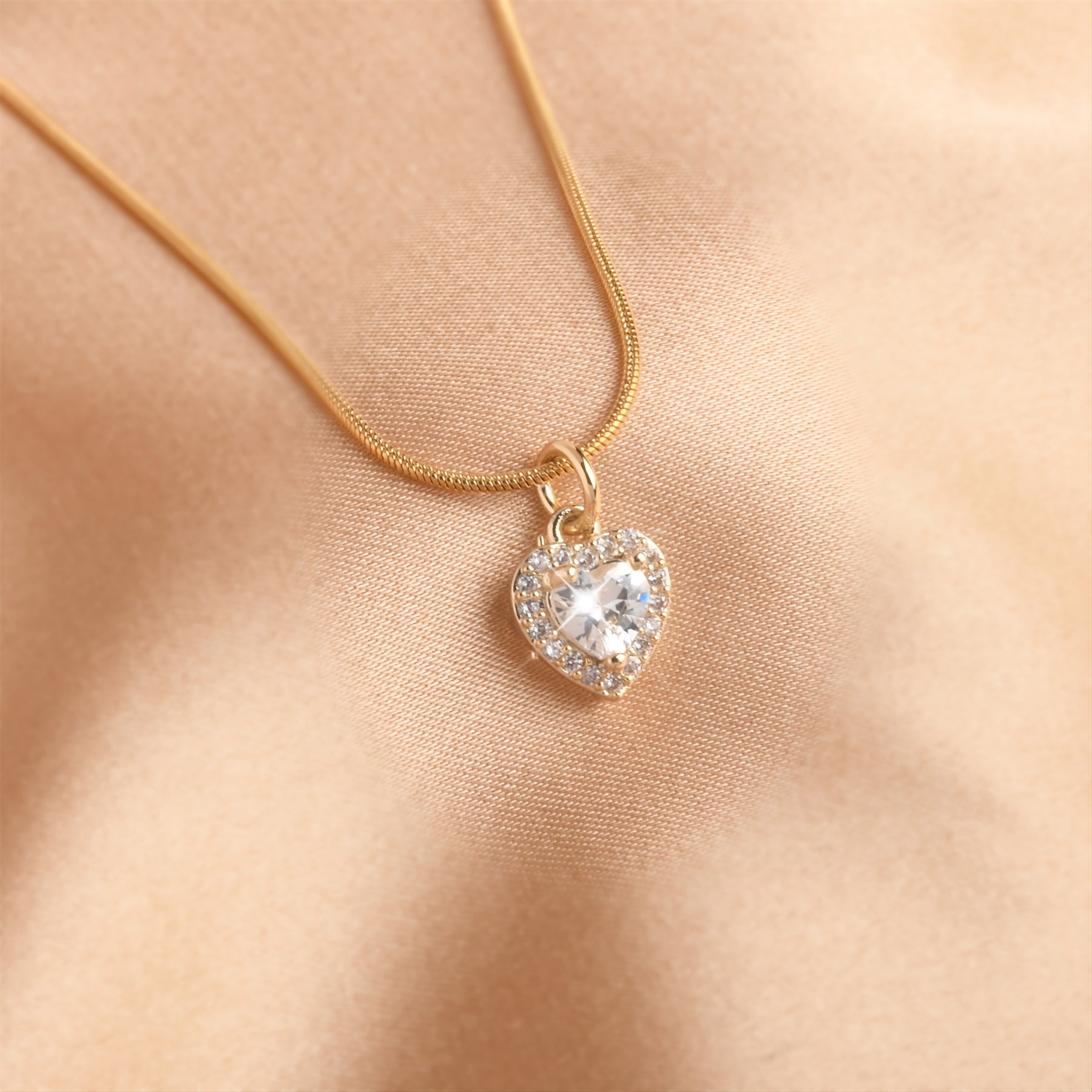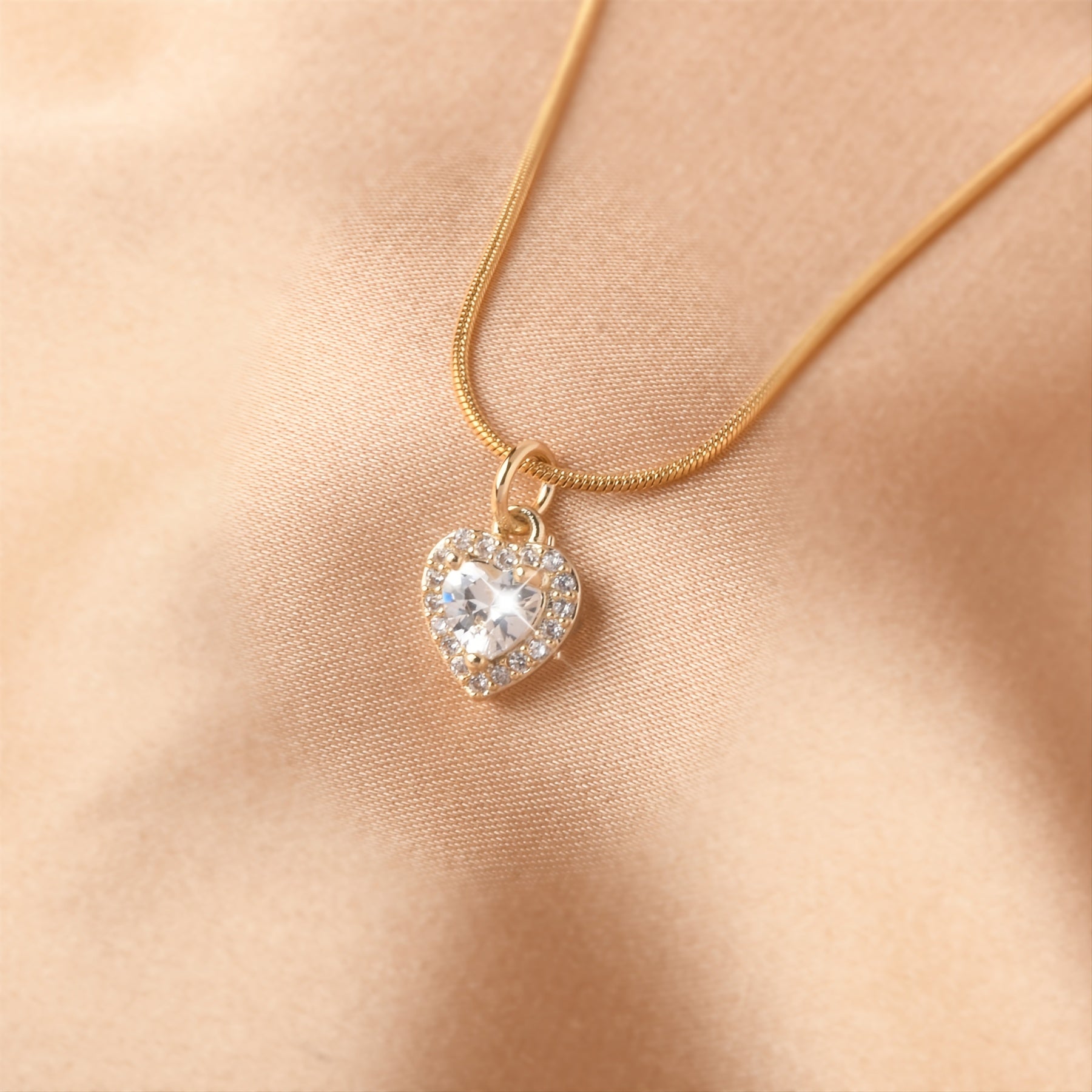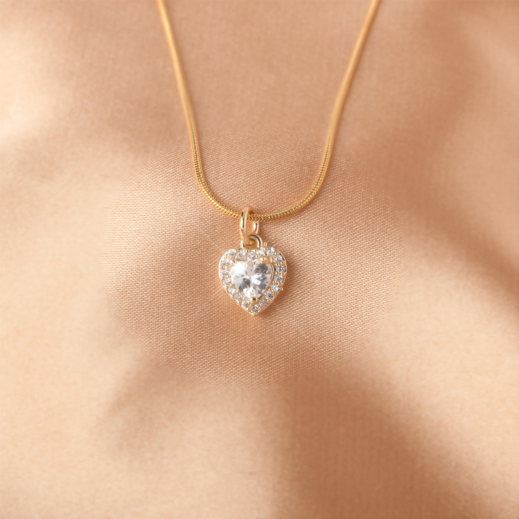 • Heart-shaped pendant necklace with zircon inlay