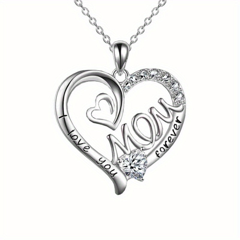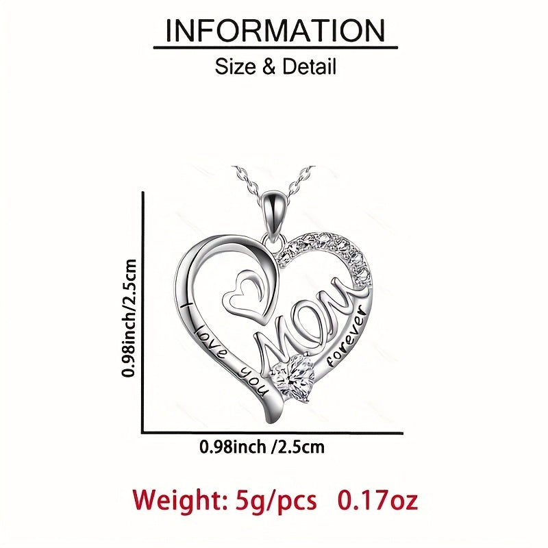 This lovely heart-shaped pendant necklace features an inlaid zircon with the letters 'MOM'. A sweet and thoughtful gift for any mother!