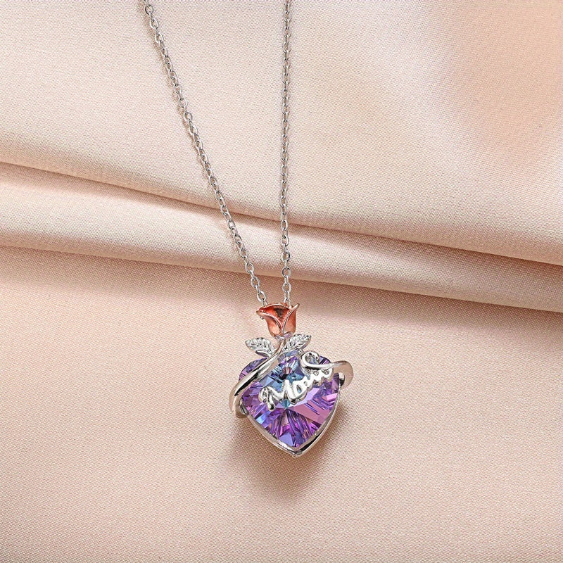 Beautiful heart shaped crystal necklace that will make a perfect gift for mothers or women. This pendant necklace is a creative and elegant choice for any occasion.