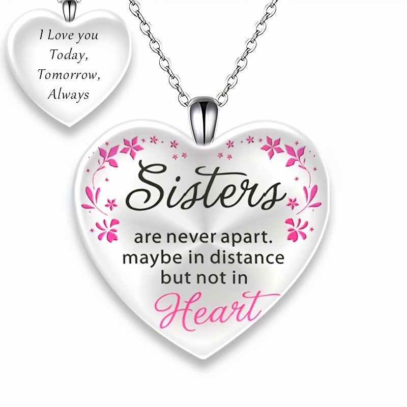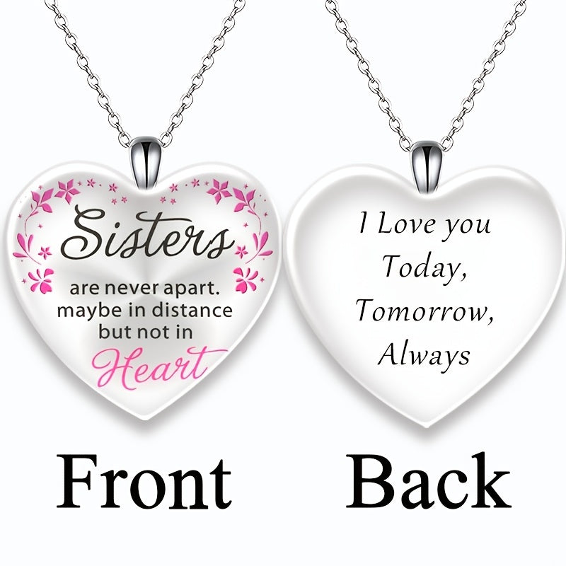 Heart Shaped Crystal Pendant Necklace With Sister Letter Gift
