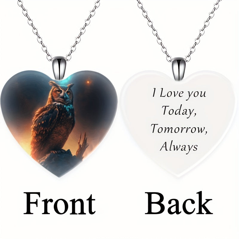 Heart Shaped Owl Pendant Necklace Men Women Jewelry Gift