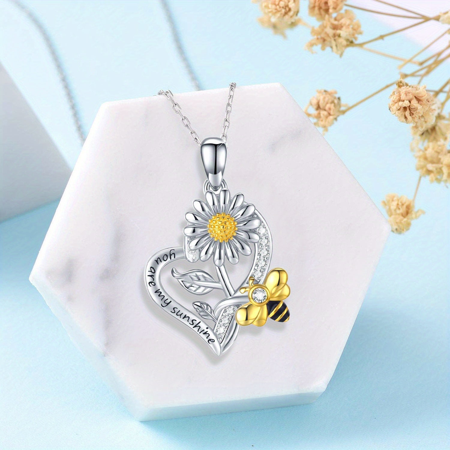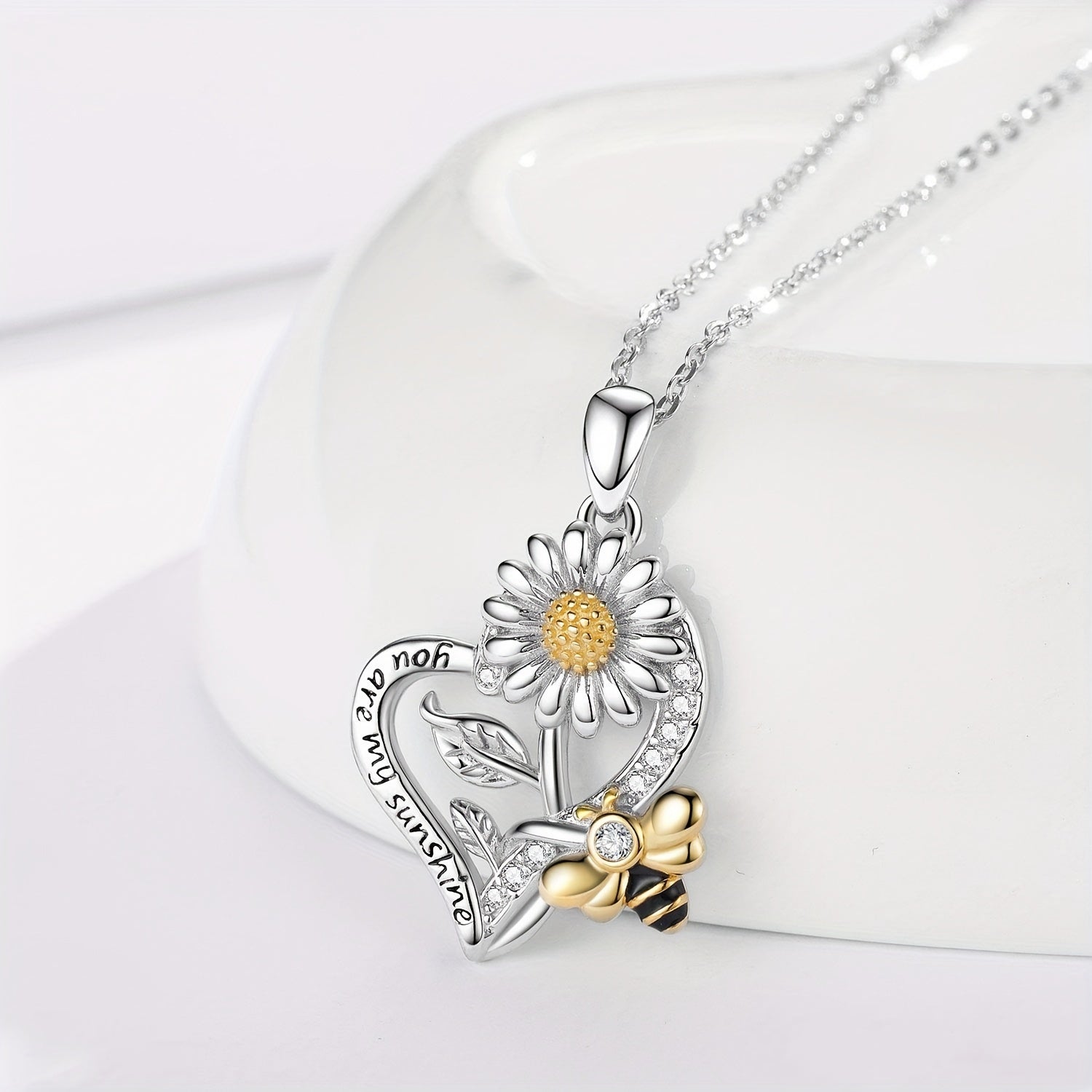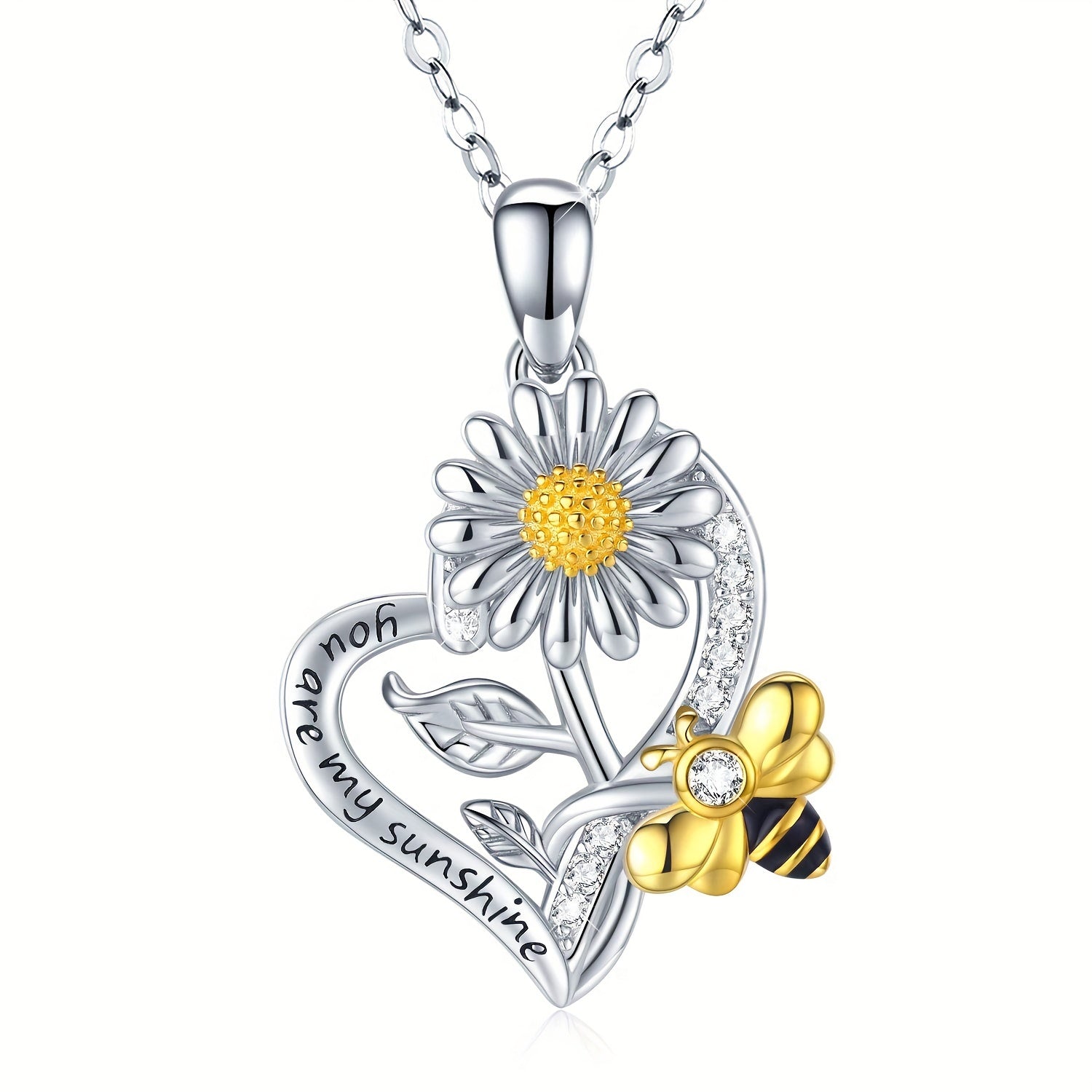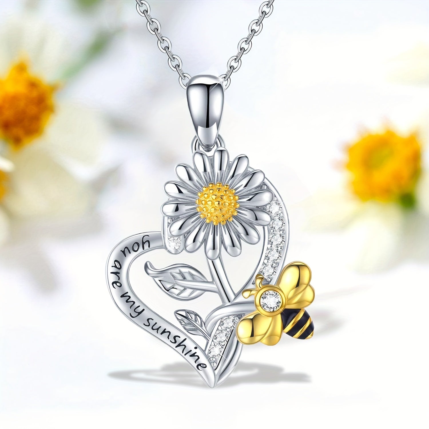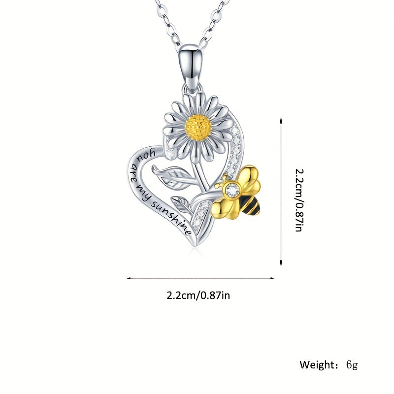 This heart-shaped pendant necklace is a creative accessory featuring a sunflower bee design. It's perfect for men or women and makes a great gift for friends or loved ones.