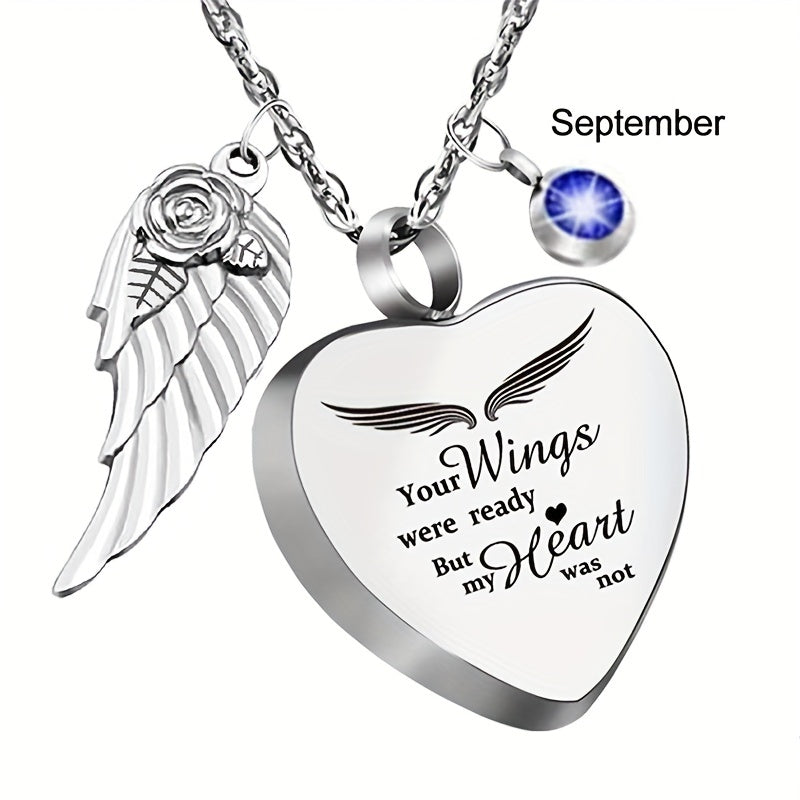 This stunning necklace features a heart and wing shape design with inlaid rhinestones. Perfect for adding a touch of elegance to any outfit.