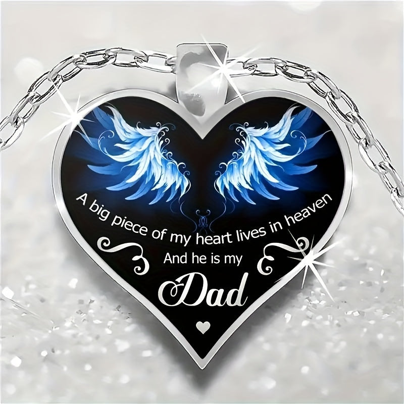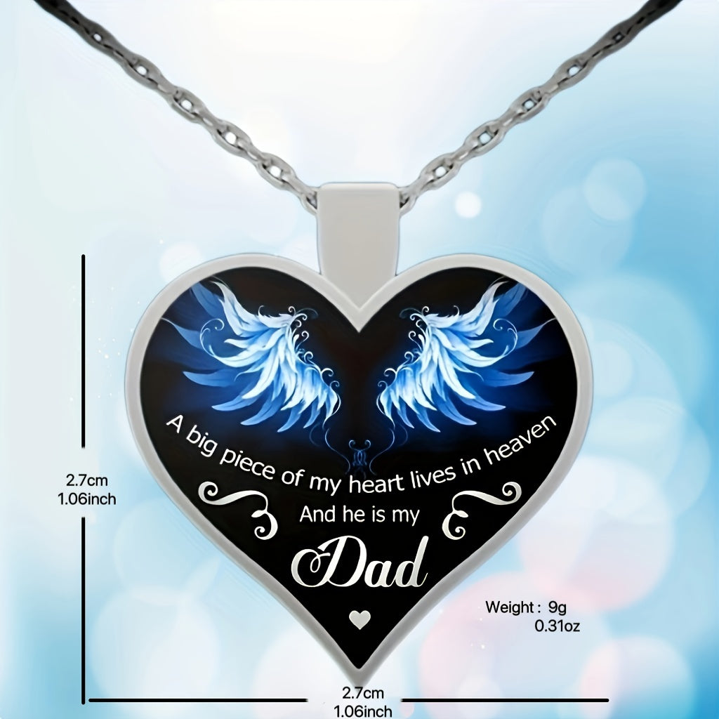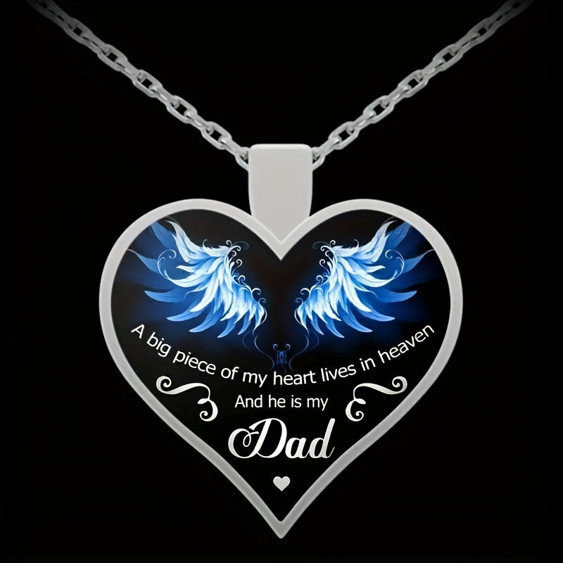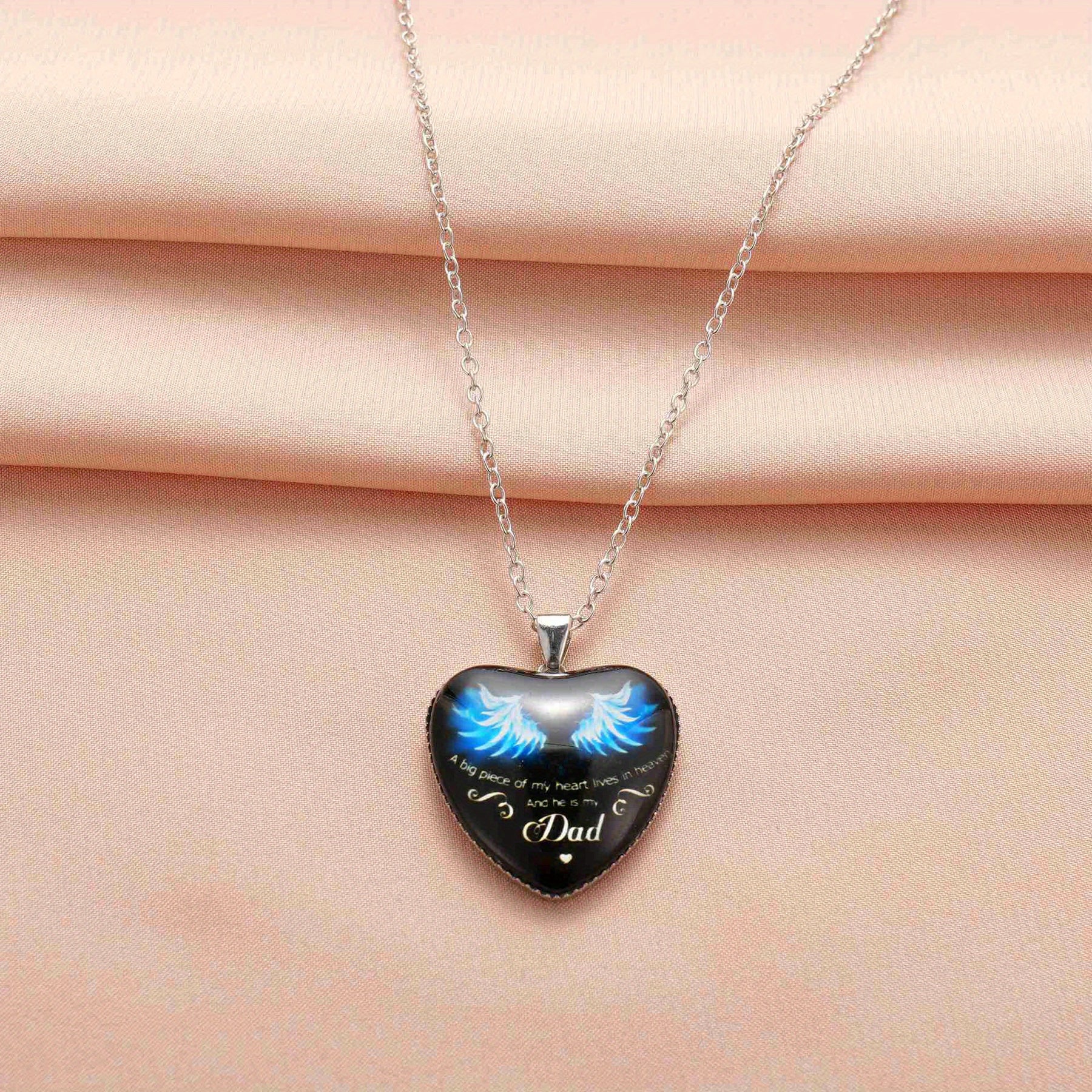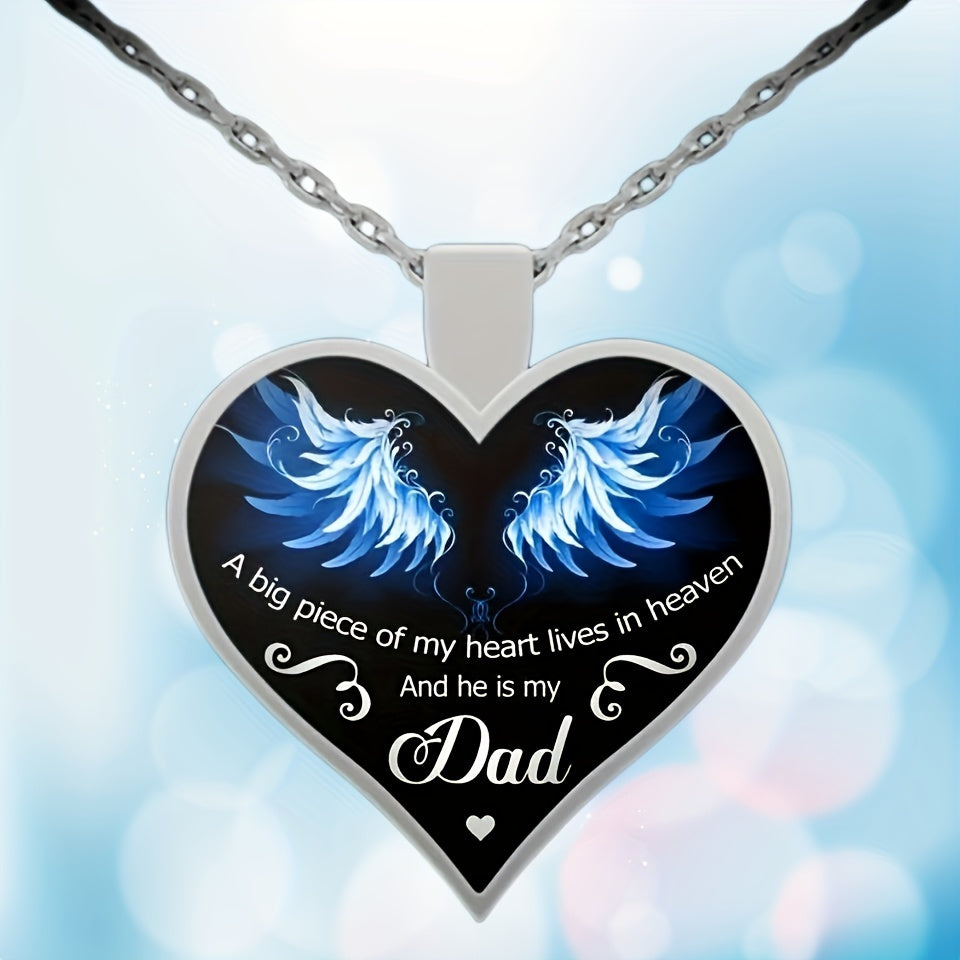Heart Wings Text Necklace Men's Party Jewelry Gift Zinc Alloy