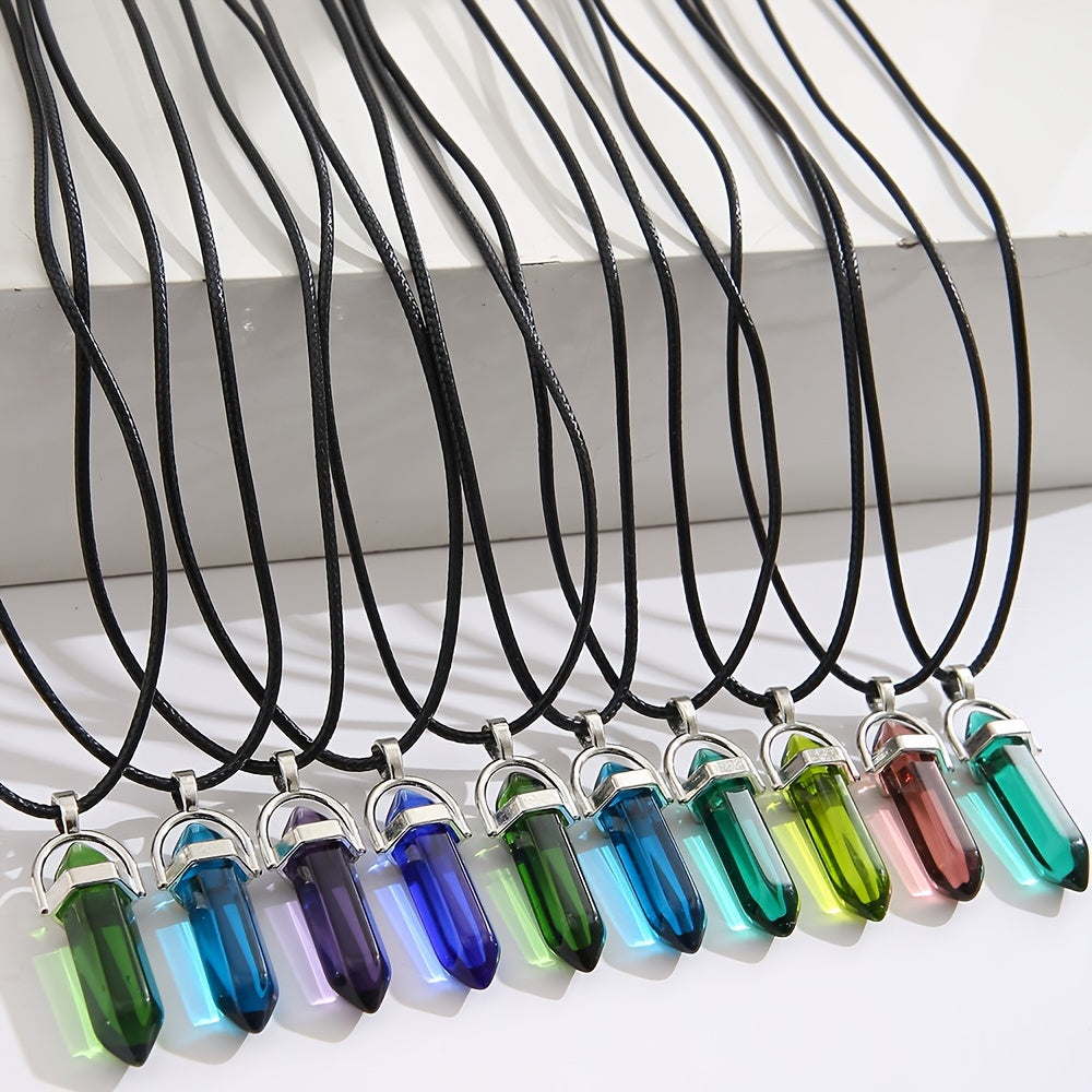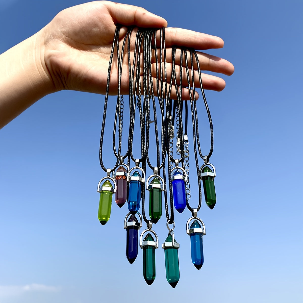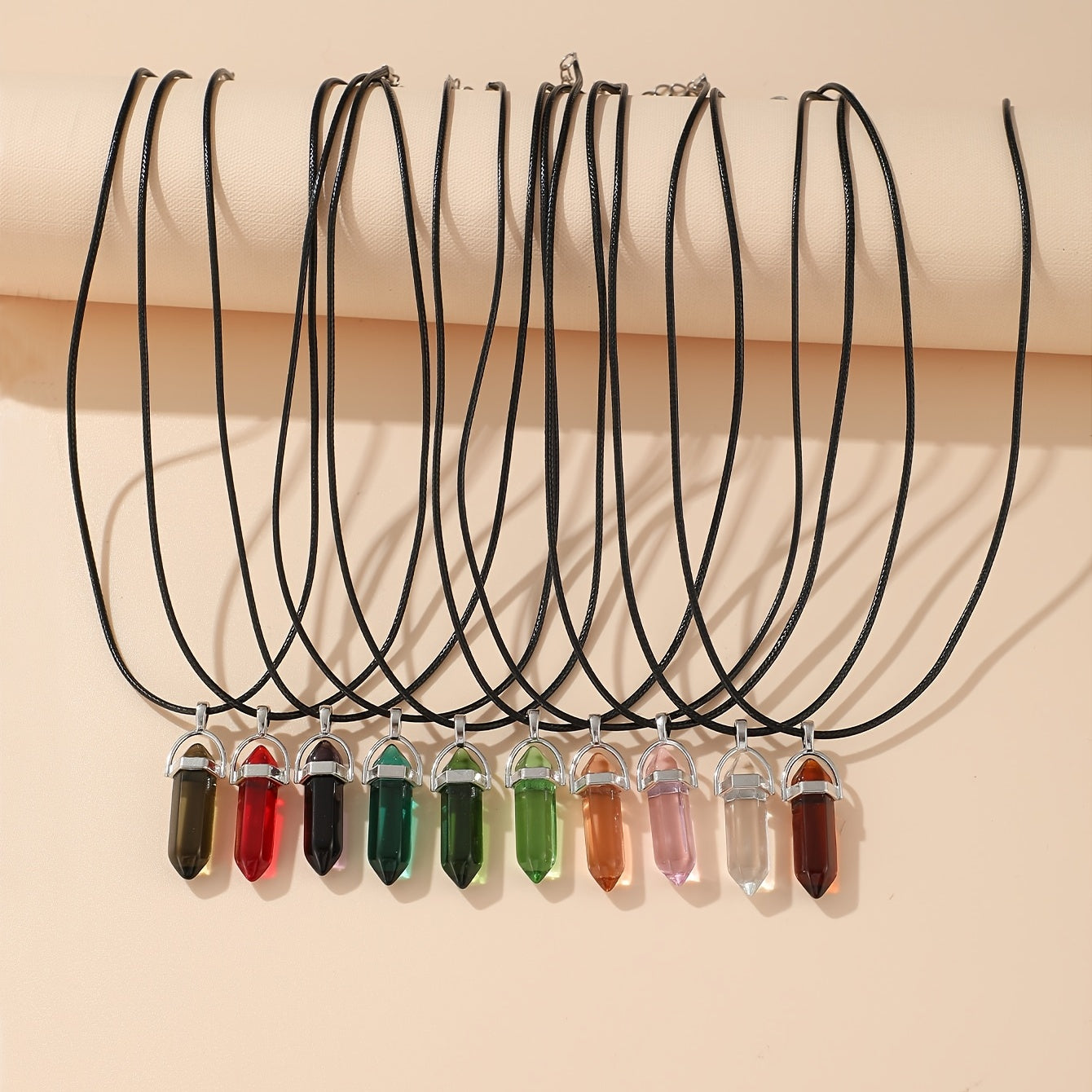 Elegant necklace featuring natural stone pendants in 10 random colors. Perfect accessory for any outfit.