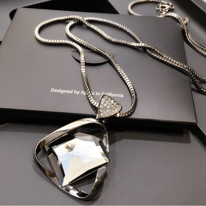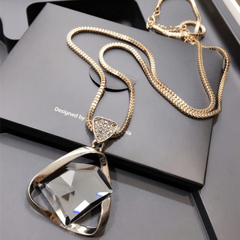 Elevate your style with this stunning rhinestone sweater chain necklace. Perfect for autumn and winter outfits, it adds a touch of sparkle and elegance to your look.