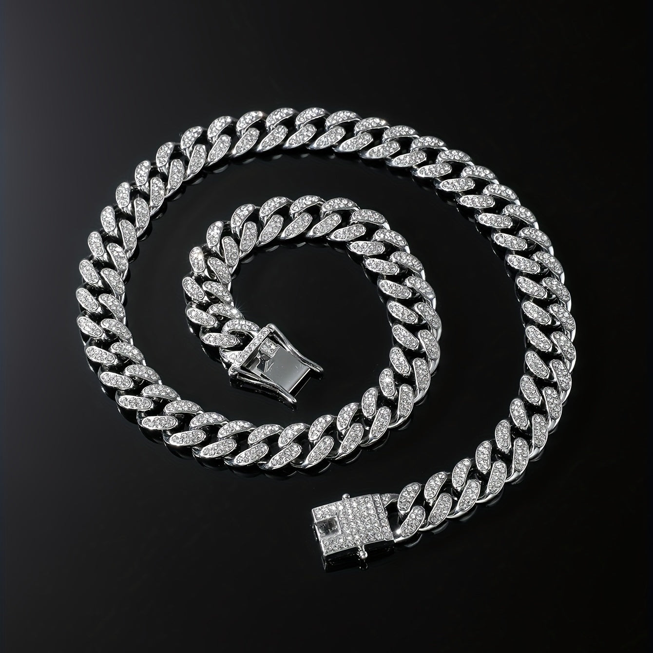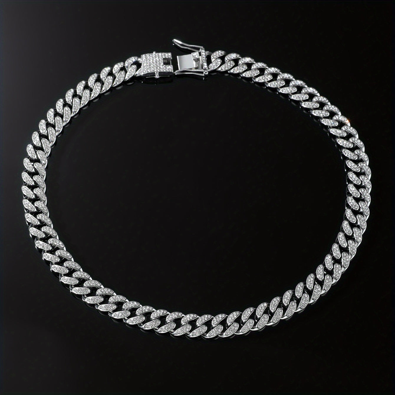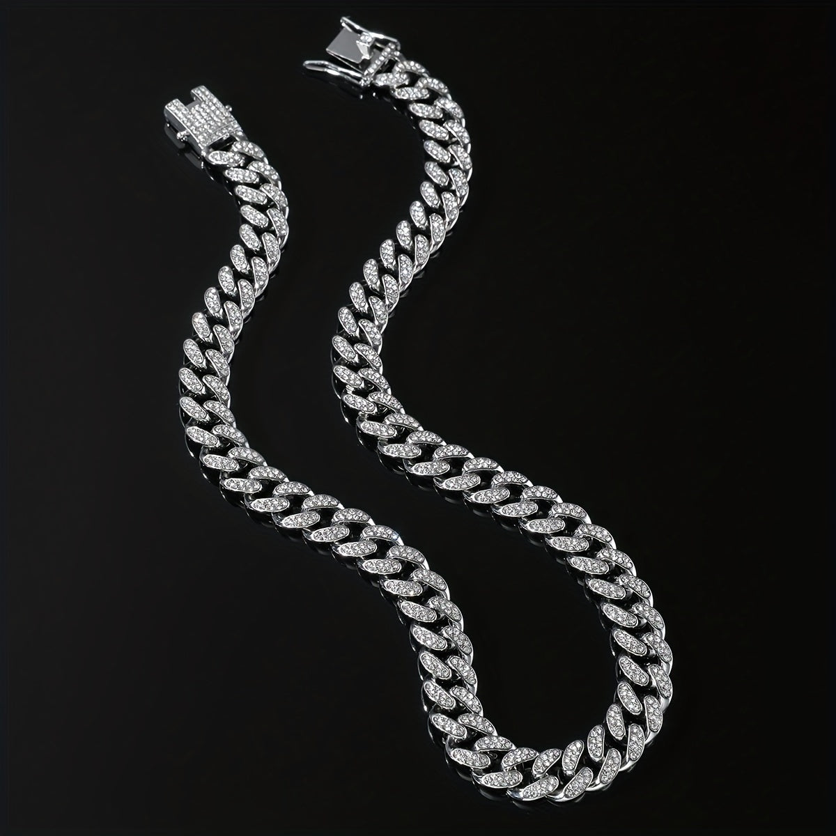 Upgrade your style with this stylish Cuban necklace featuring full faux diamond details. Perfect for adding a punk edge to your accessories collection.