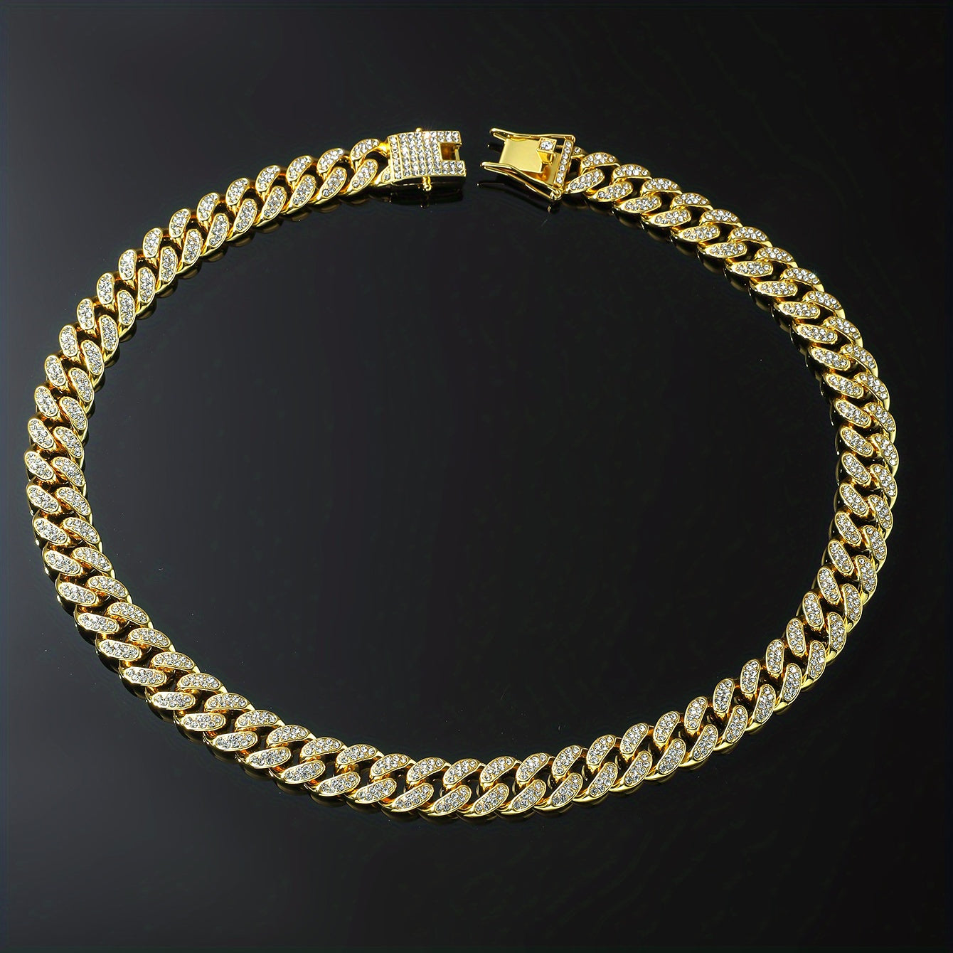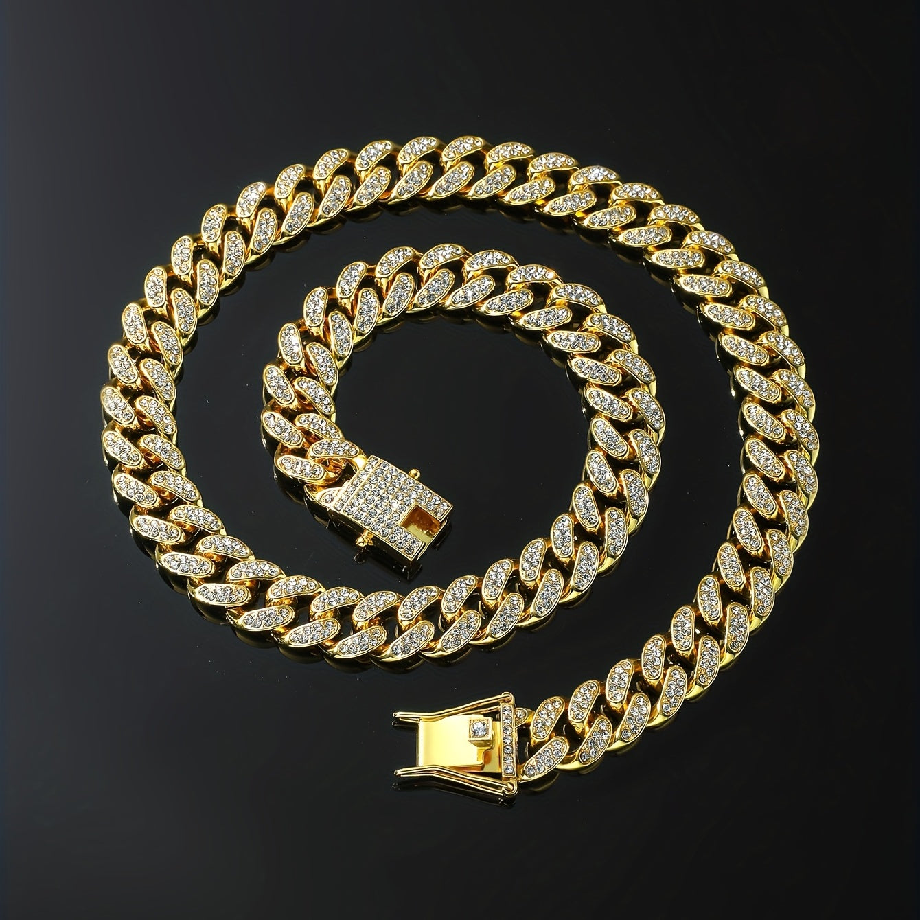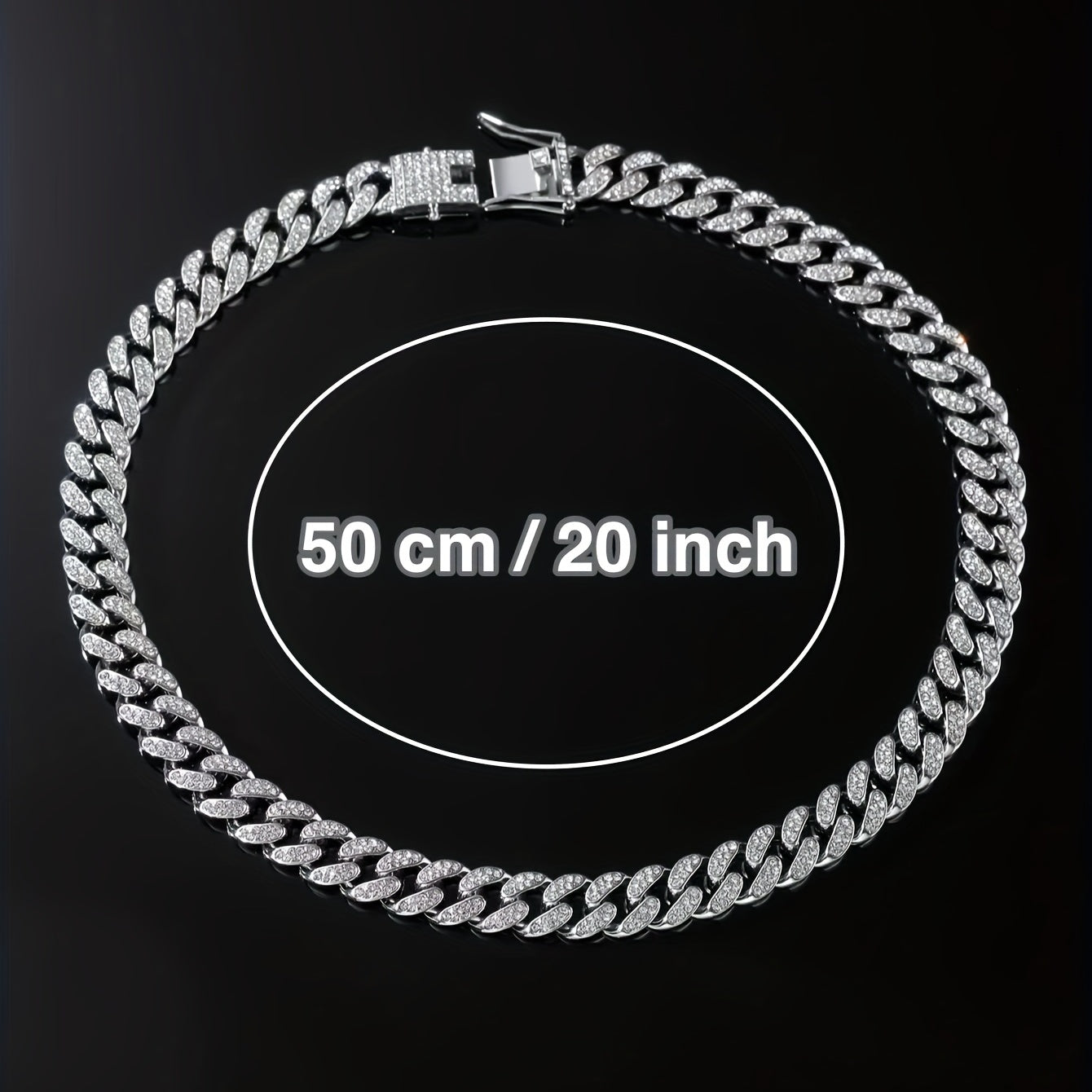 Upgrade your style with this stylish Cuban necklace featuring full faux diamond details. Perfect for adding a punk edge to your accessories collection.