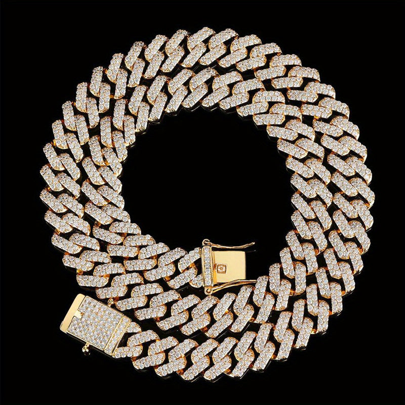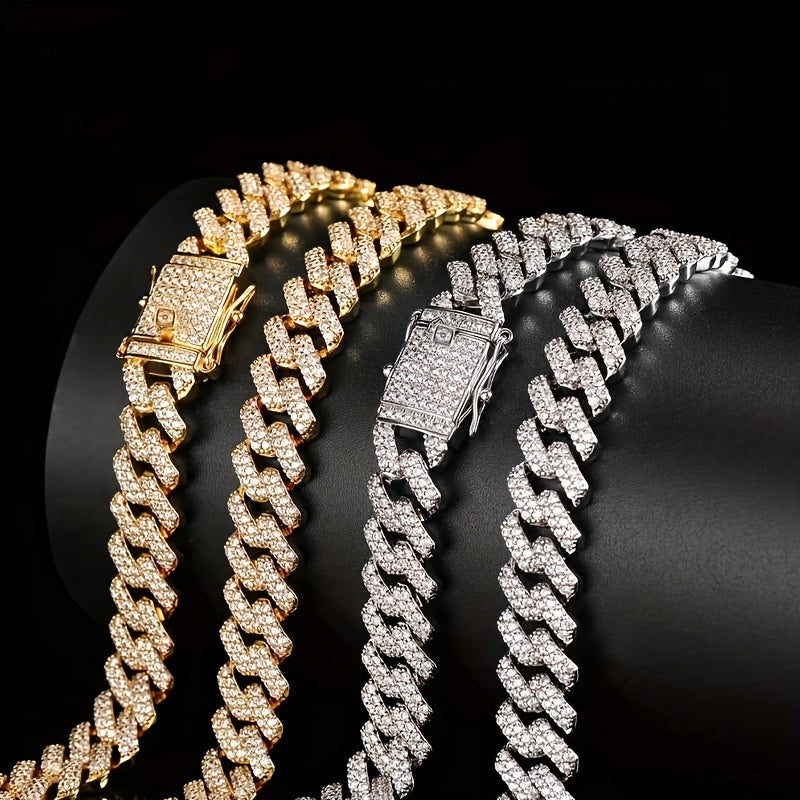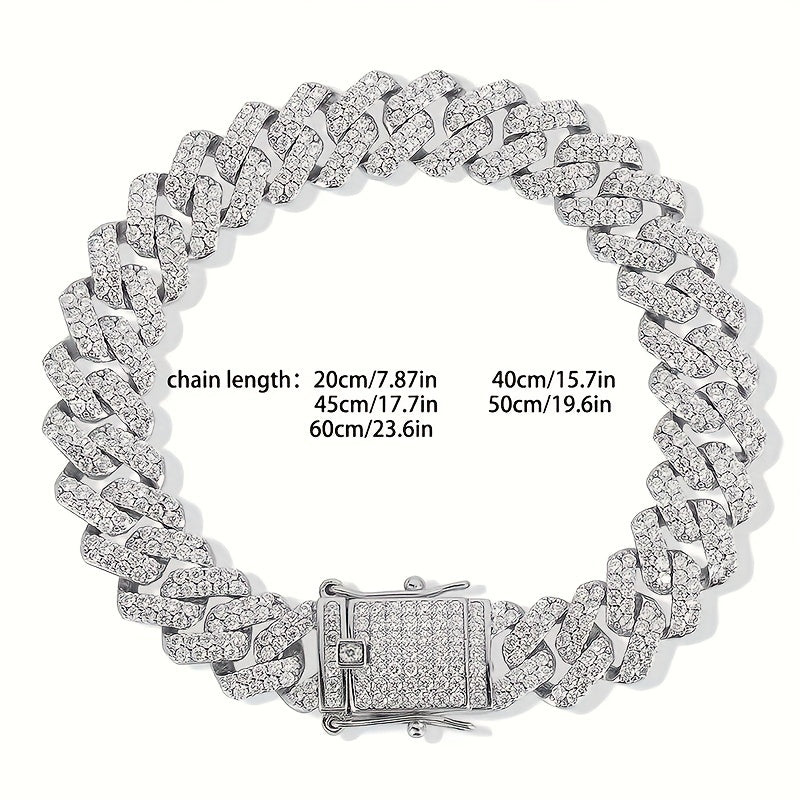 Elevate your style with this hip hop inspired set. Features a 20mm artificial diamond shape chain that can be worn as a bracelet or necklace.