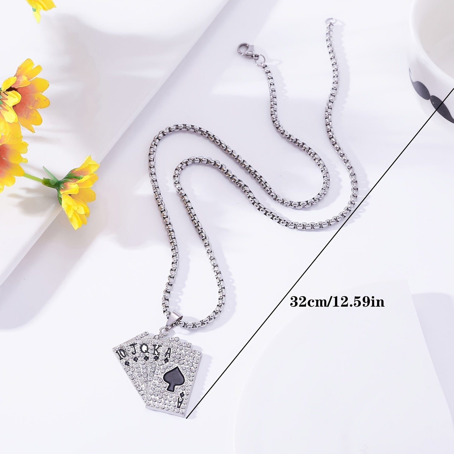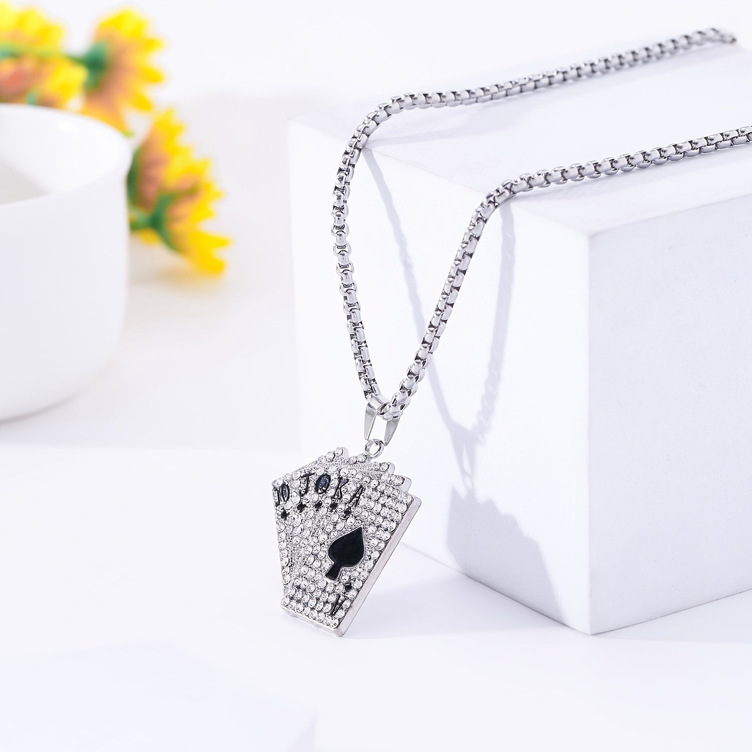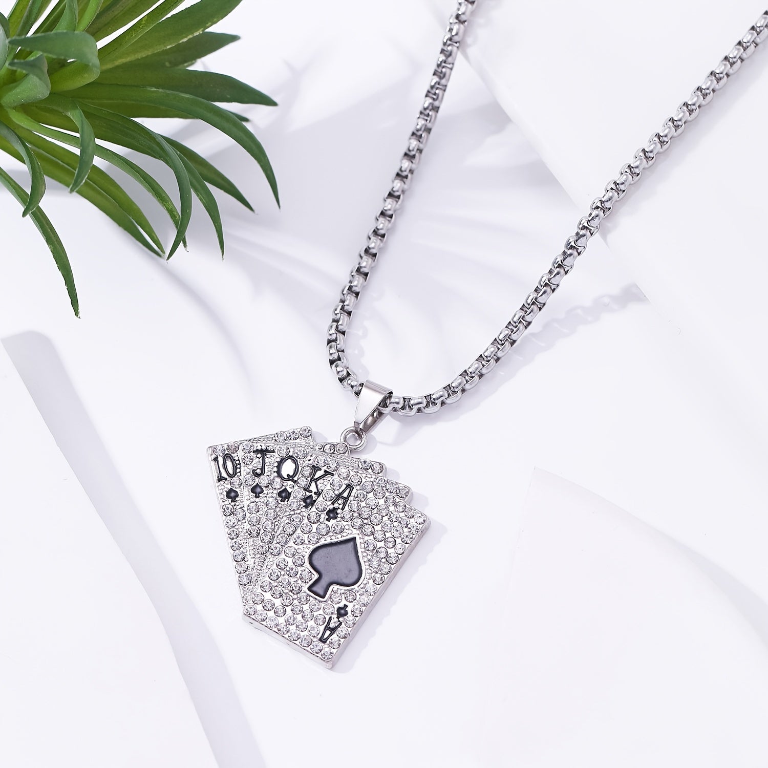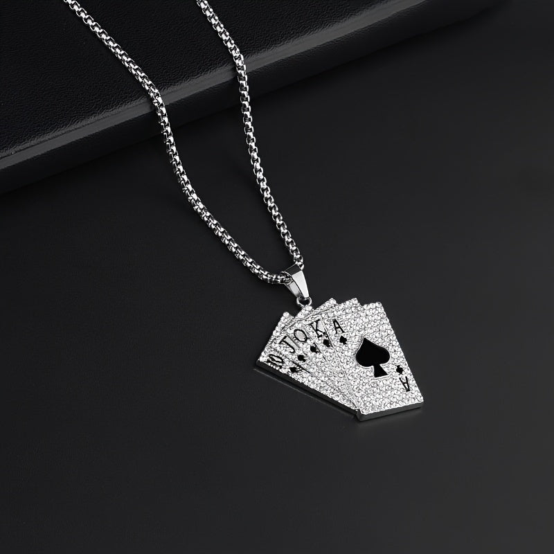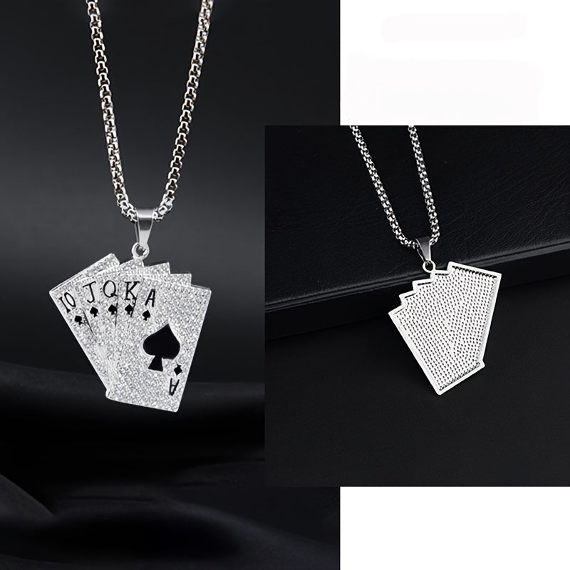 Elevate your style with this hip hop playing card pendant necklace made from titanium steel.
