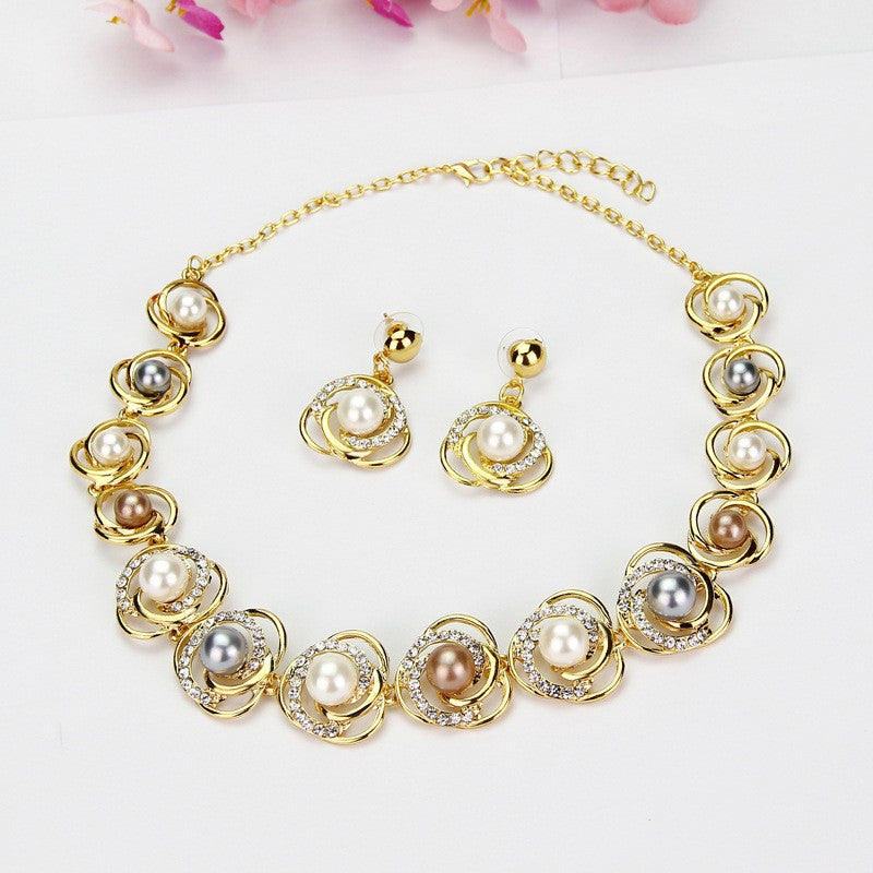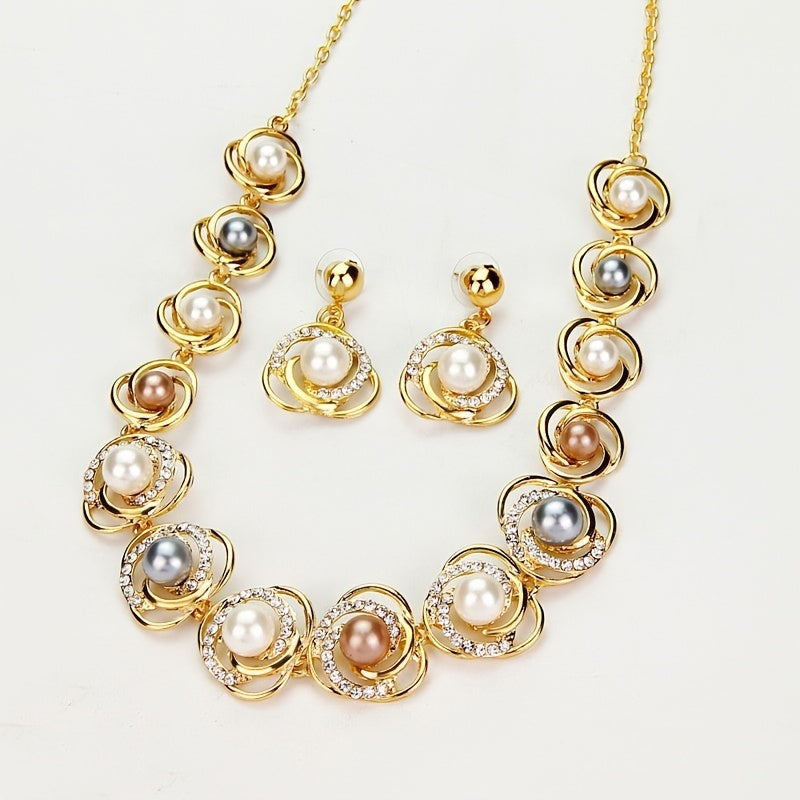 This stunning jewelry set features a delicate hollow flower design on a choker necklace and matching drop earrings. Perfect for adding a touch of sweetness to any outfit.