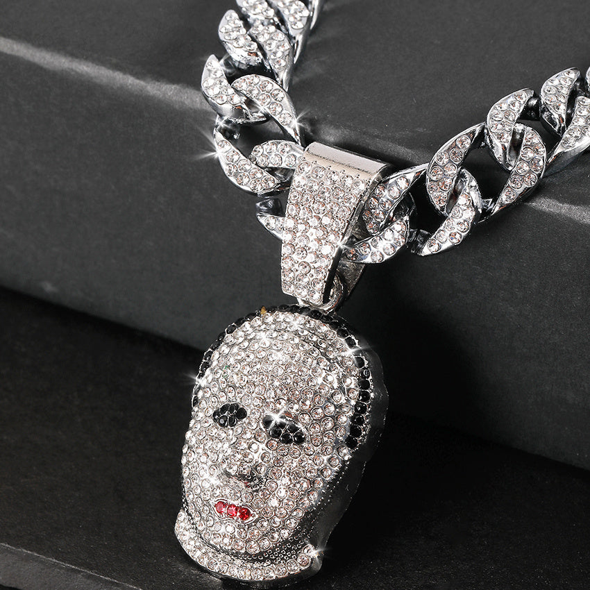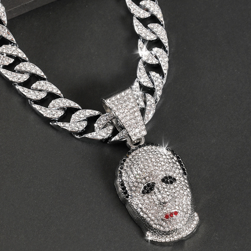 Stylish and unique necklace featuring a human head pendant on a trendy Cuban chain.