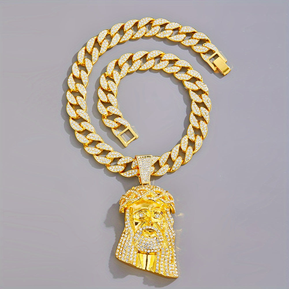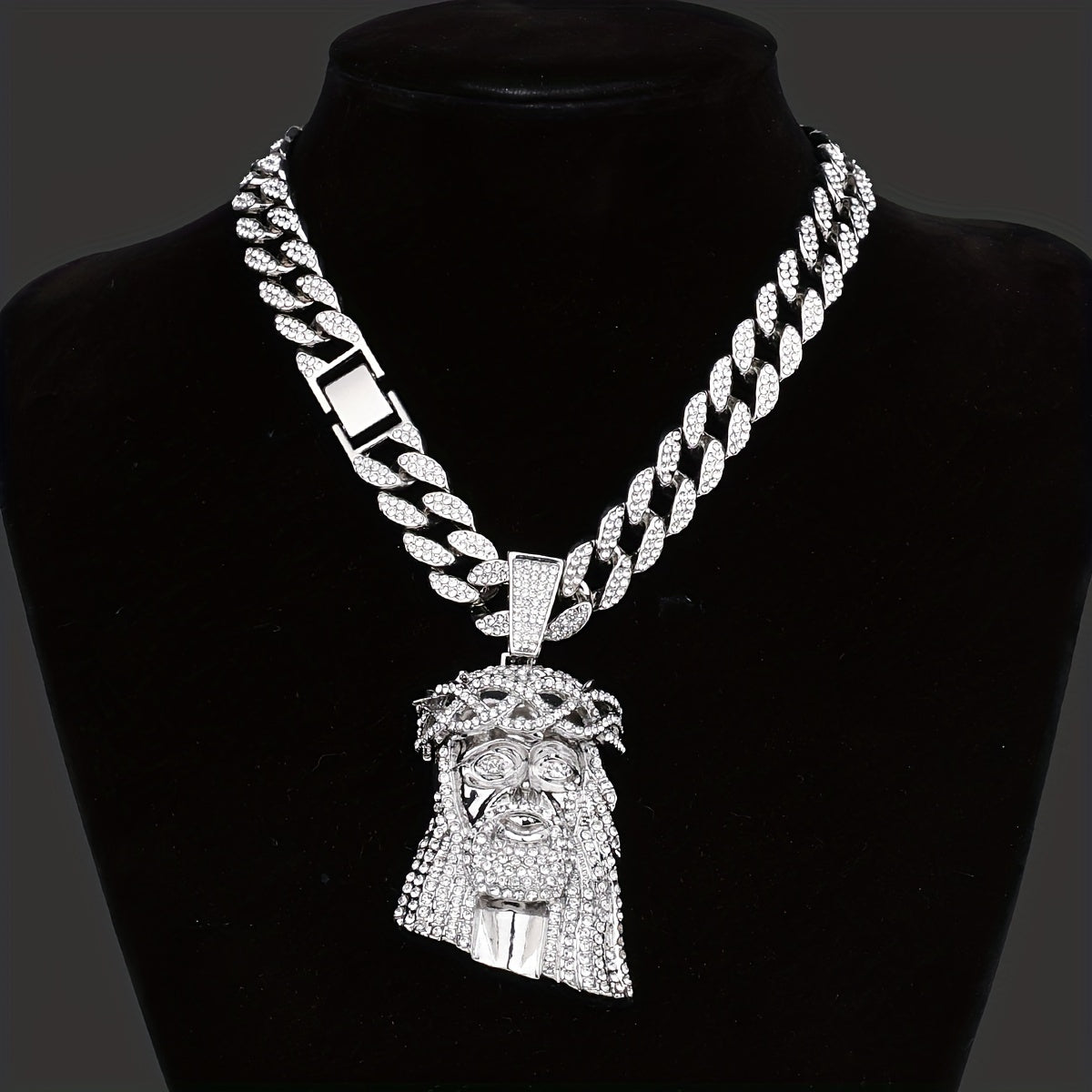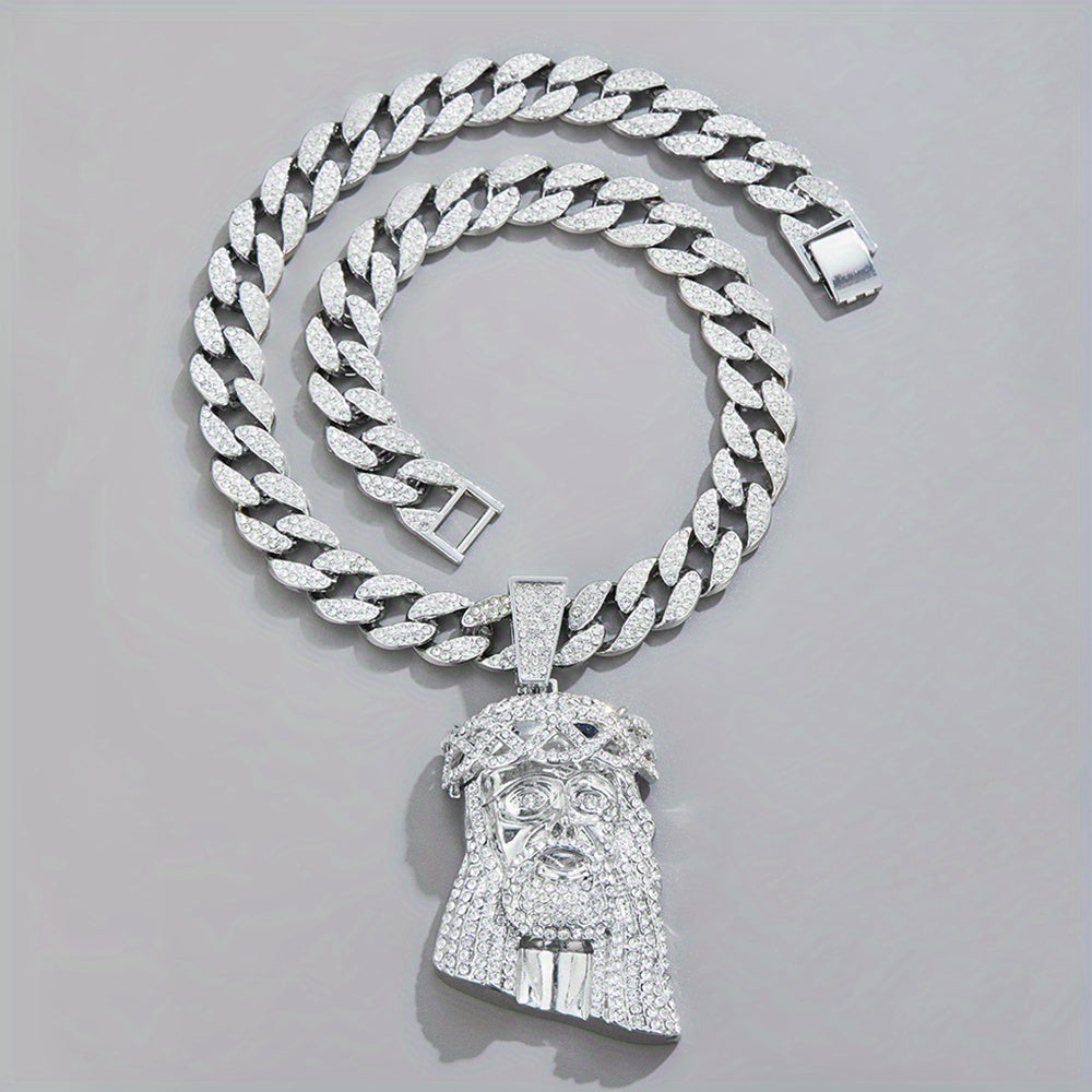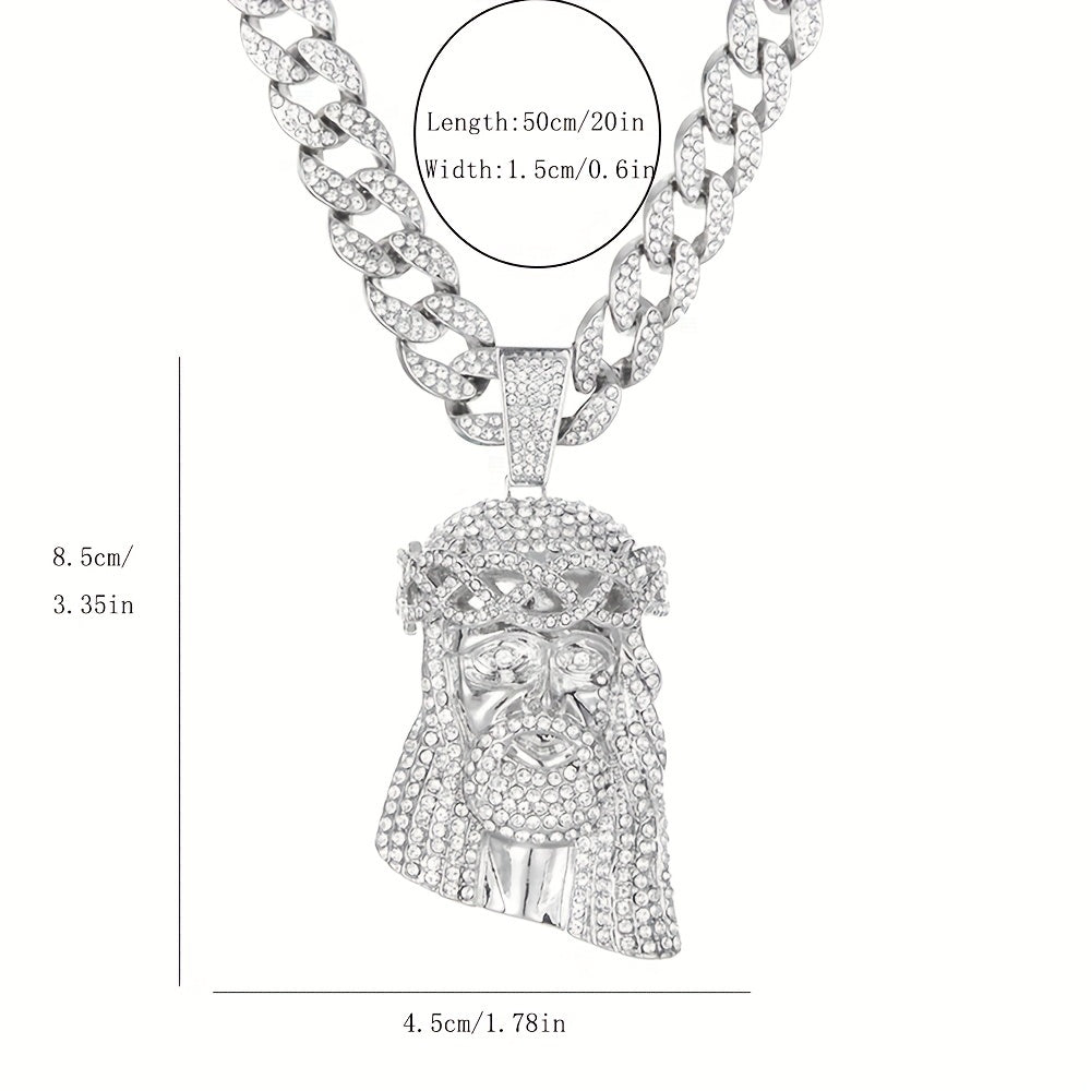 Elevate your style with this large Iced Jesus Piece Pendant featuring a big crystal. Perfect for men who love hip hop fashion.