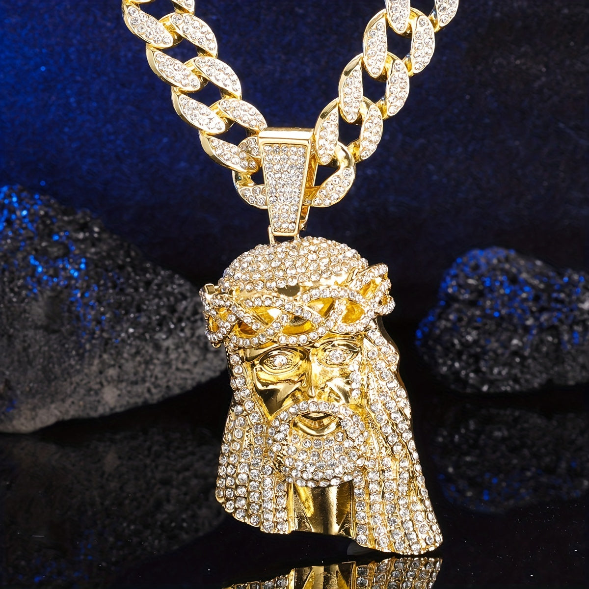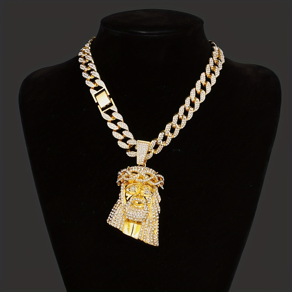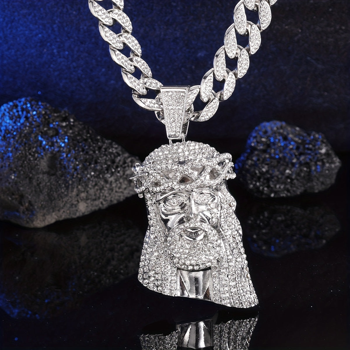 Elevate your style with this large Iced Jesus Piece Pendant featuring a big crystal. Perfect for men who love hip hop fashion.