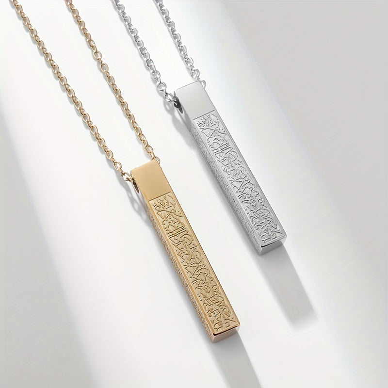 This pendant features Islamic Arabic Quran calligraphy symbolizing God's protection. It is a beautiful piece for Muslims seeking amulets for spiritual strength.
