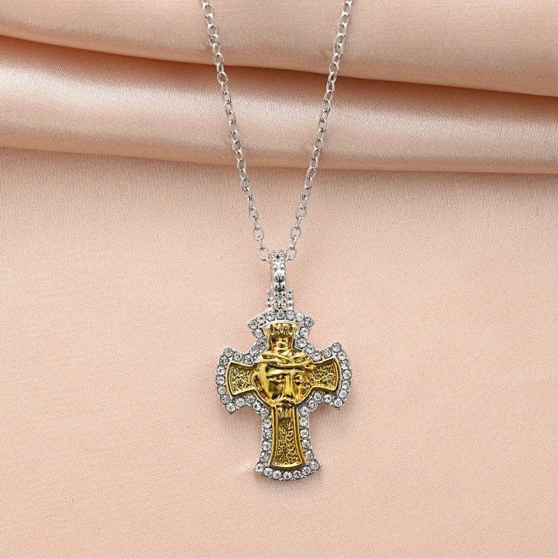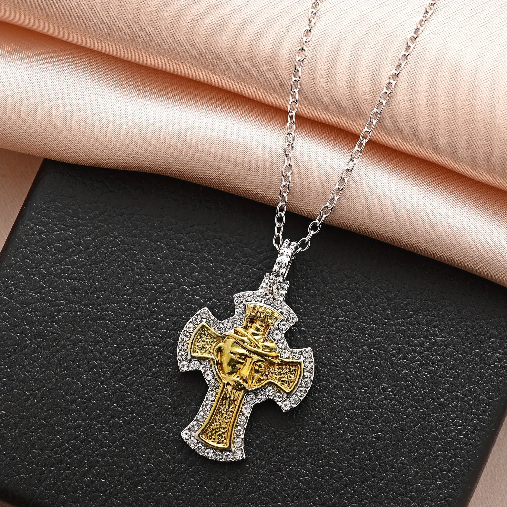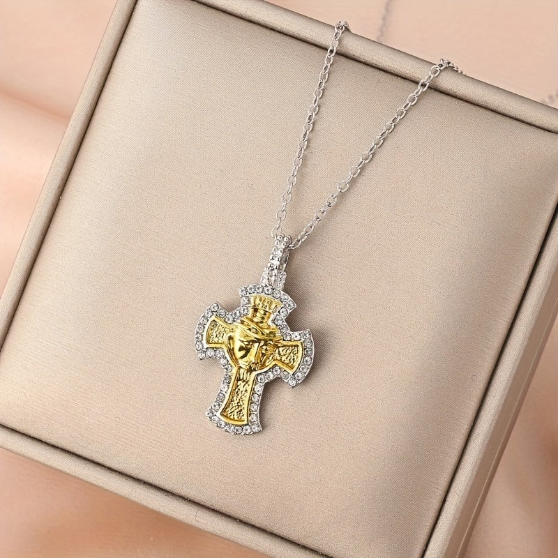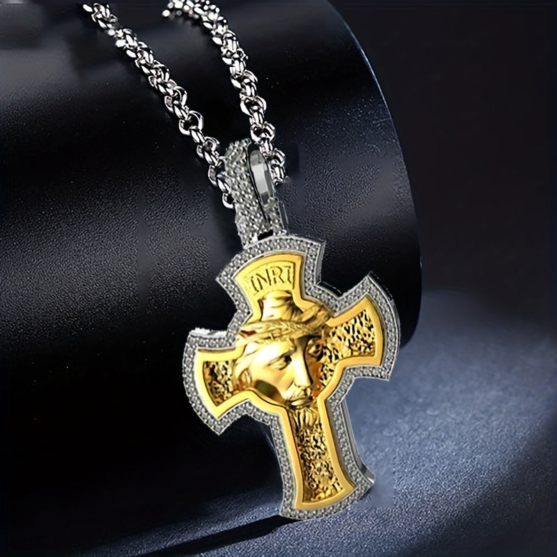 This pendant necklace features a Jesus figure embossed cross design, perfect for daily wear and as a religious accessory. Ideal holiday gift for men.