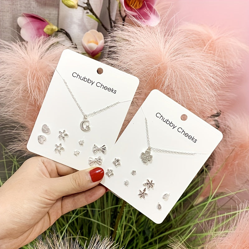 This jewelry set includes earrings and necklace in Kpop style with cross and heart patterns. Perfect to match daily outfits and makes a sweet gift for girls. Comes in a blind box with uncertain styles.