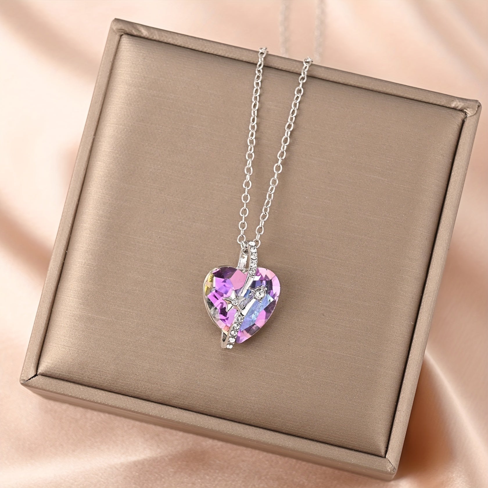 Elegantly designed heart pendant necklace with delicate crystals for a touch of sparkle