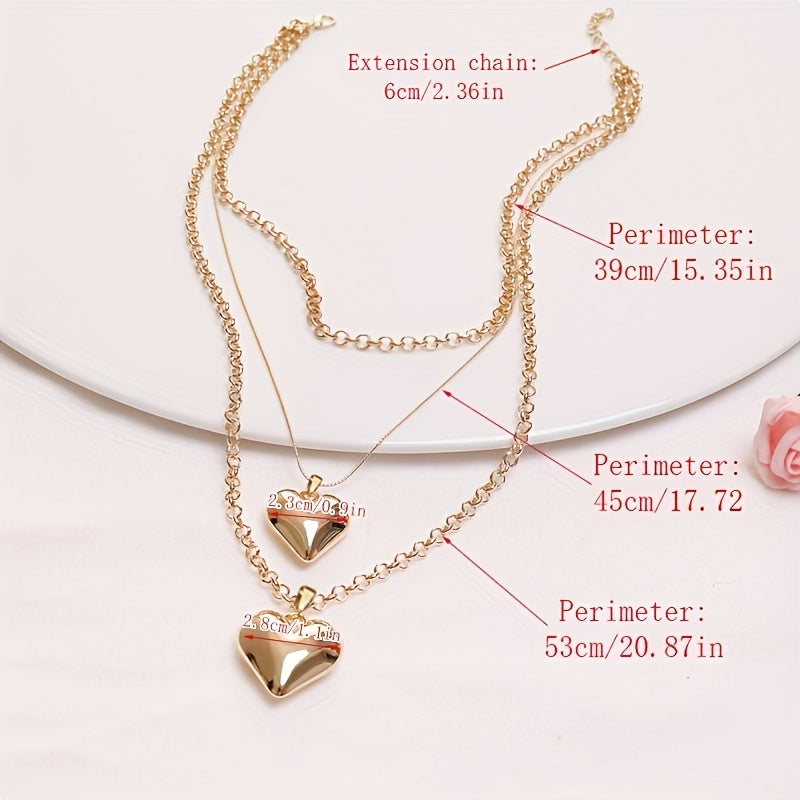 Large Love Heart Pendant Jewelry Set with Necklace, Bracelet, Earrings