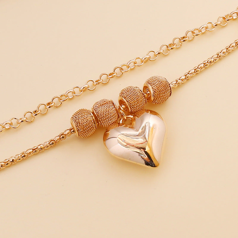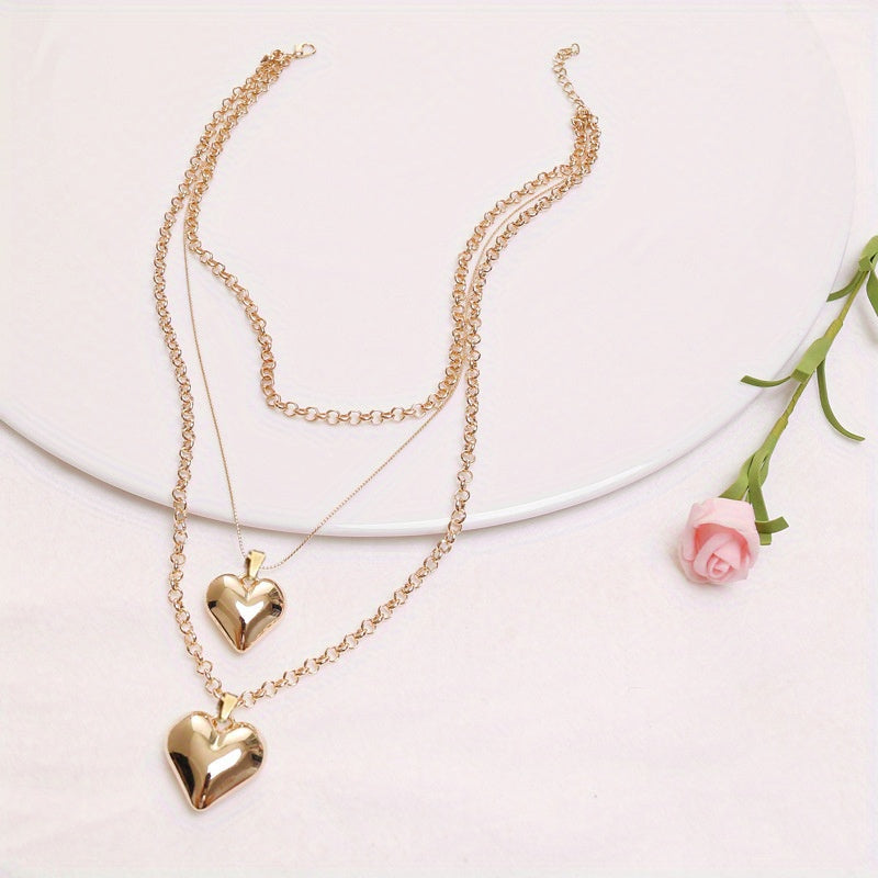 This stunning jewelry set features a large love heart pendant necklace, chain bracelet, and large hoop earrings. Perfect for adding a touch of glamour to any outfit.