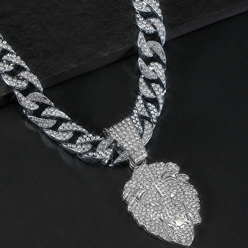Lion Head Pendant Cuban Chain Necklace