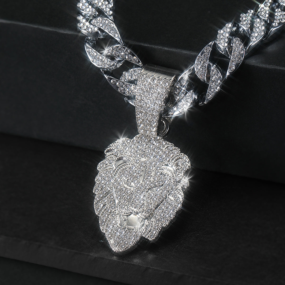Make a bold statement with this lion head pendant Cuban chain necklace.