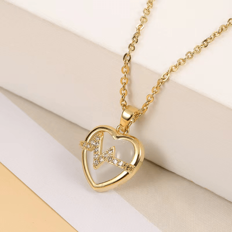 This necklace features a unique love electrogram pattern pendant design, perfect for women with a niche sense of style. The chain is made of stainless steel and plated with 18K gold, adding a touch of elegance to any outfit.