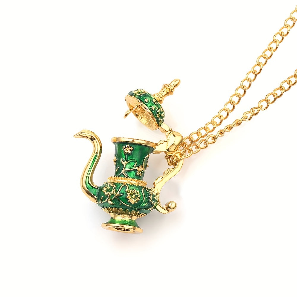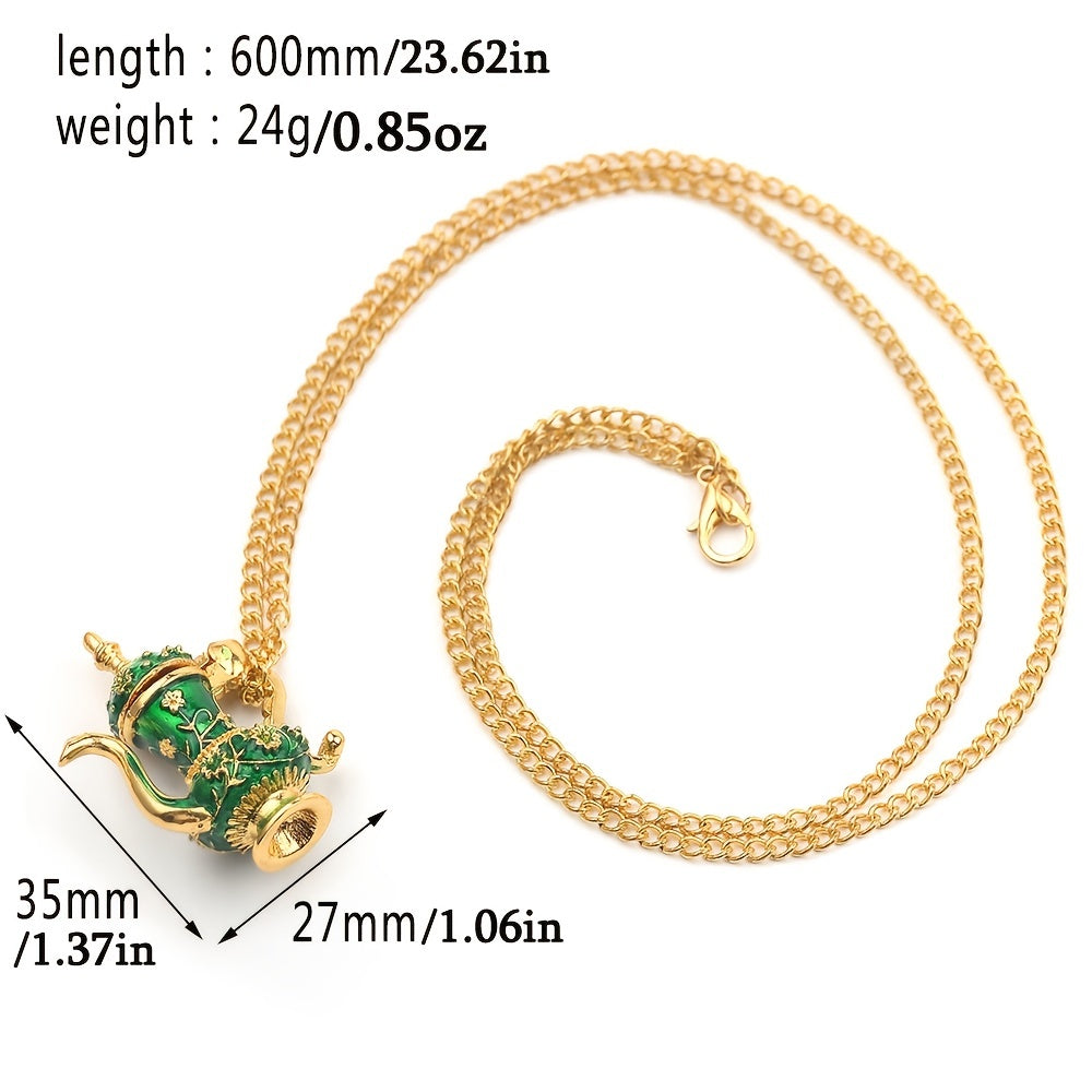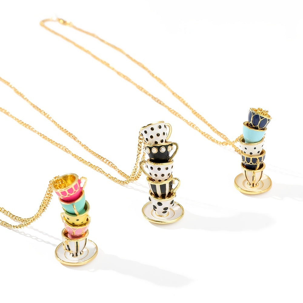 This European And American style necklace features a unique enamel glaze tea cup pendant, adding a touch of magic to your look. Perfect for a charming and elegant accessory.