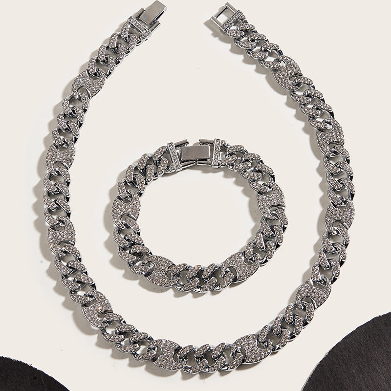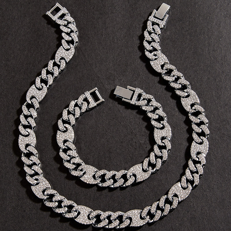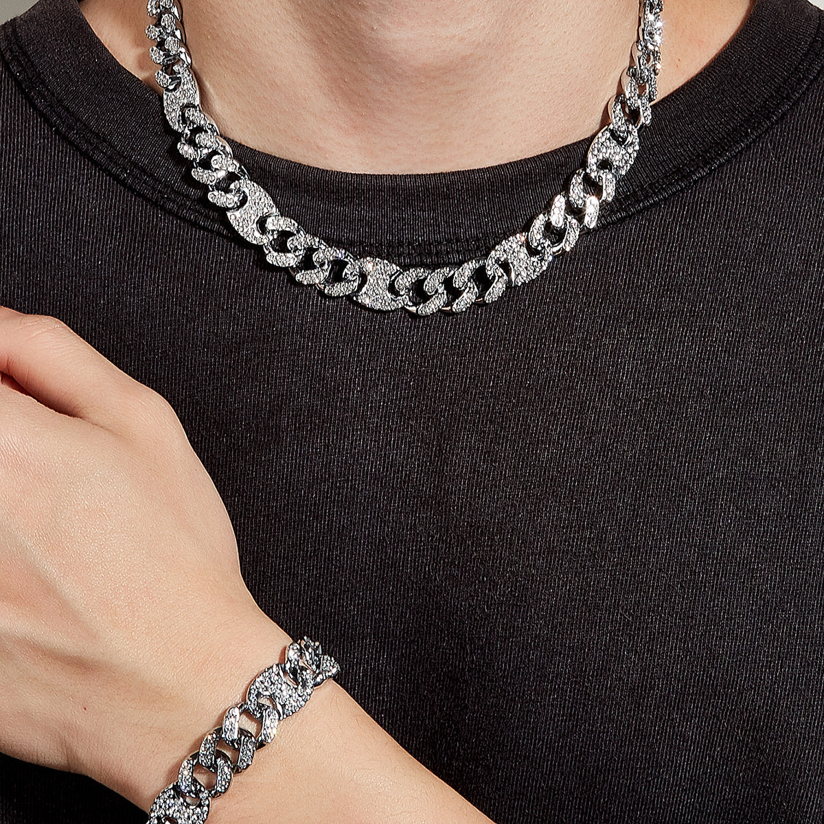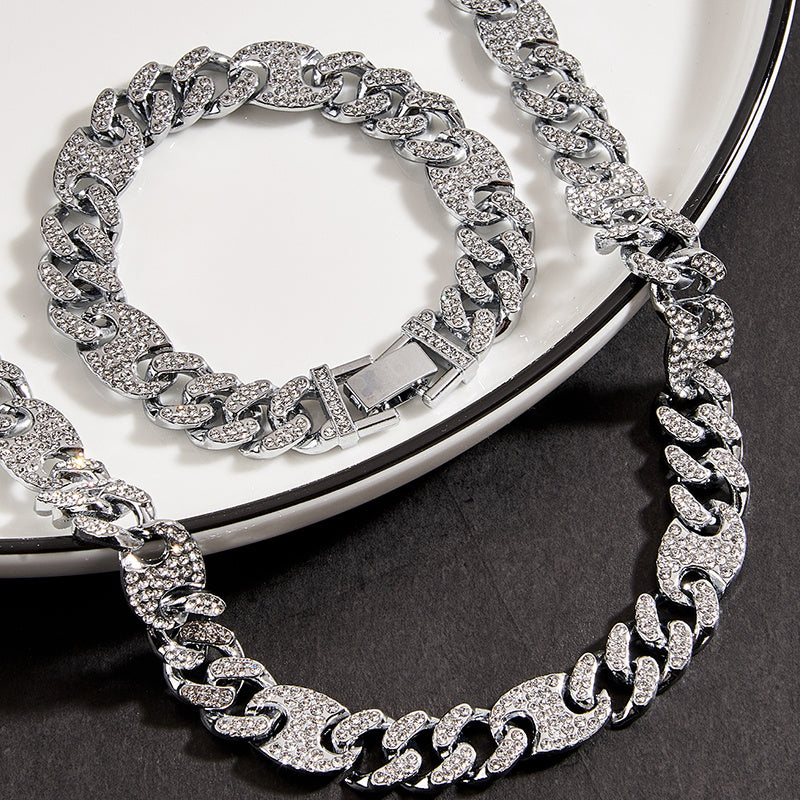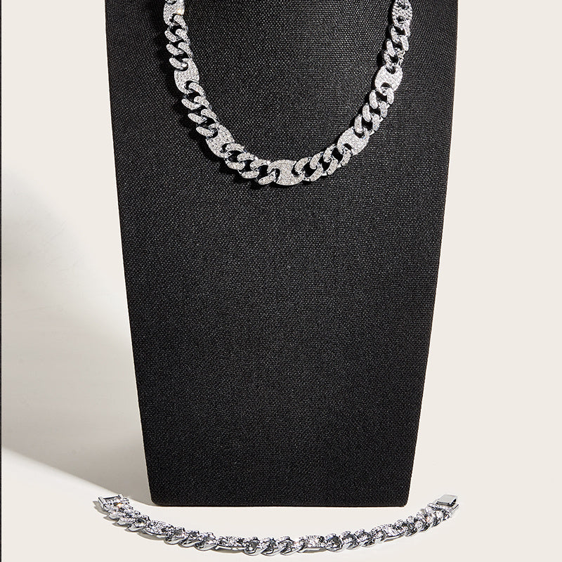 This set includes an oval necklace and bracelet for men, offering a stylish and versatile accessory option. The pieces are designed to complement each other and can be worn separately or together for a coordinated look.