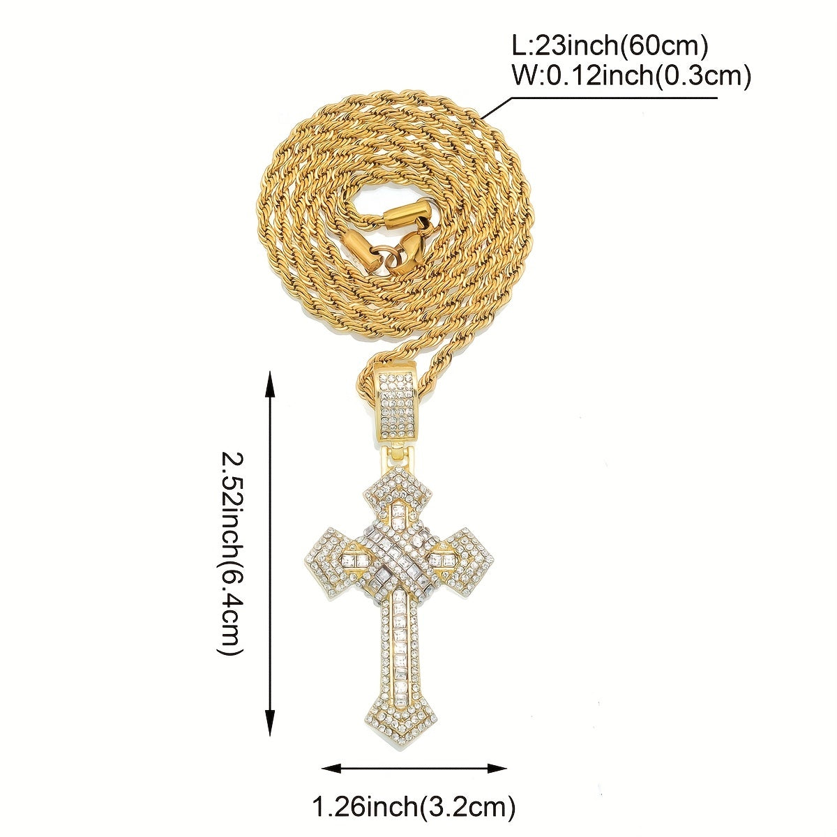 Men's Cross Pendant Necklace Hip Hop Set Rhinestone Cross Pendant Necklace