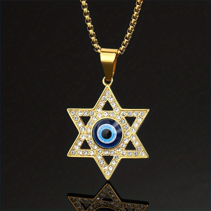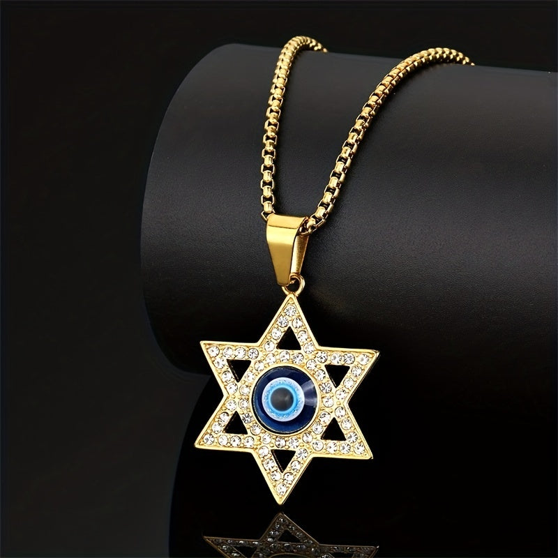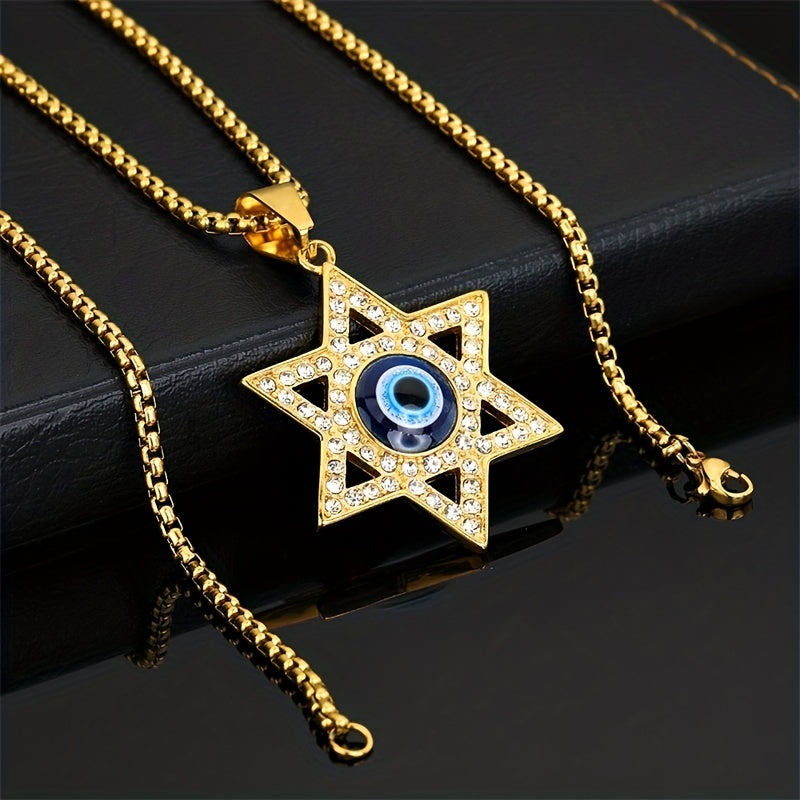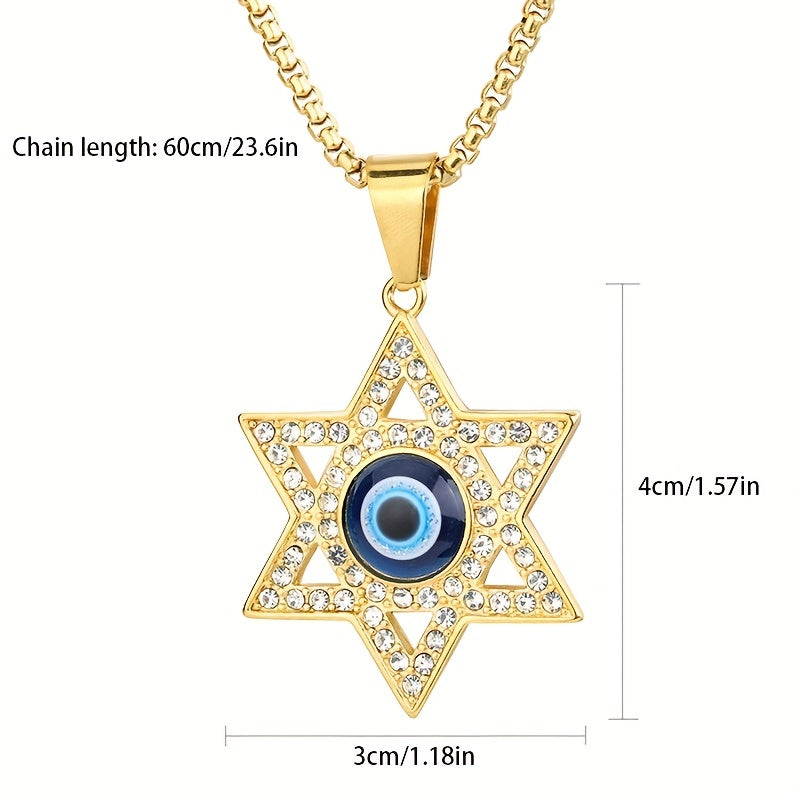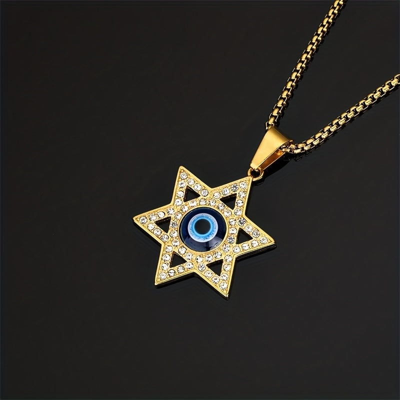 Men's Cutout Hexagram Pendant Hip Hop Devil's Eye Necklace