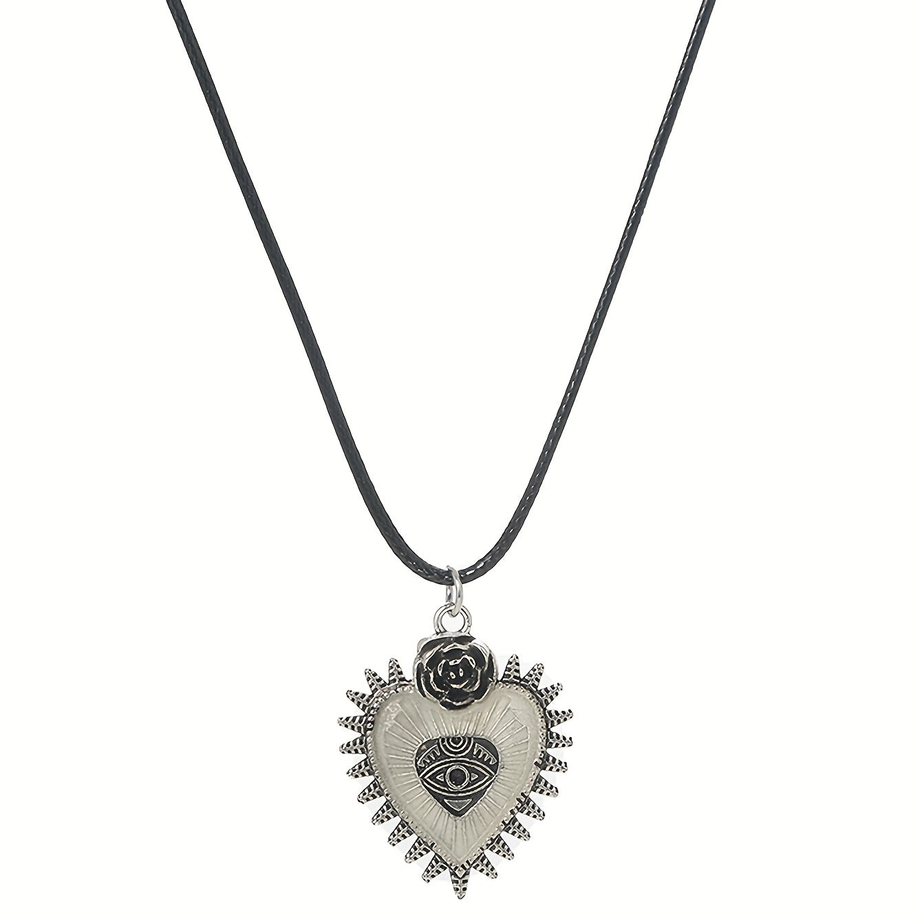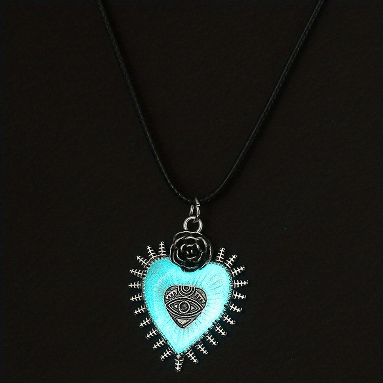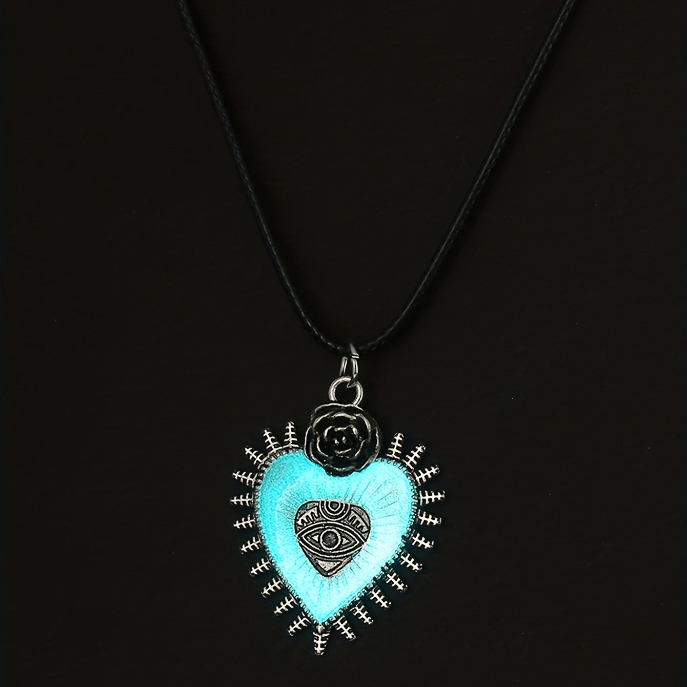 This pendant necklace features a generous heart design with a teal glow in the dark effect. It is made of eco alloy, making it a perfect gift for men, women, or friends for various occasions.