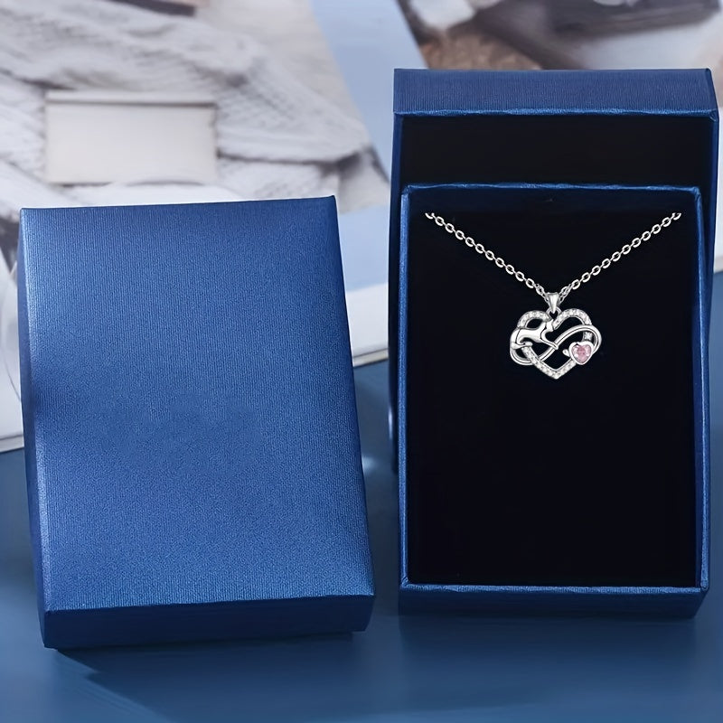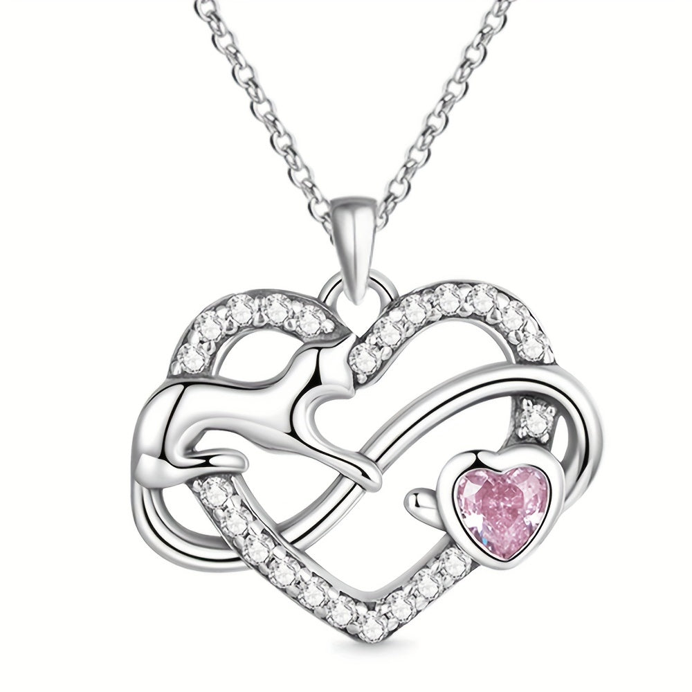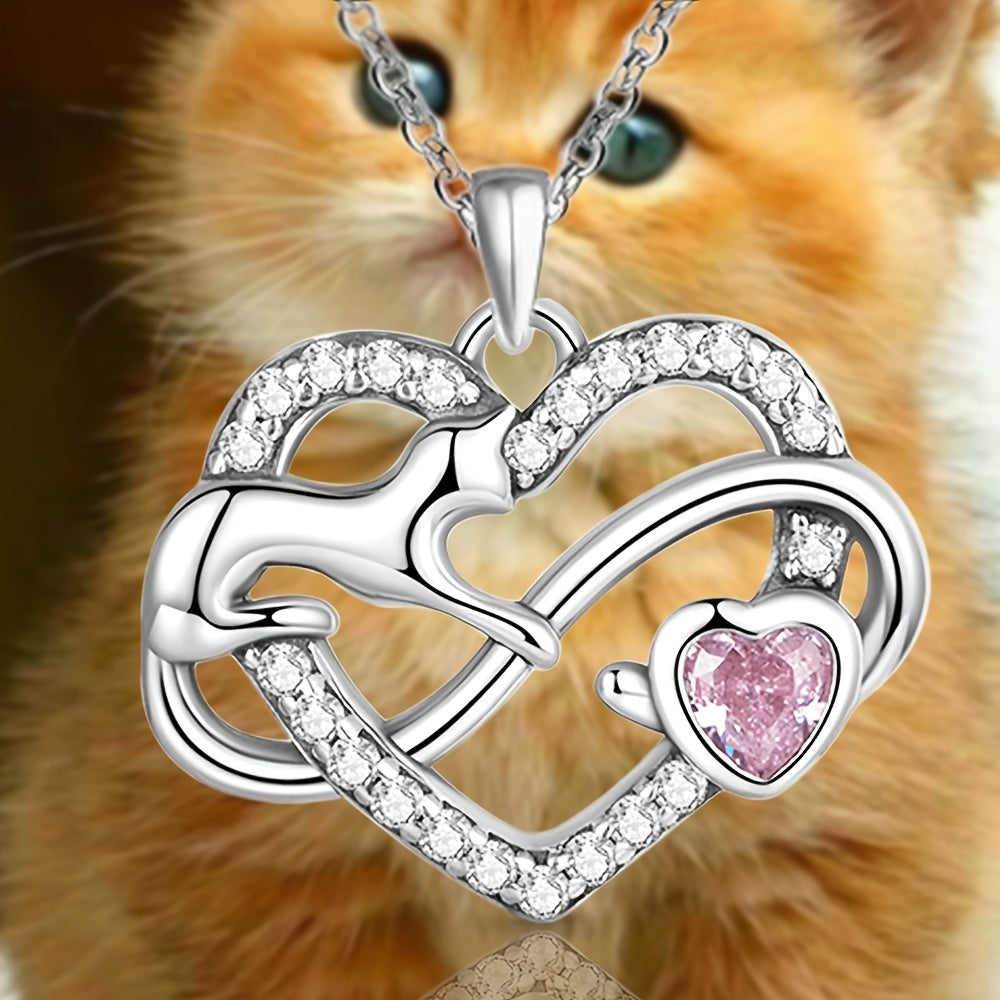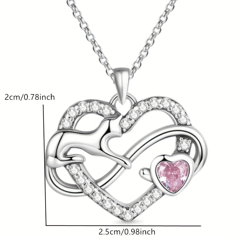 This necklace features a unique cat heart pendant with a pink zircon stone, perfect for a romantic anniversary gift. Ideal for wives, daughters, and friends.