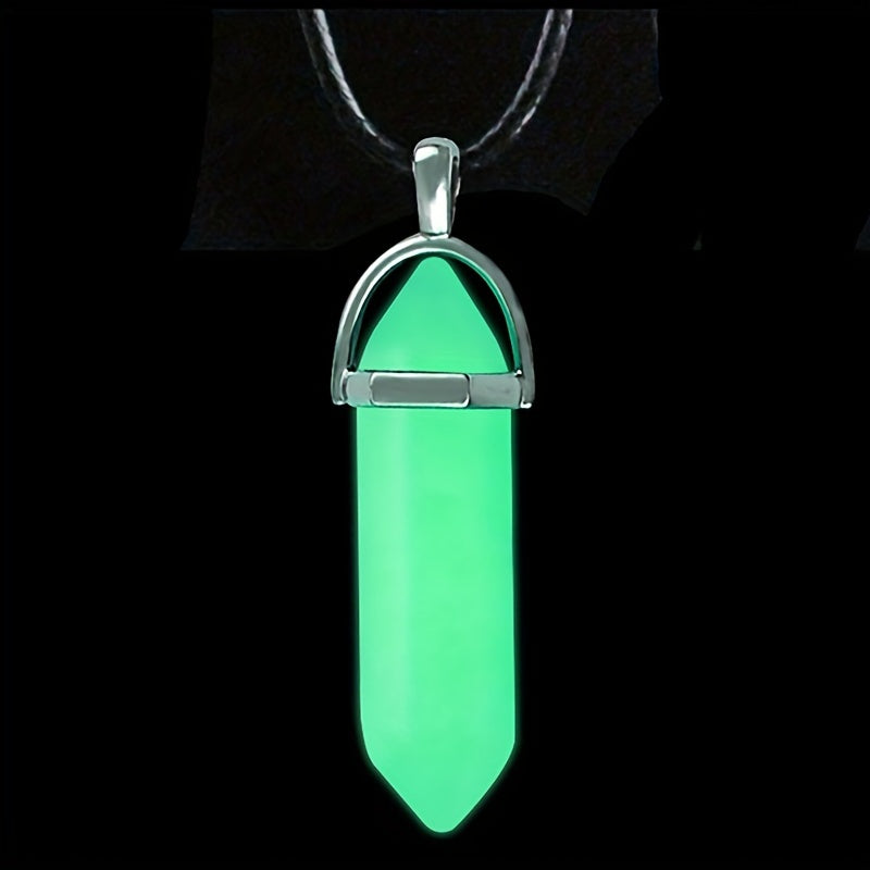 This hip hop street style pendant necklace features a luminous hexagonal stone design that glows in the dark. The perfect accessory for adding a touch of retro flair to your look.