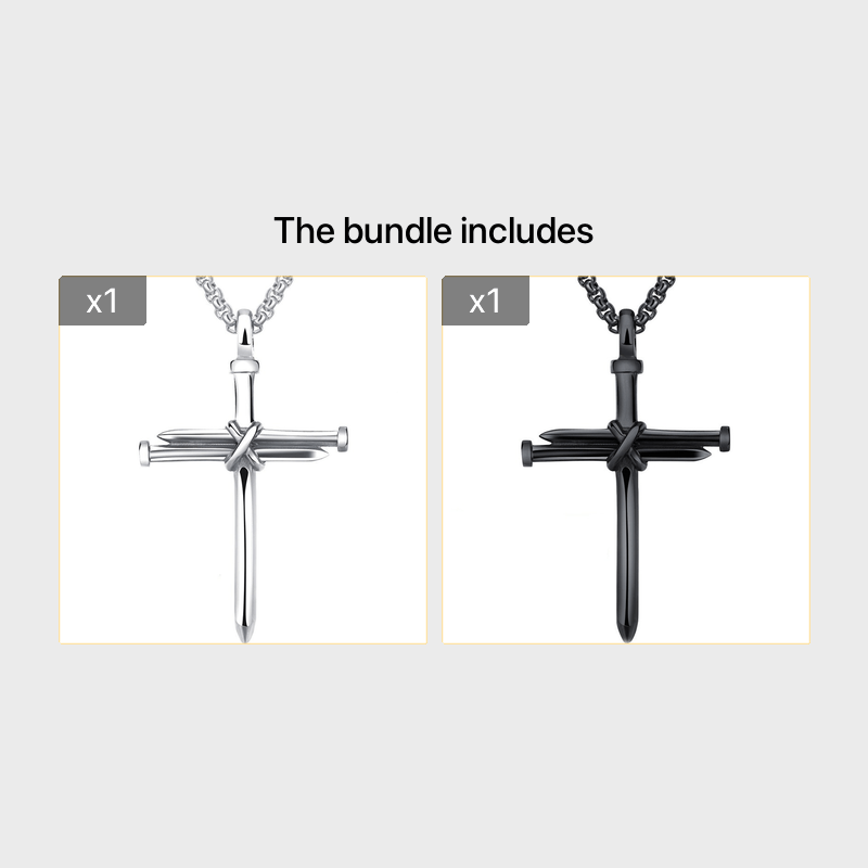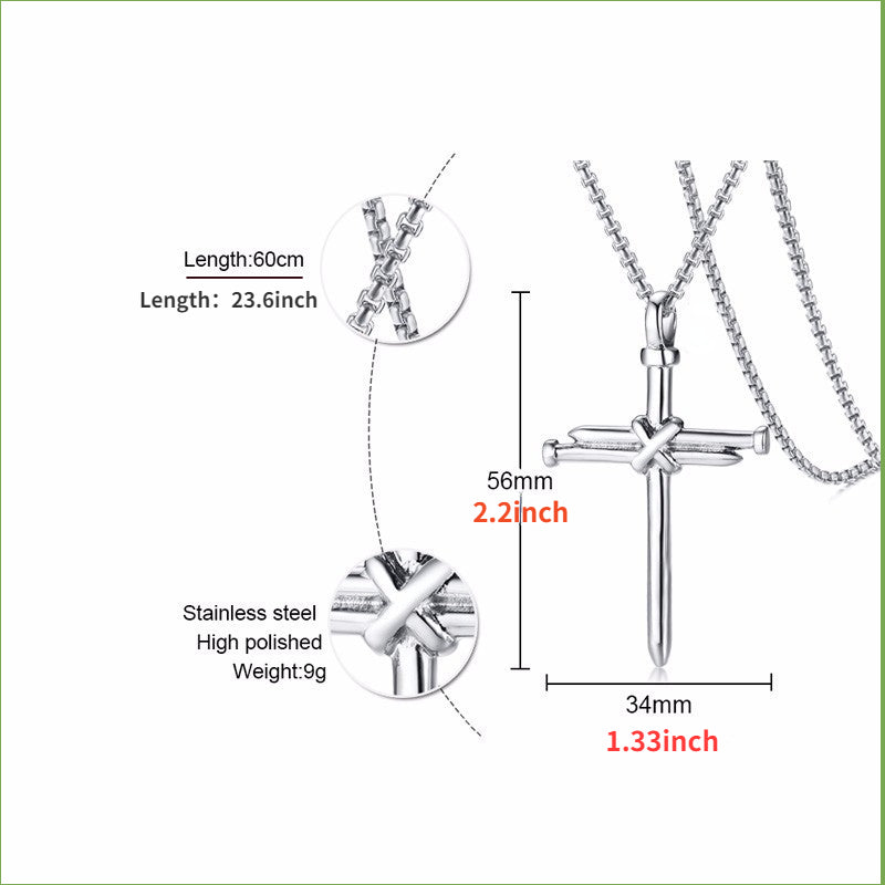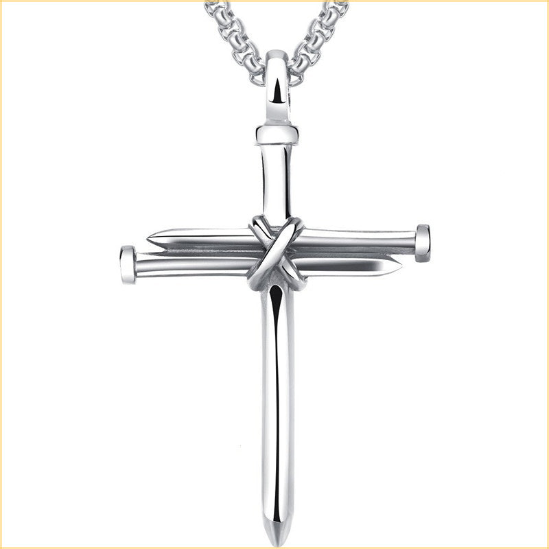 This stylish necklace features a unique design with a nail and rope cross pendant, making it a fashionable choice for men. Crafted from stainless steel, it offers durability and a sleek look.