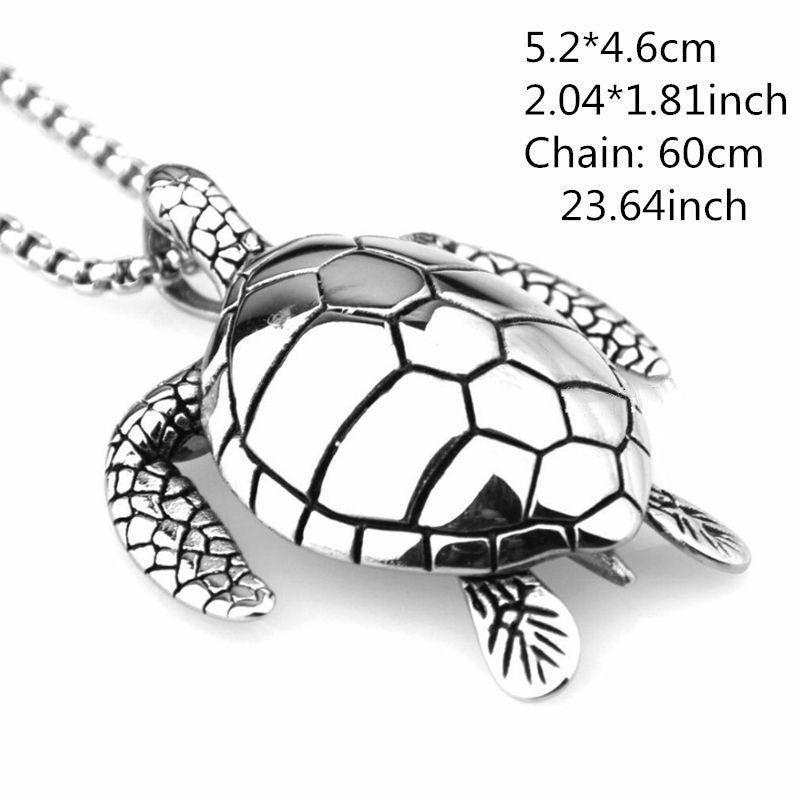 This stylish necklace features a tortoise pendant in high-quality stainless steel, perfect for men who love sea turtles.