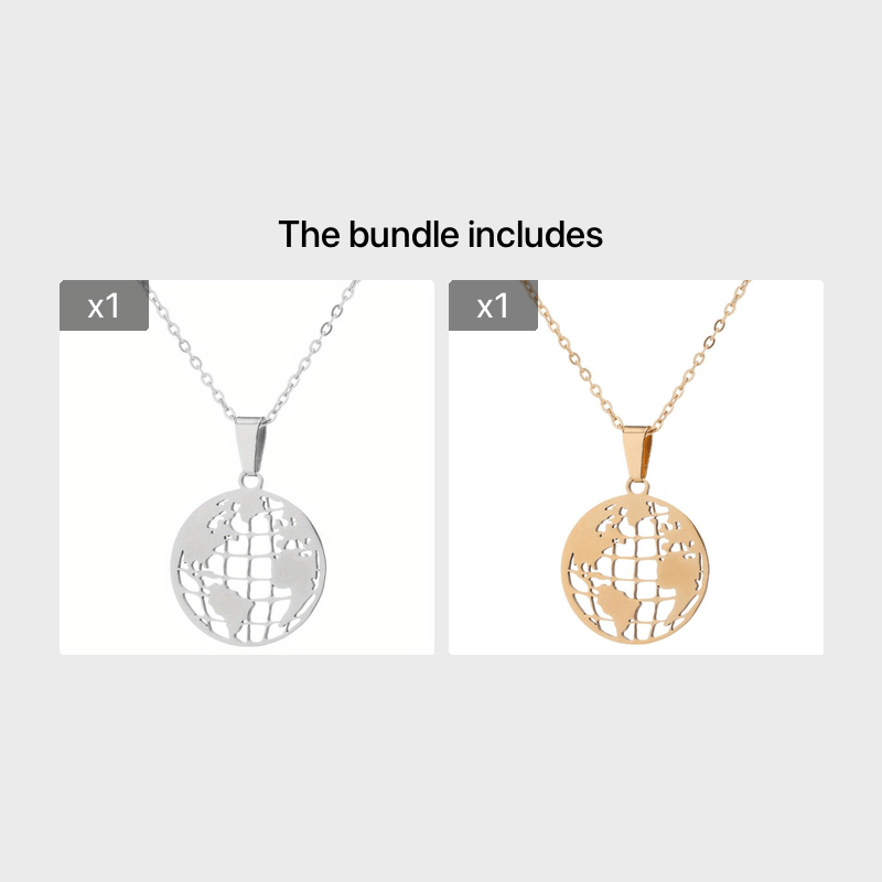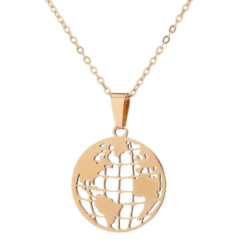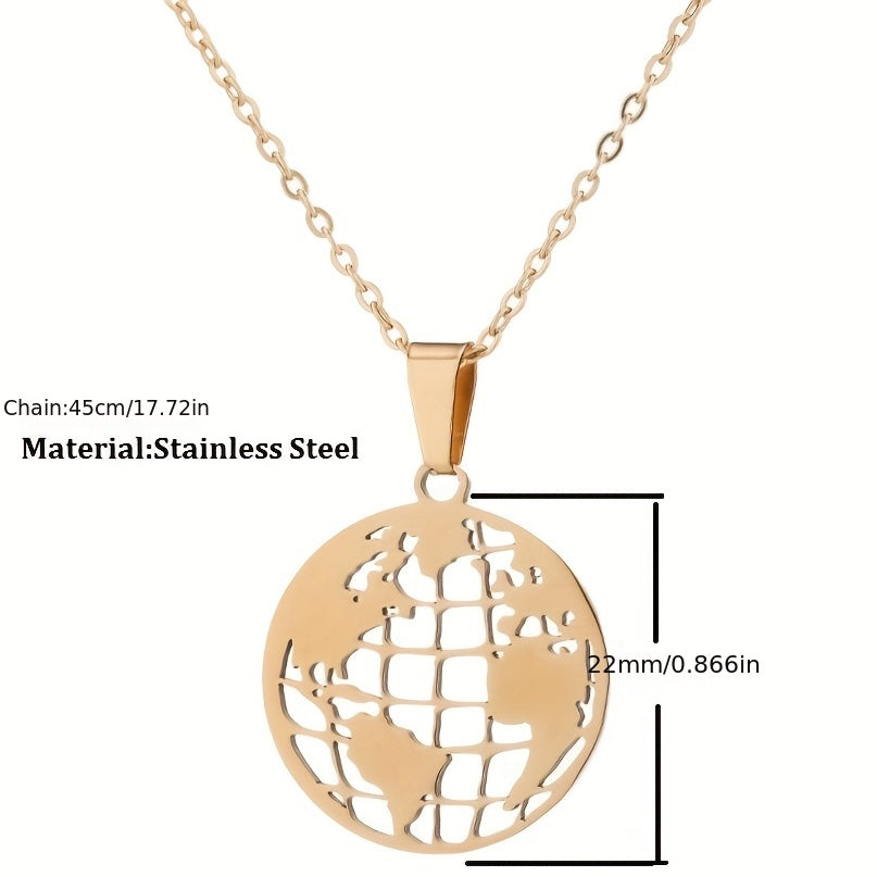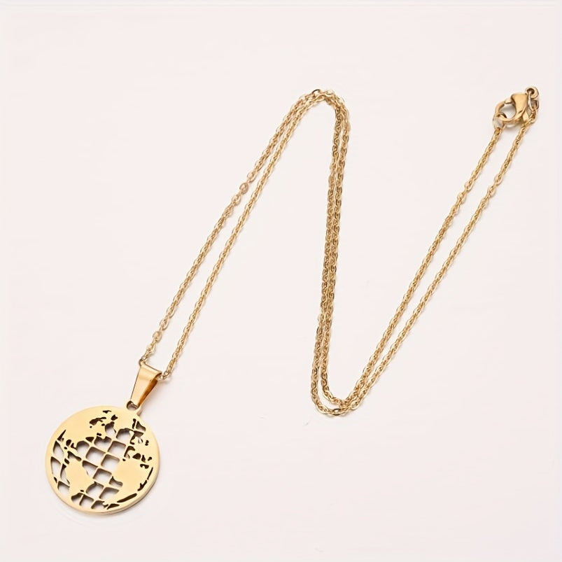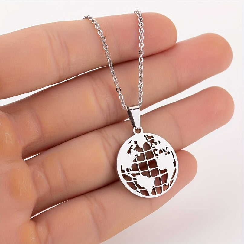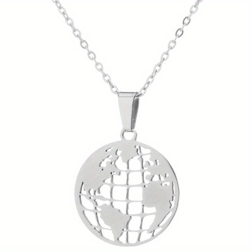 Unique and creative stainless steel necklace featuring a world map design, perfect for those with a niche and adventurous style.