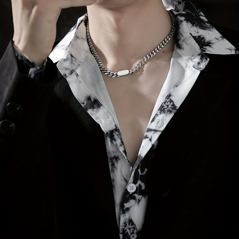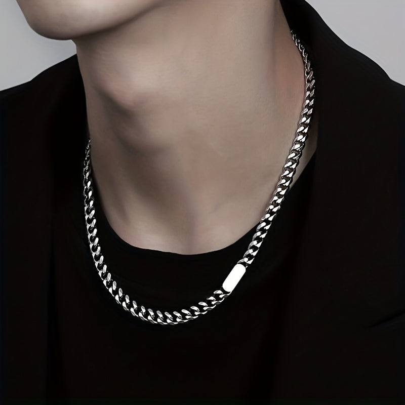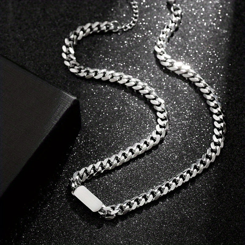 This men's necklace features a stylish titanium steel Cuban chain design.