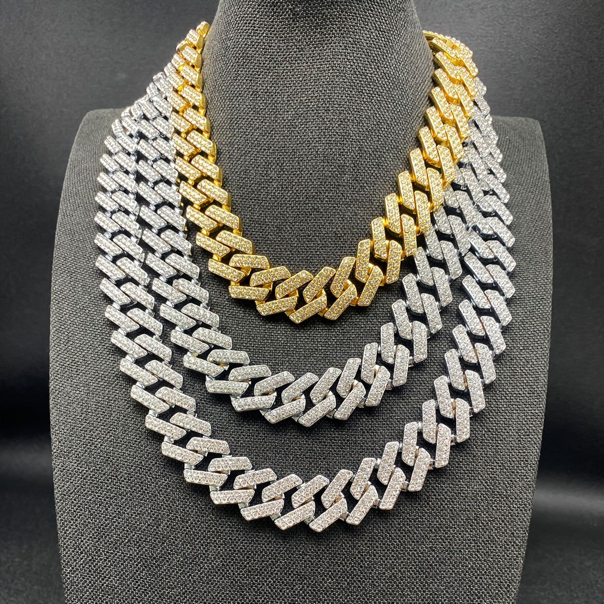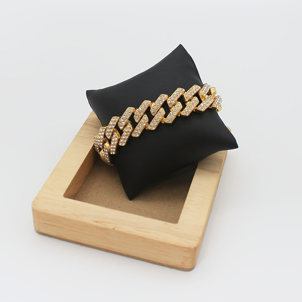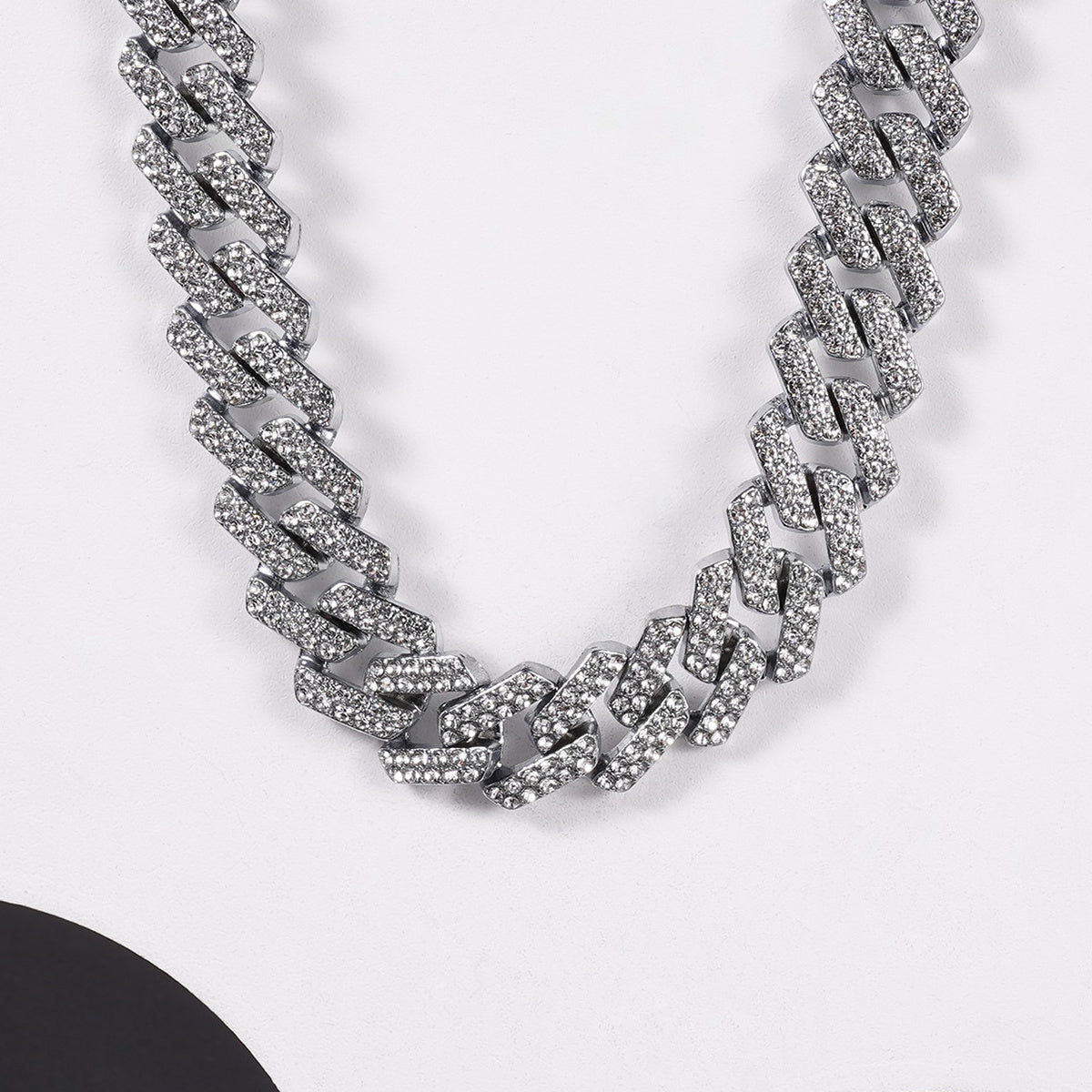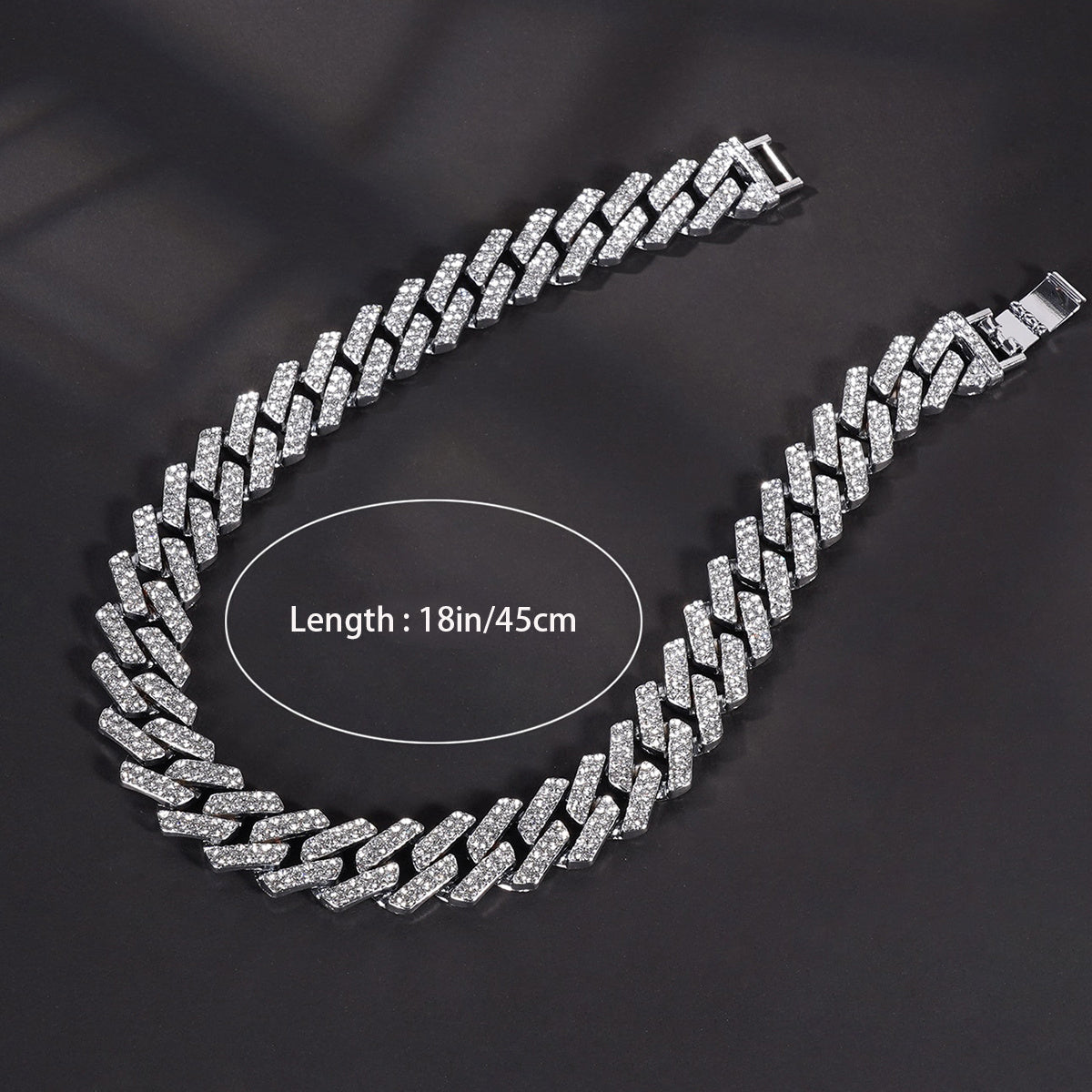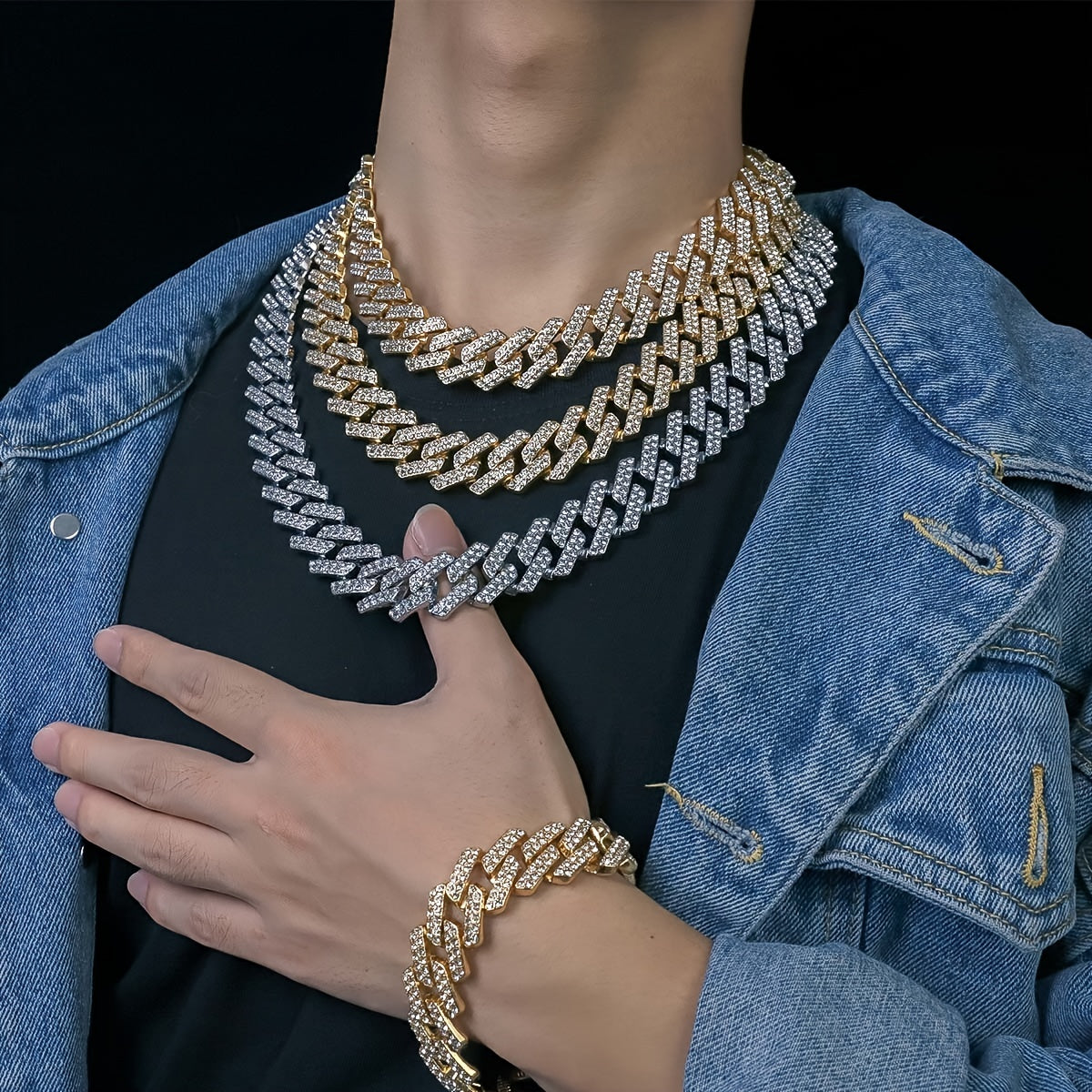 Stay trendy with this hip hop Cuban link chain necklace featuring alloy construction and rhineston accents.