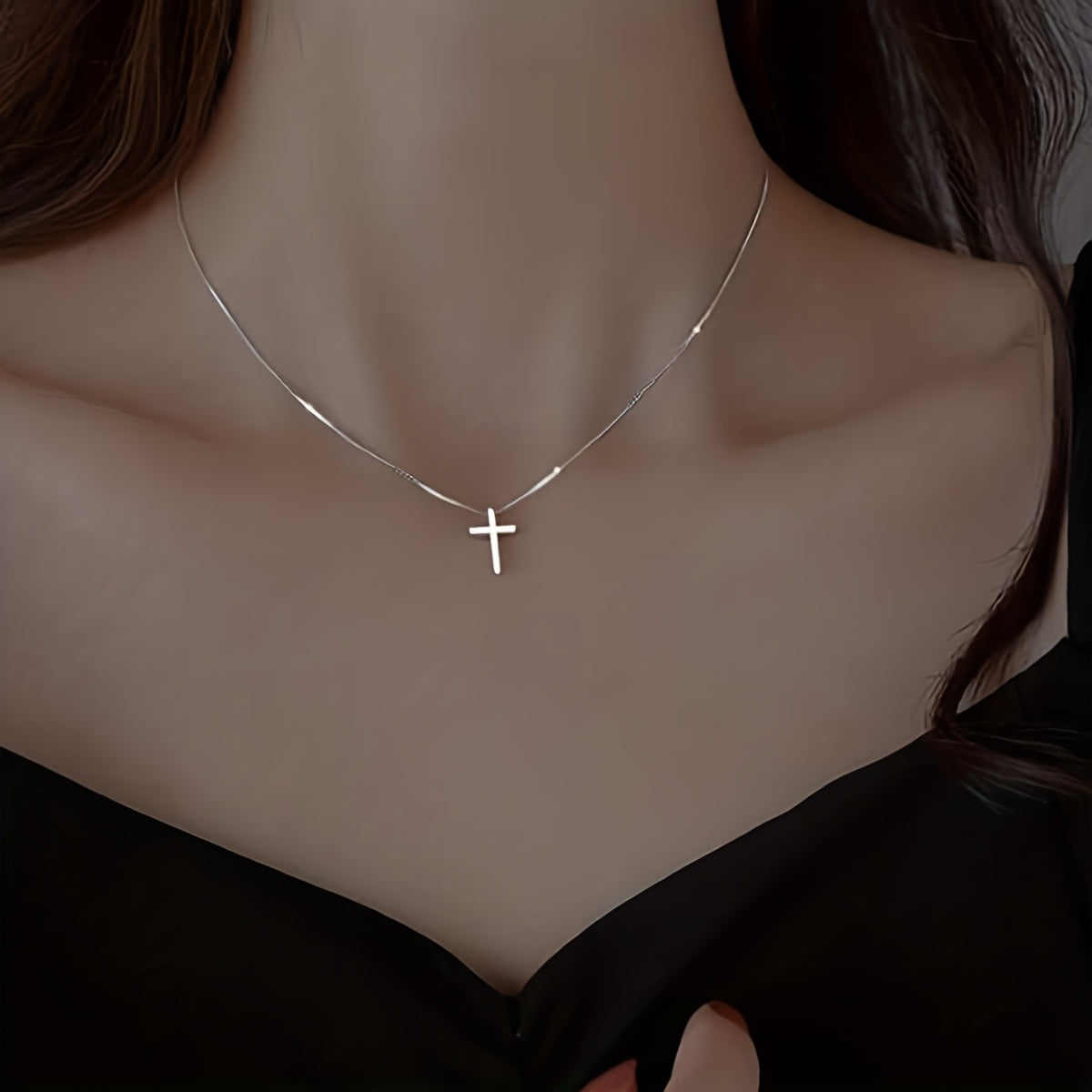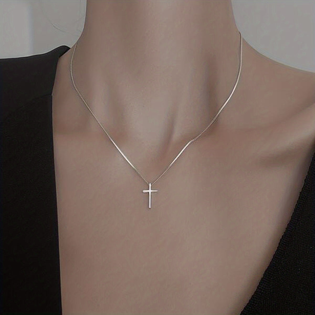 This dainty cross pendant necklace is perfect for those who appreciate minimalist style. Made of silver, it's a great gift idea for women and girls.