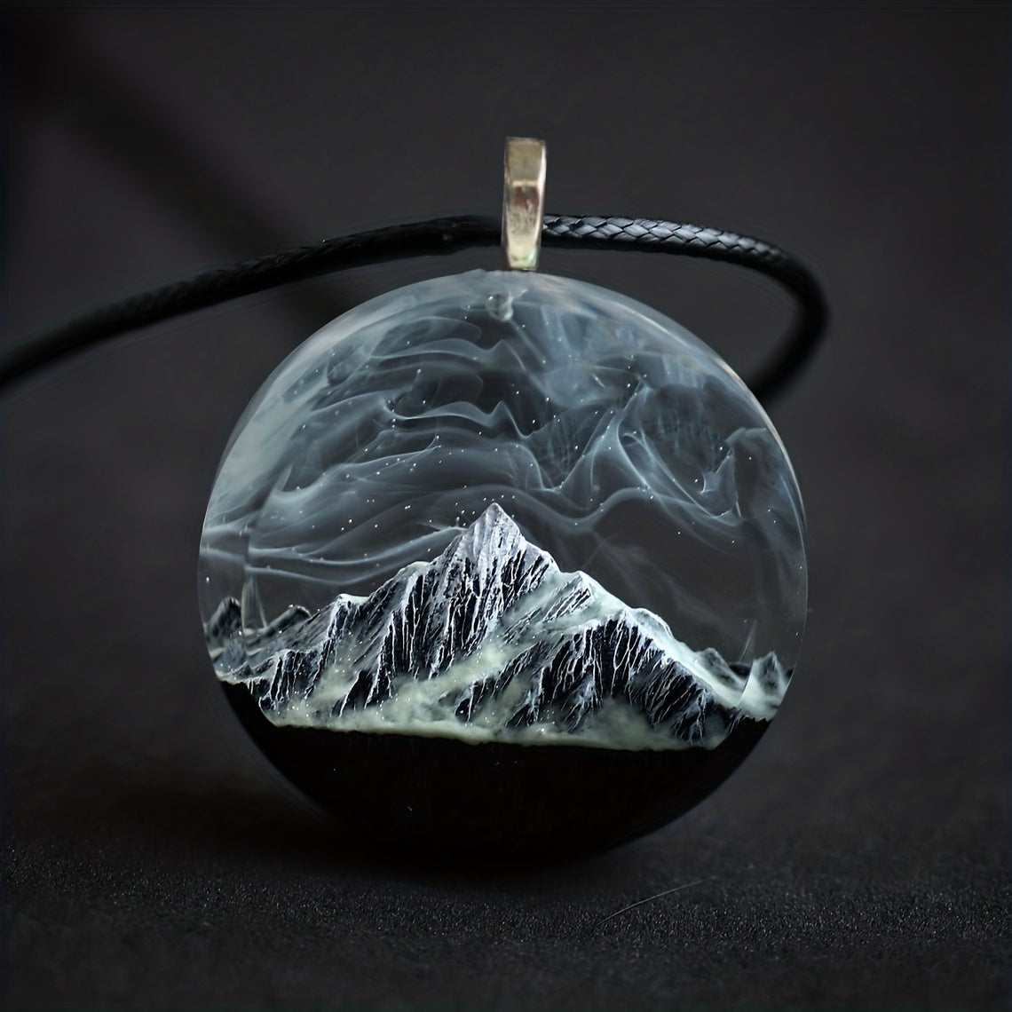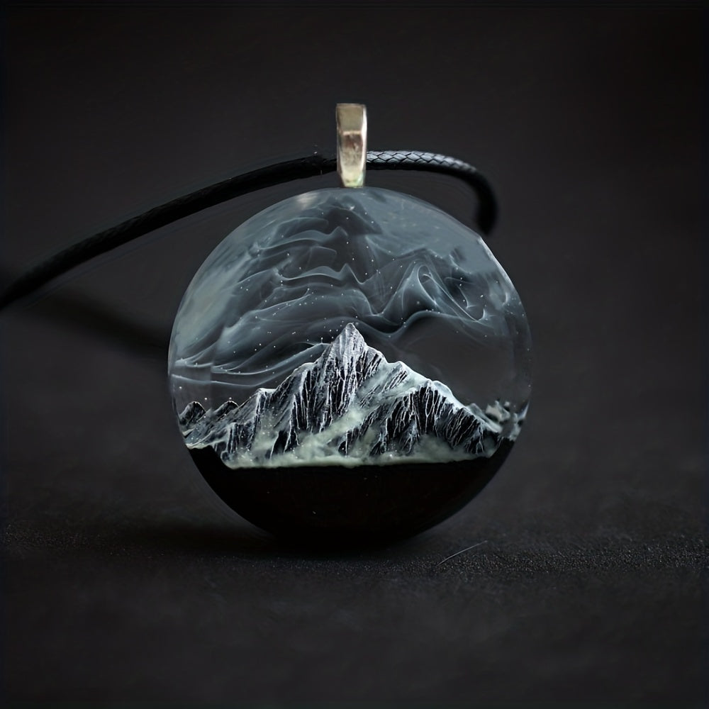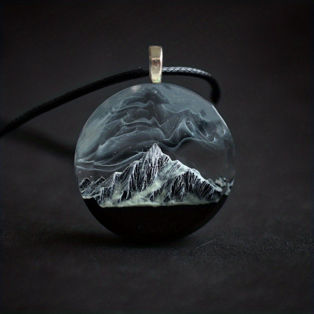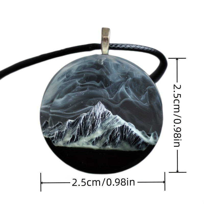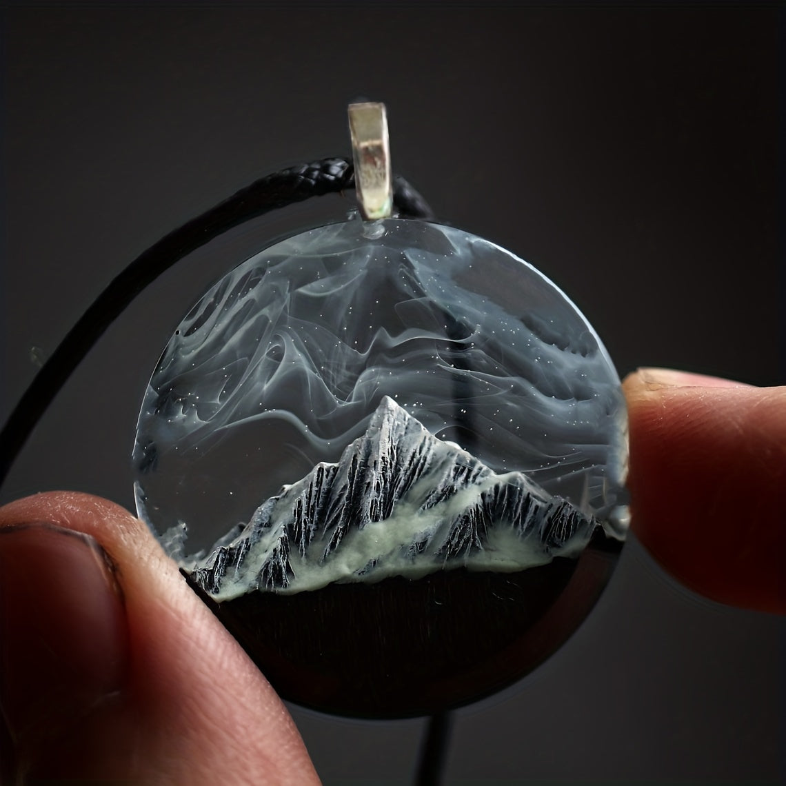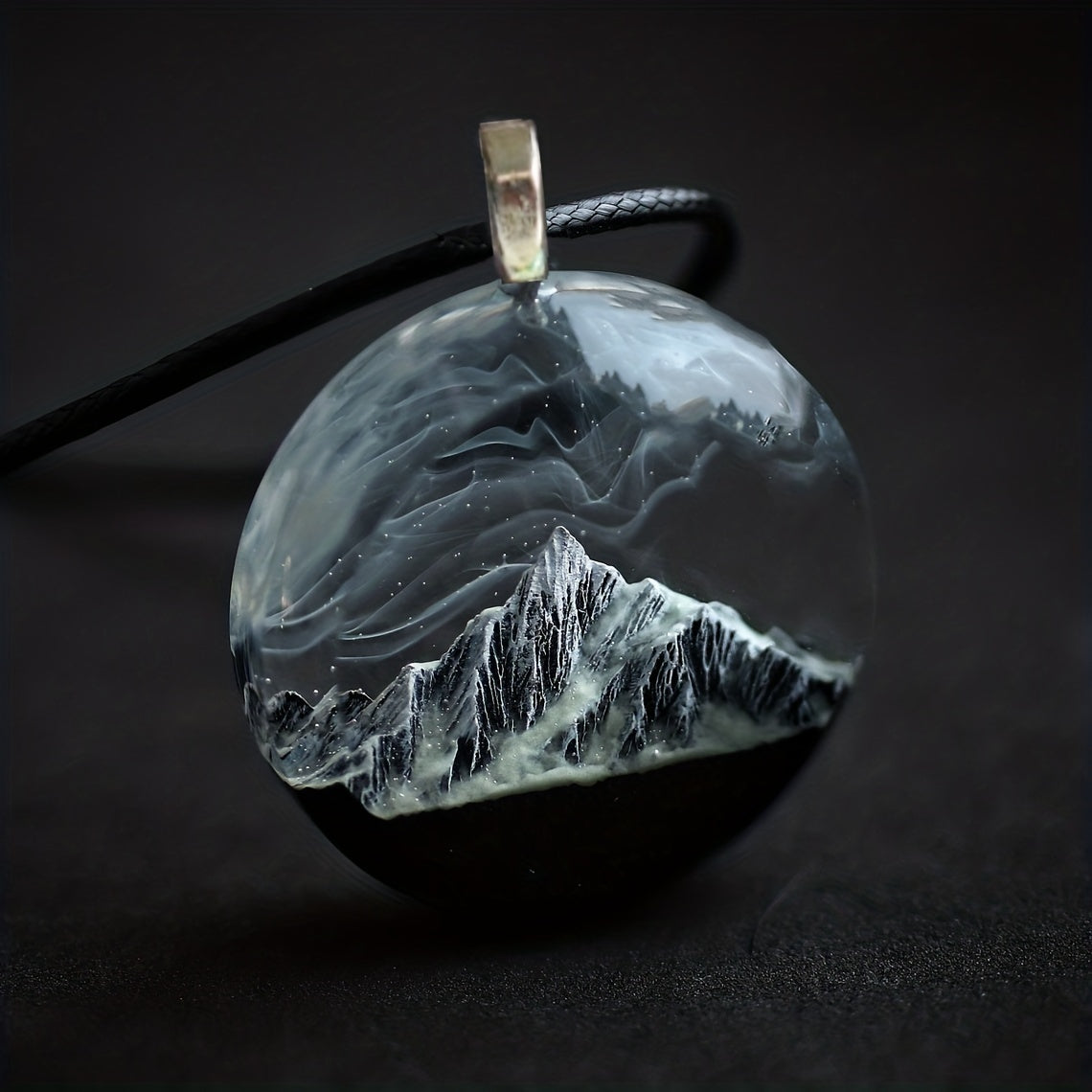 This elegant pendant necklace features a nature scenery design with a mountain river and starry sky motif. It is a beautiful accessory for nature lovers.