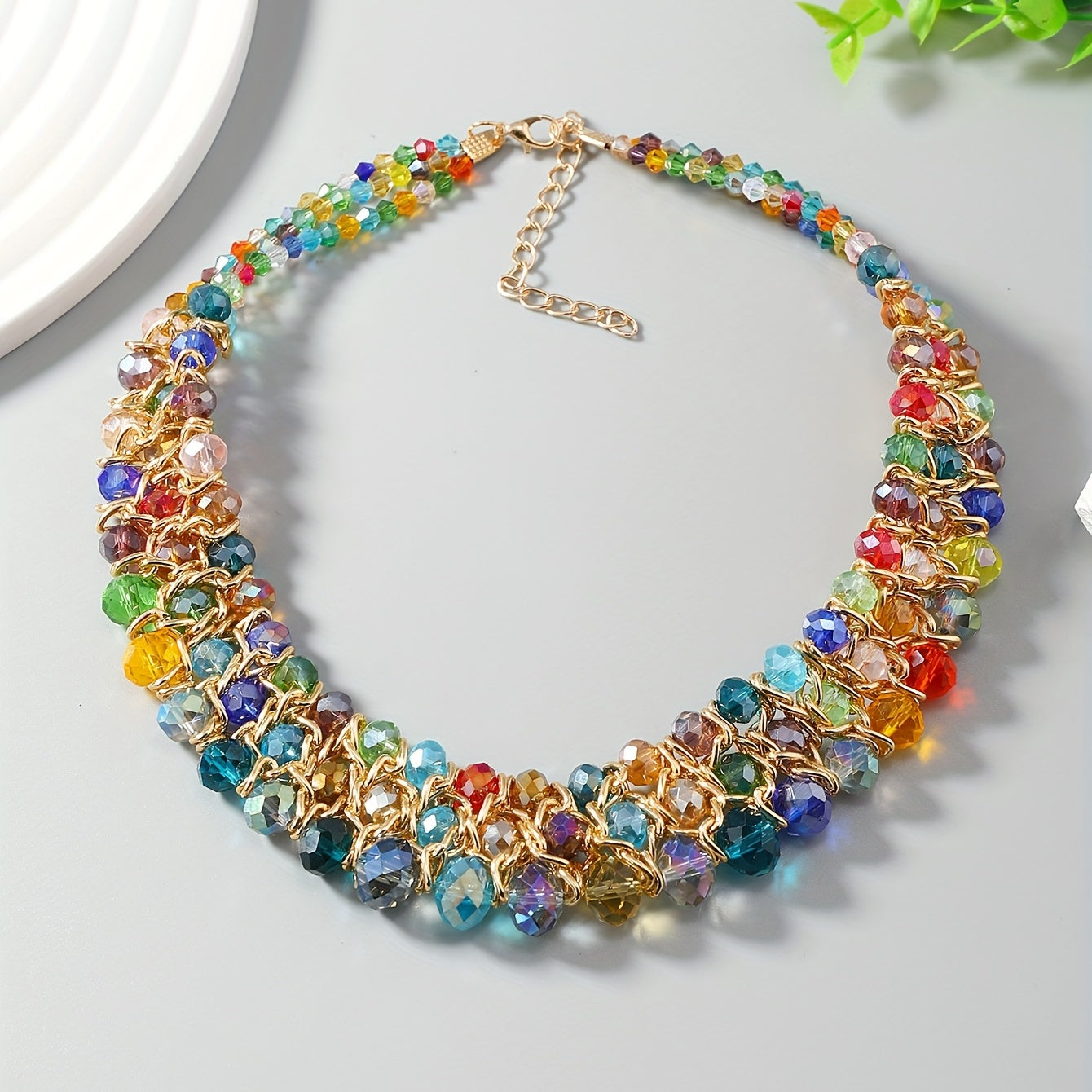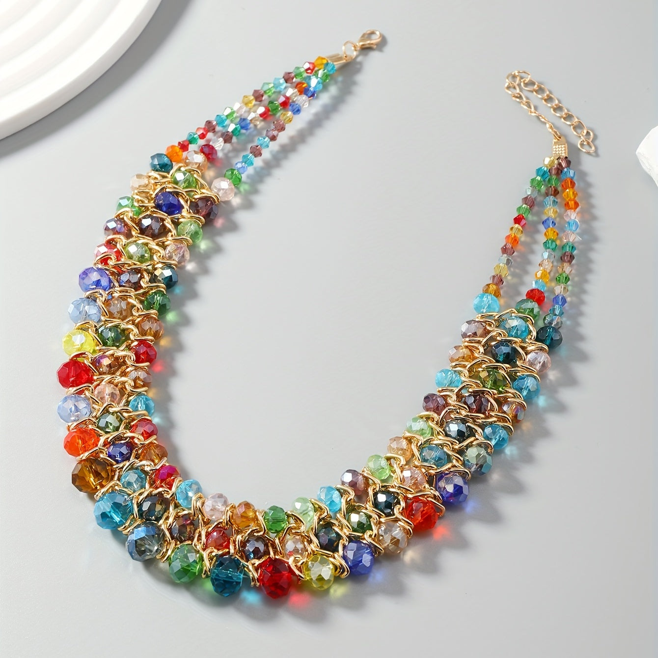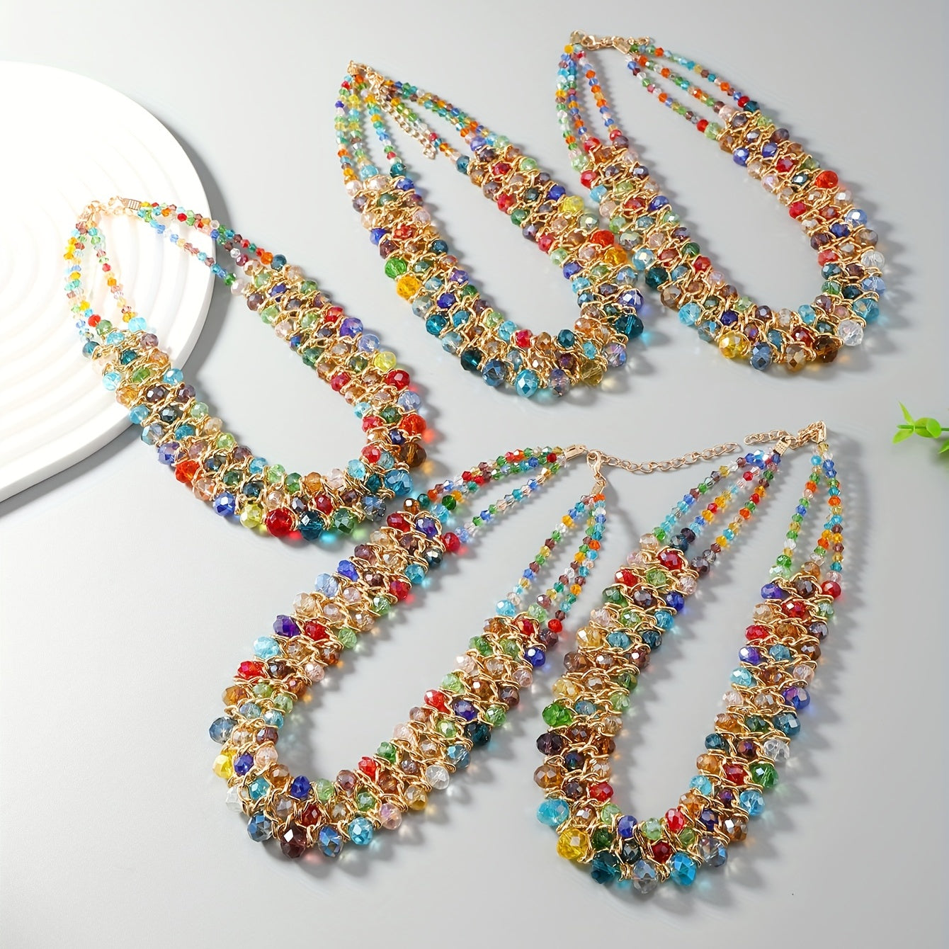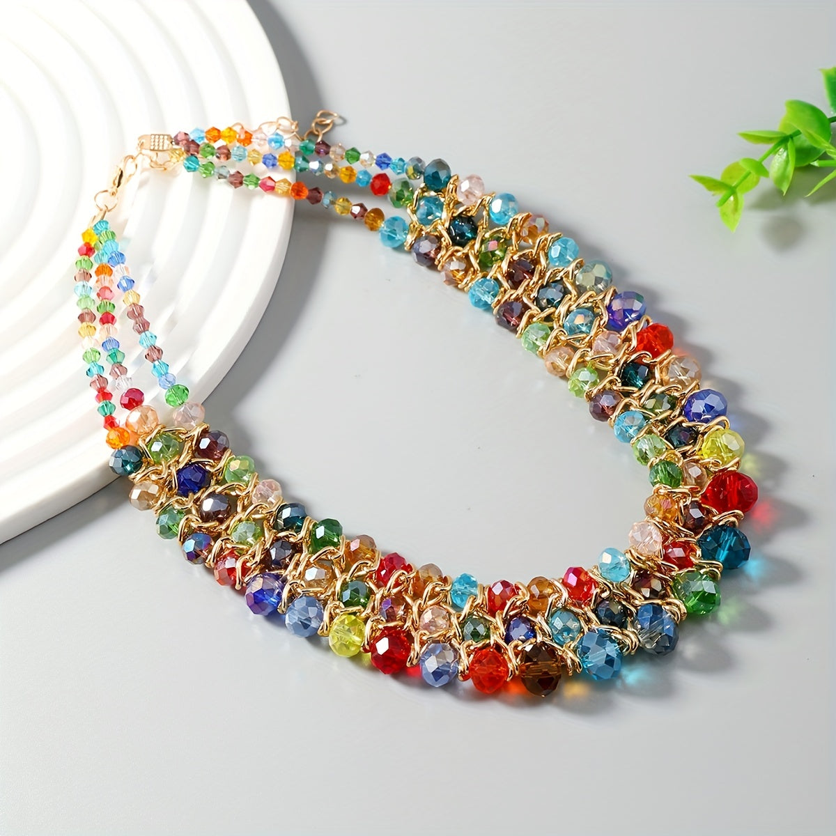 Elevate your summer style with this stunning multicolor triple row crystal beaded necklace. Perfect for beach vacations or travel, this necklace adds a touch of sparkle to any outfit.