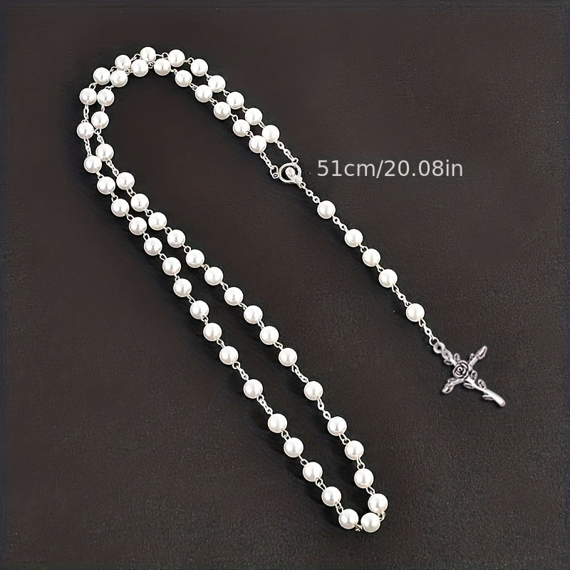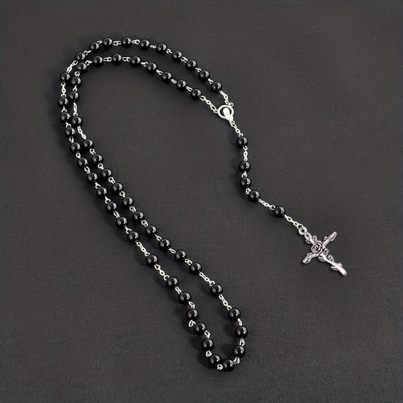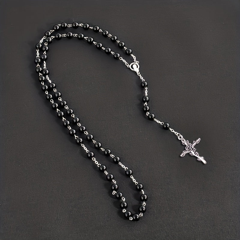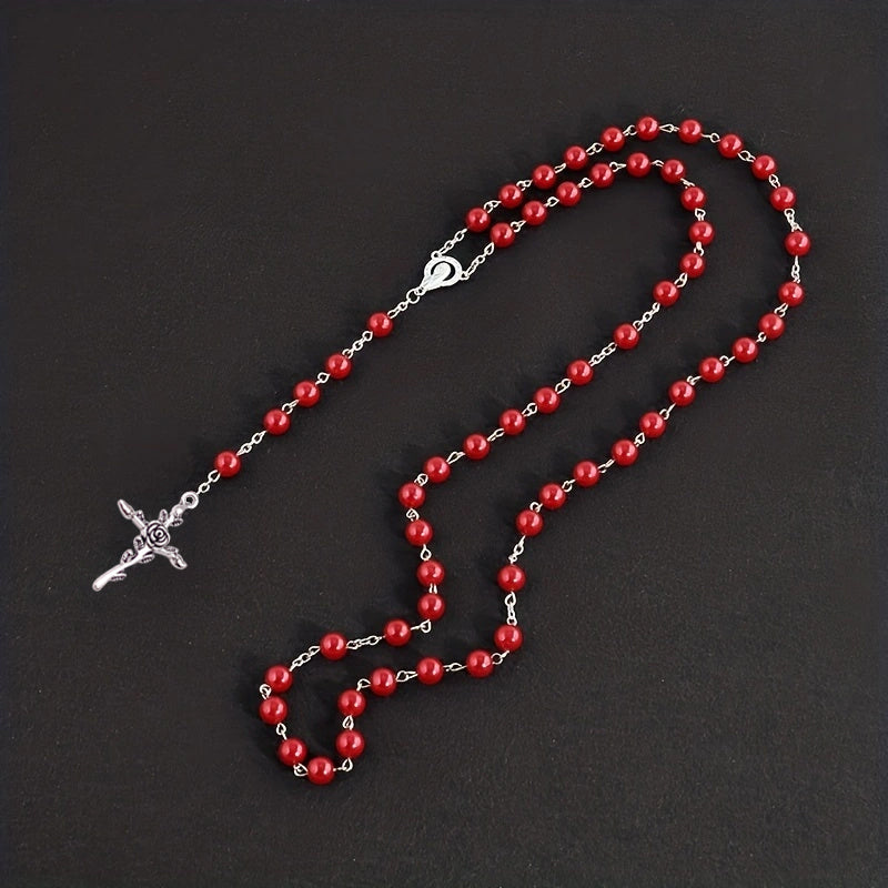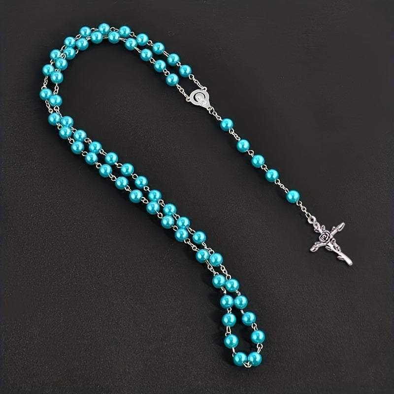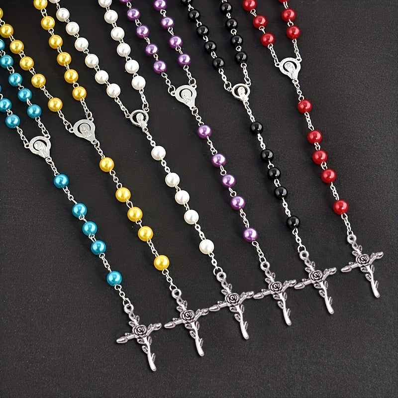 Multicolor Rosary Cross Pendant Necklace Christian Religious Necklace