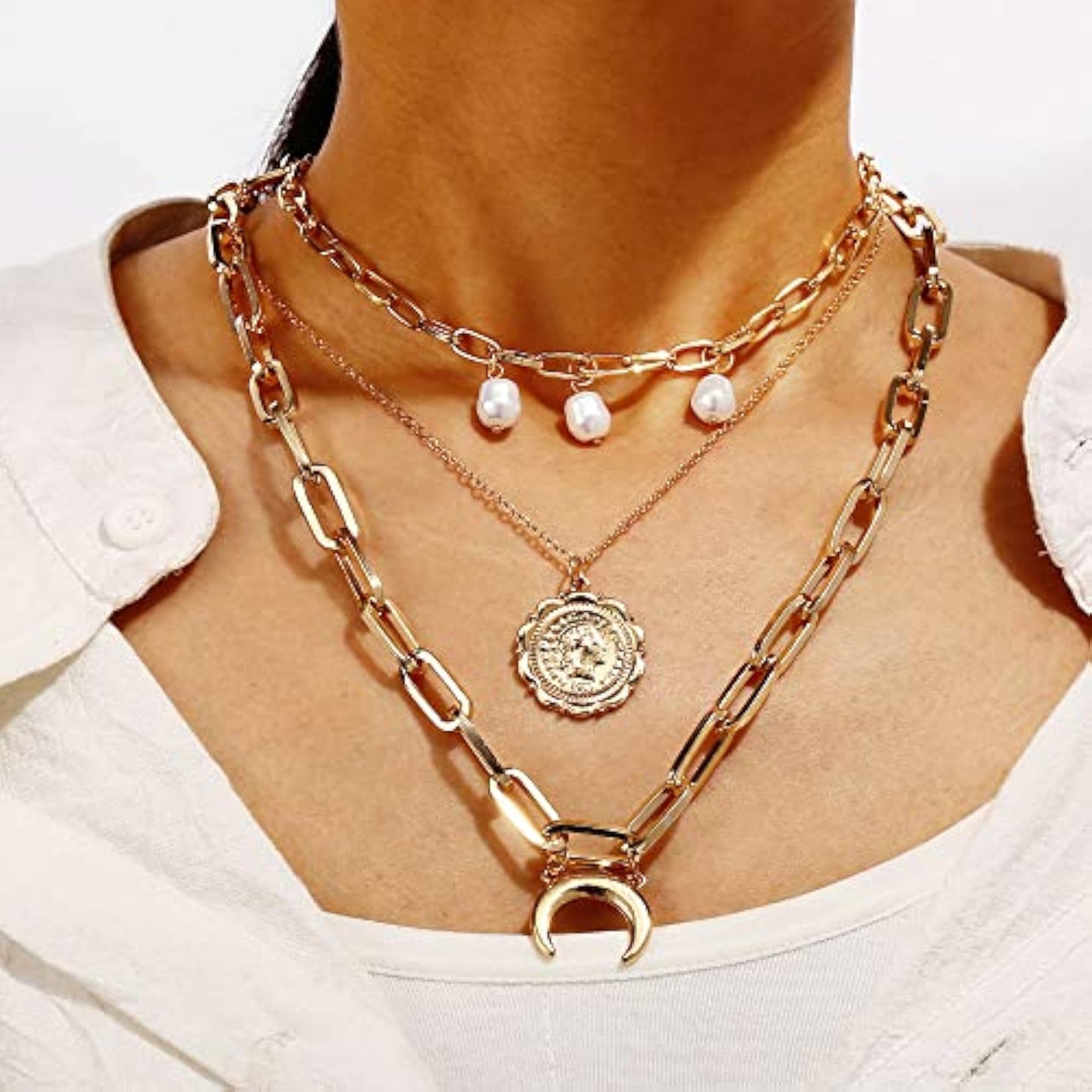 Multilayer Golden Neck Chain Necklace for Women Girls