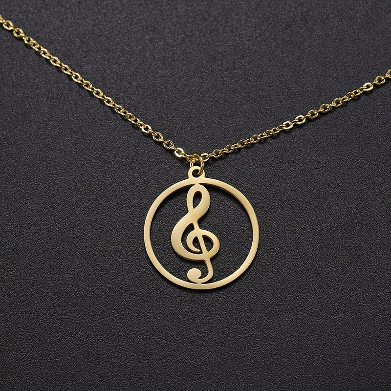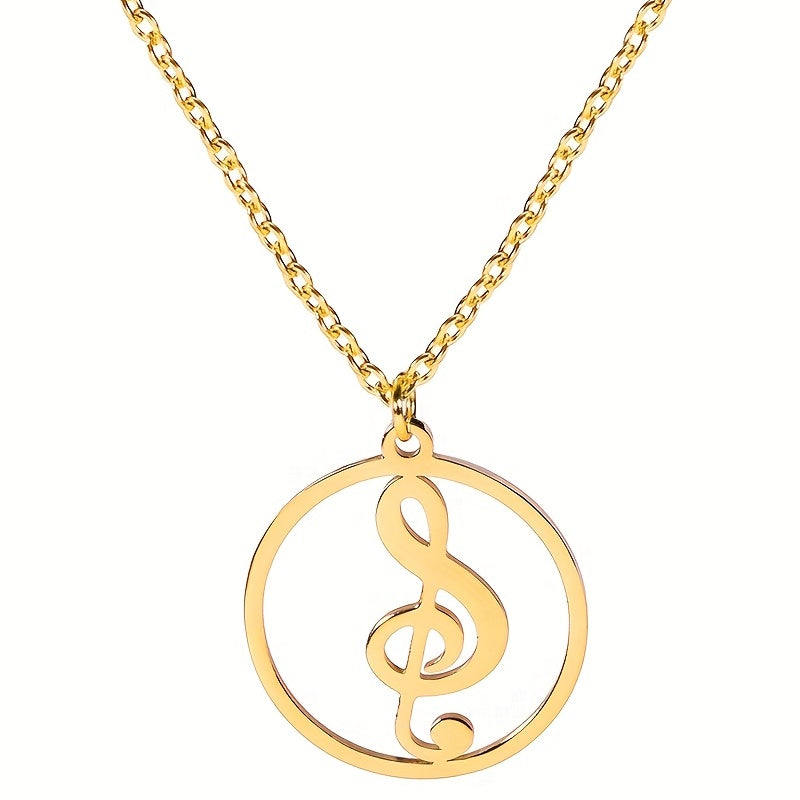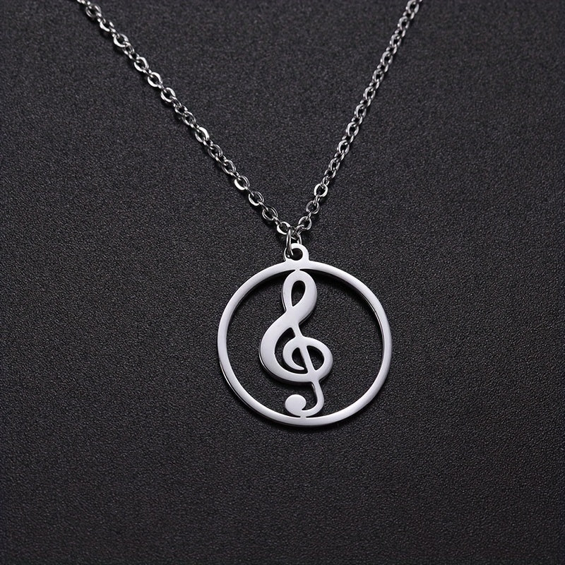 Musical Symbol Pendant Necklace Stainless Steel Silver Plated Choker Jewelry